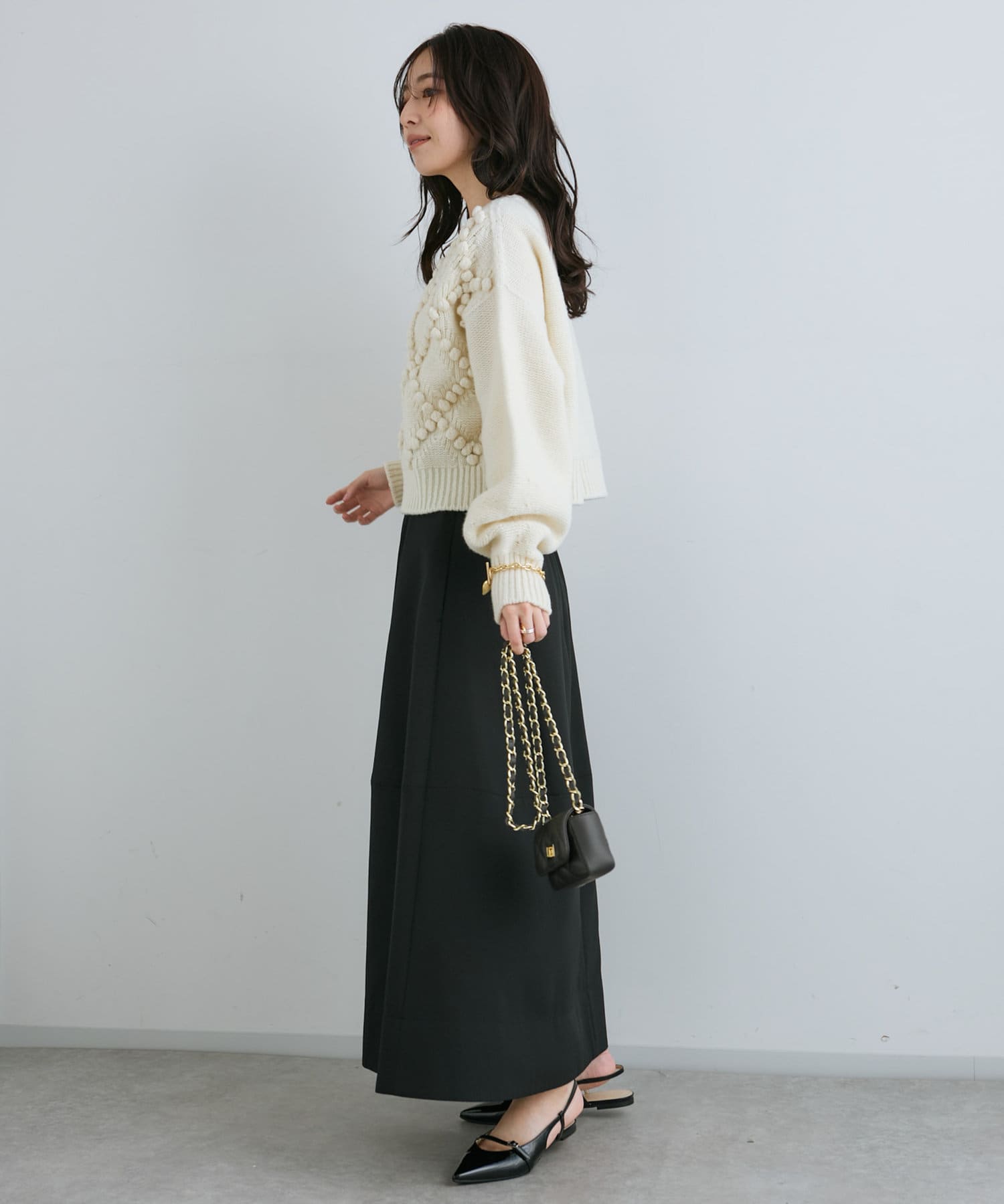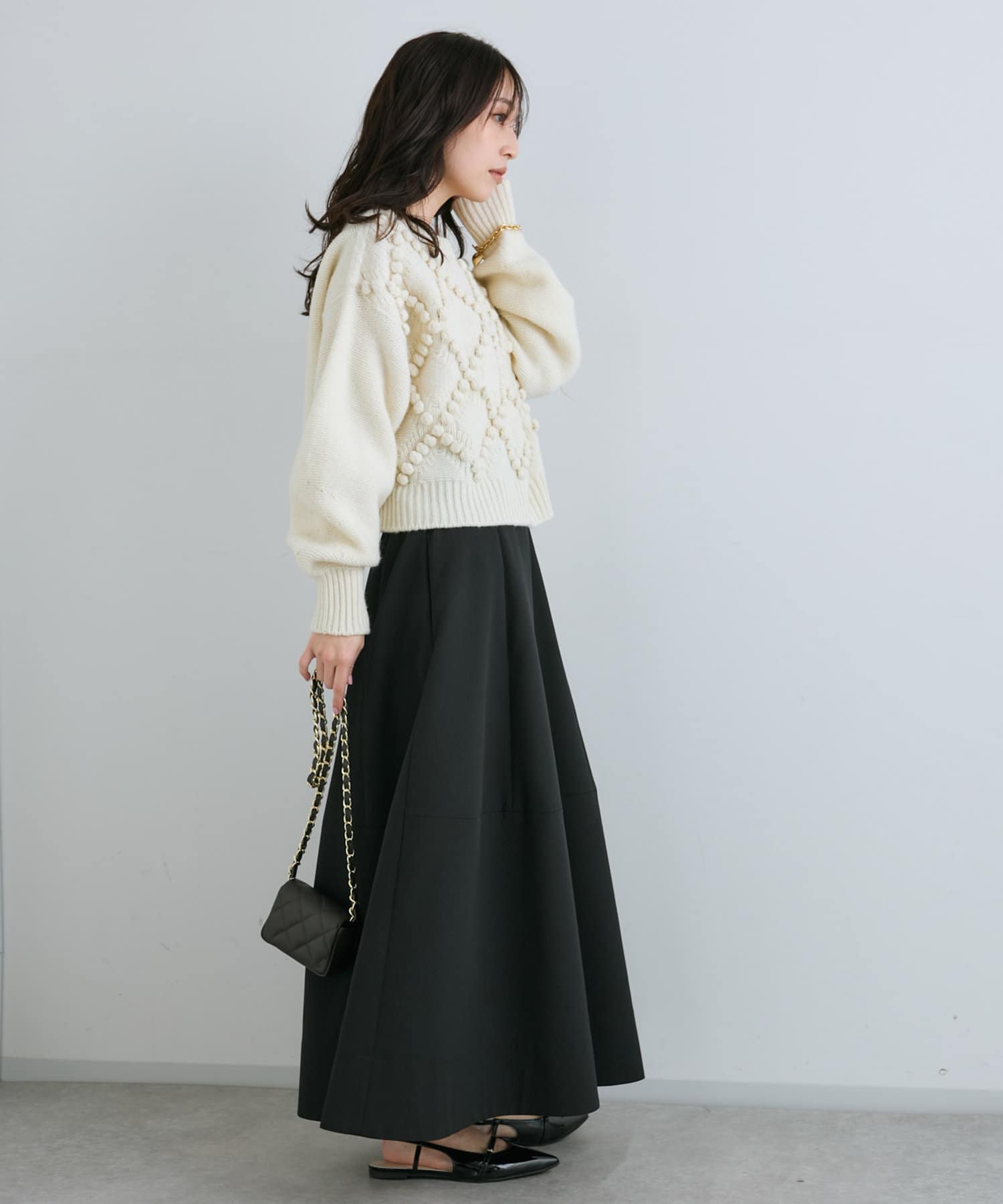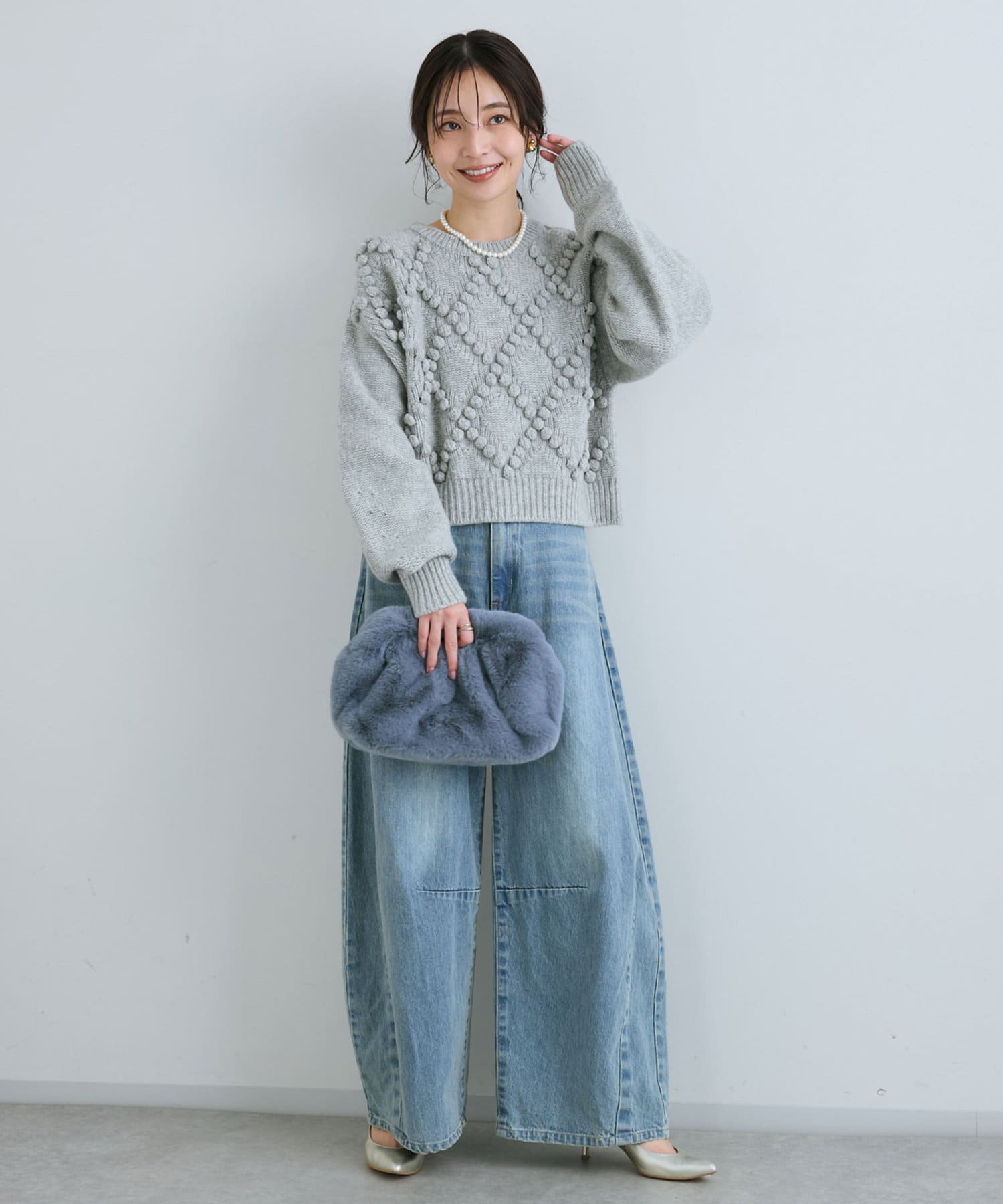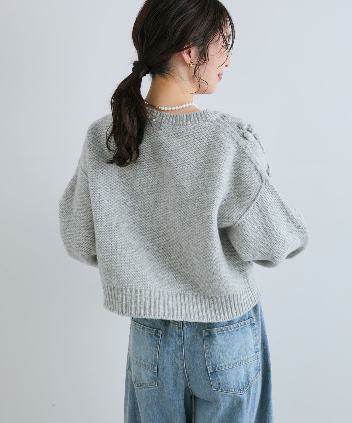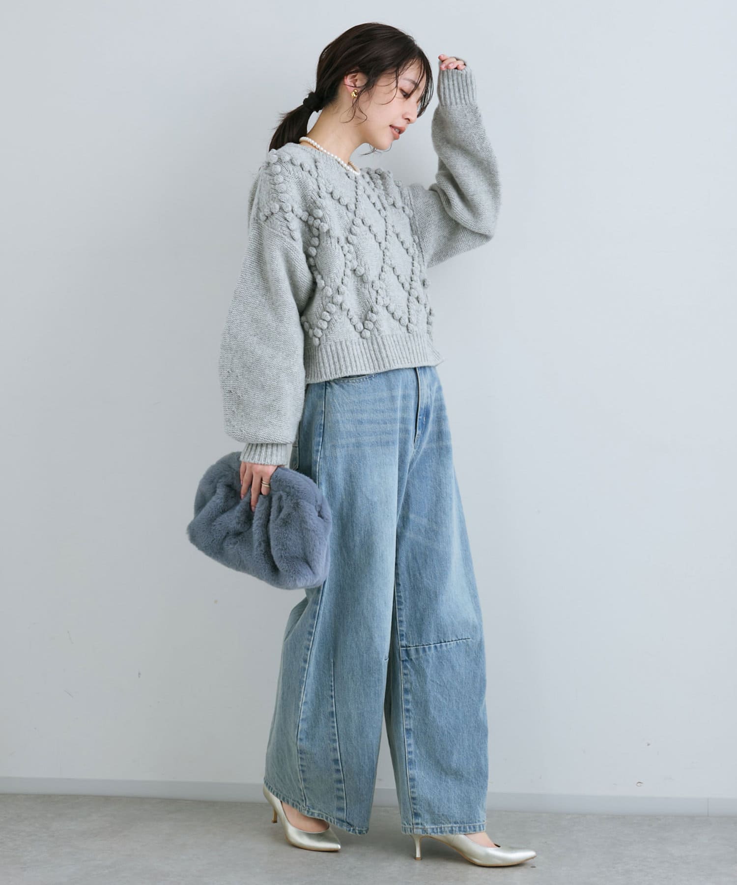 トレンドのクロップド丈に施したダイヤ柄のポップコーンがポイントのニットプルオーバー。