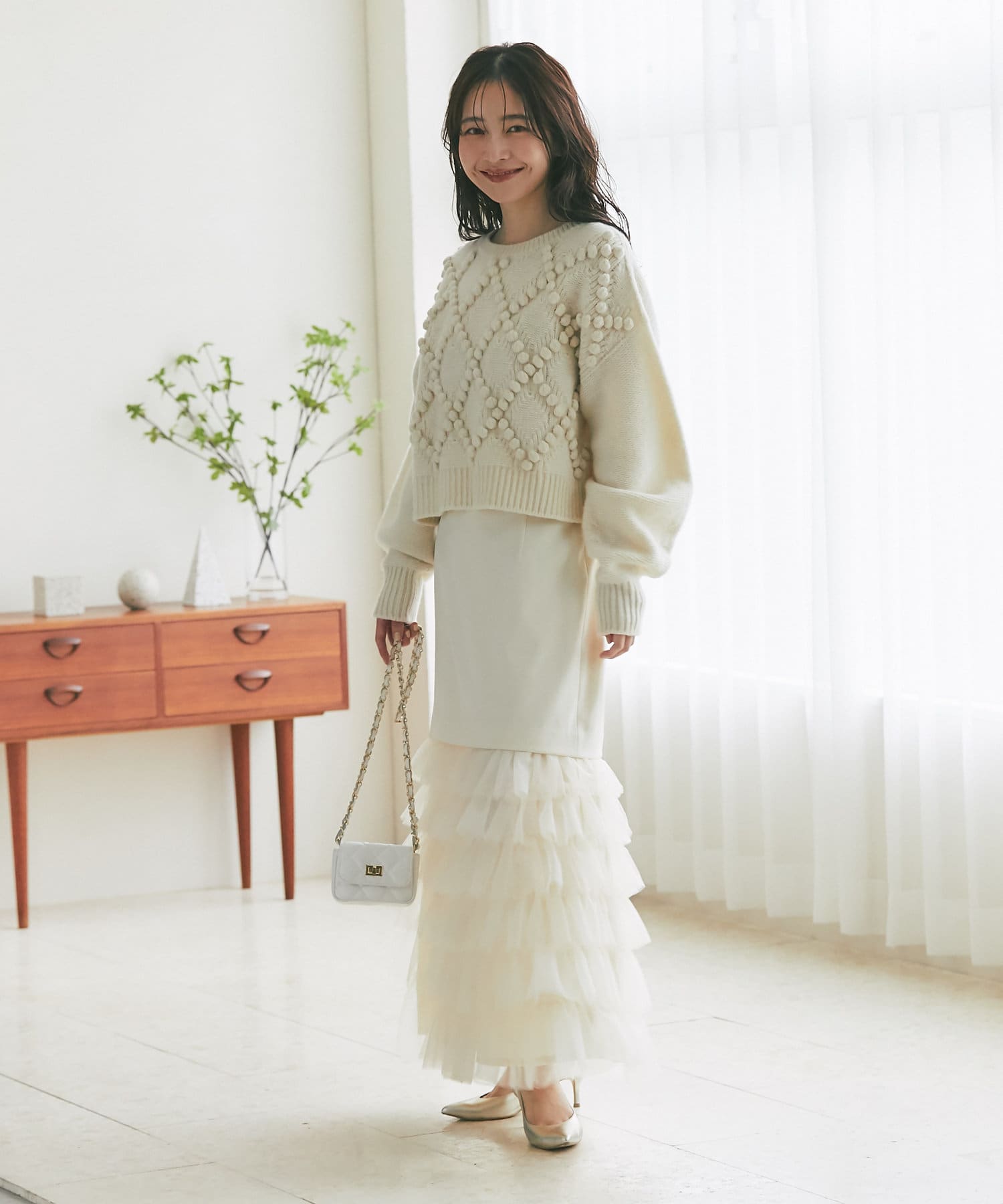 シアーやティアードなどのボリュームスカートでフェミニンなコーデにも、