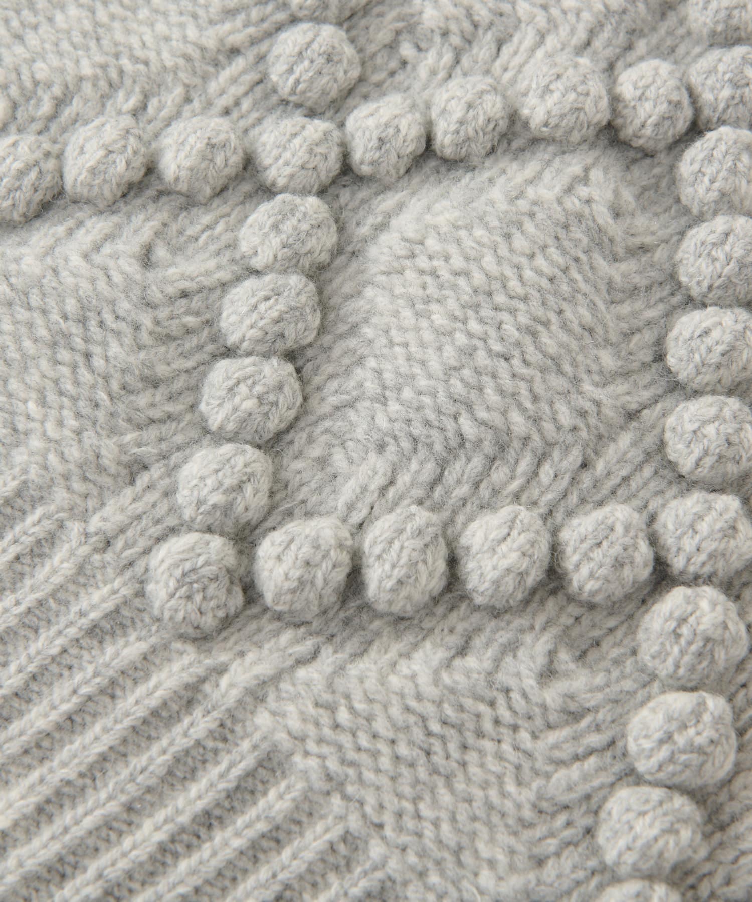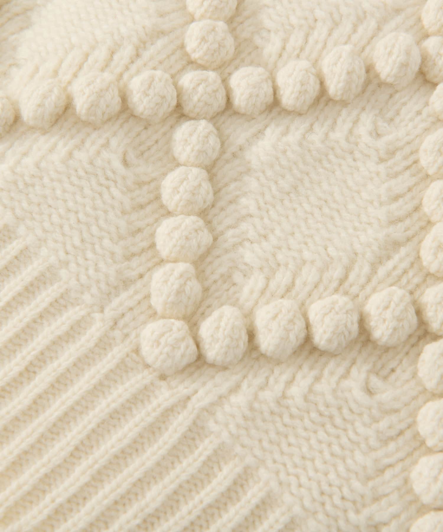 なんともなく見えるポップコーンの部分も高い技術力の編み続きで仕上げています。