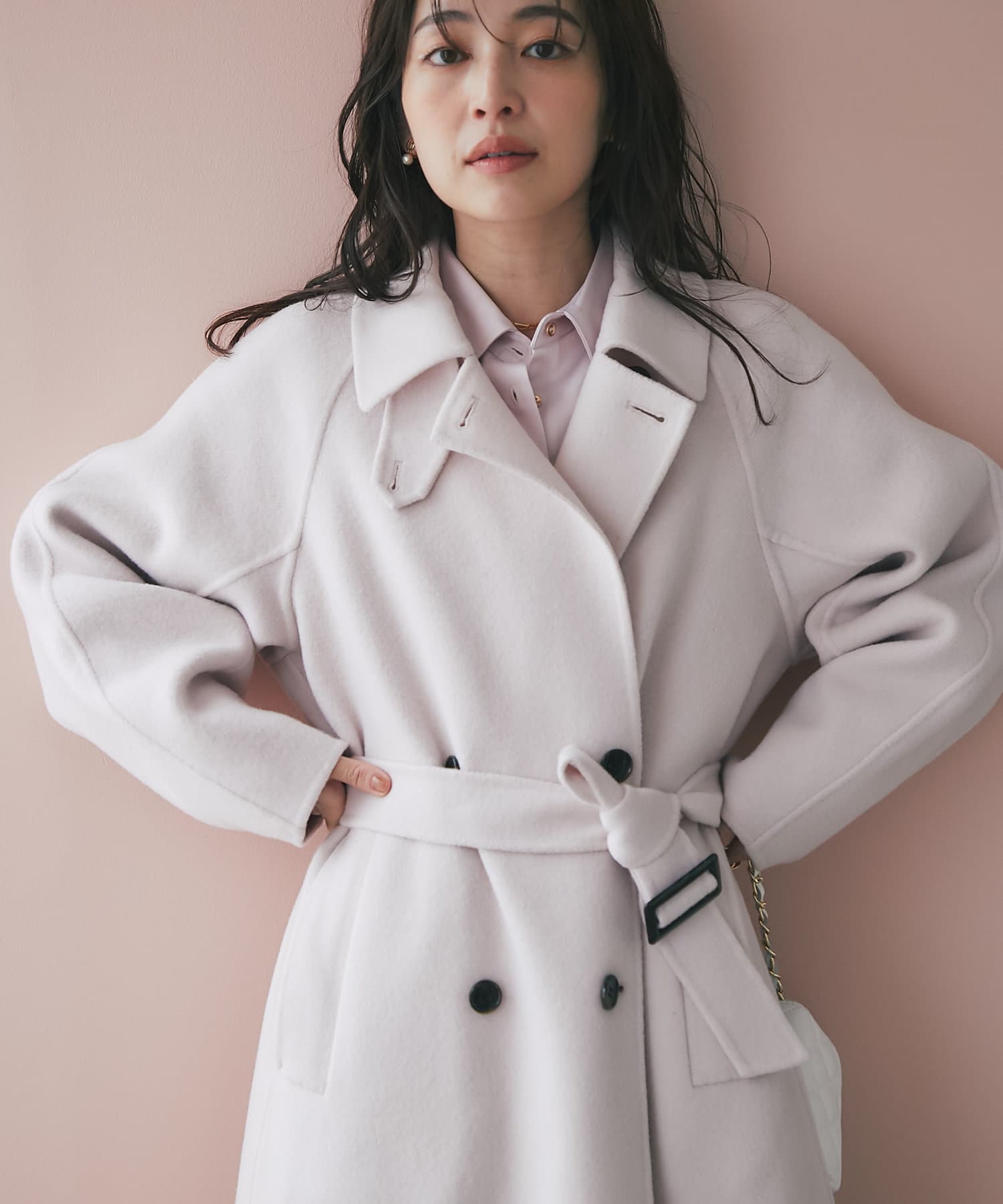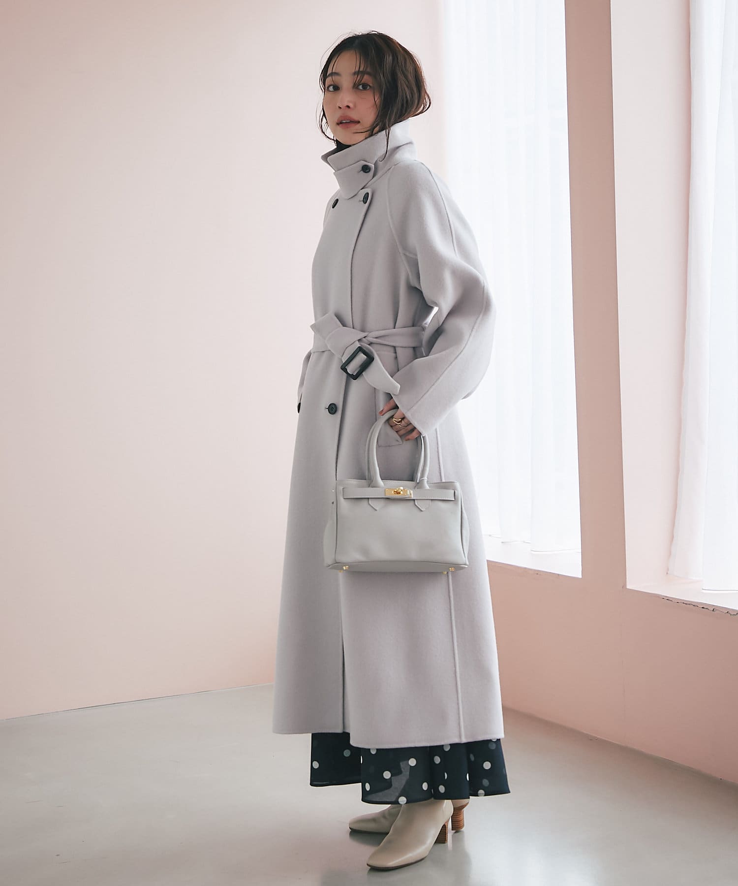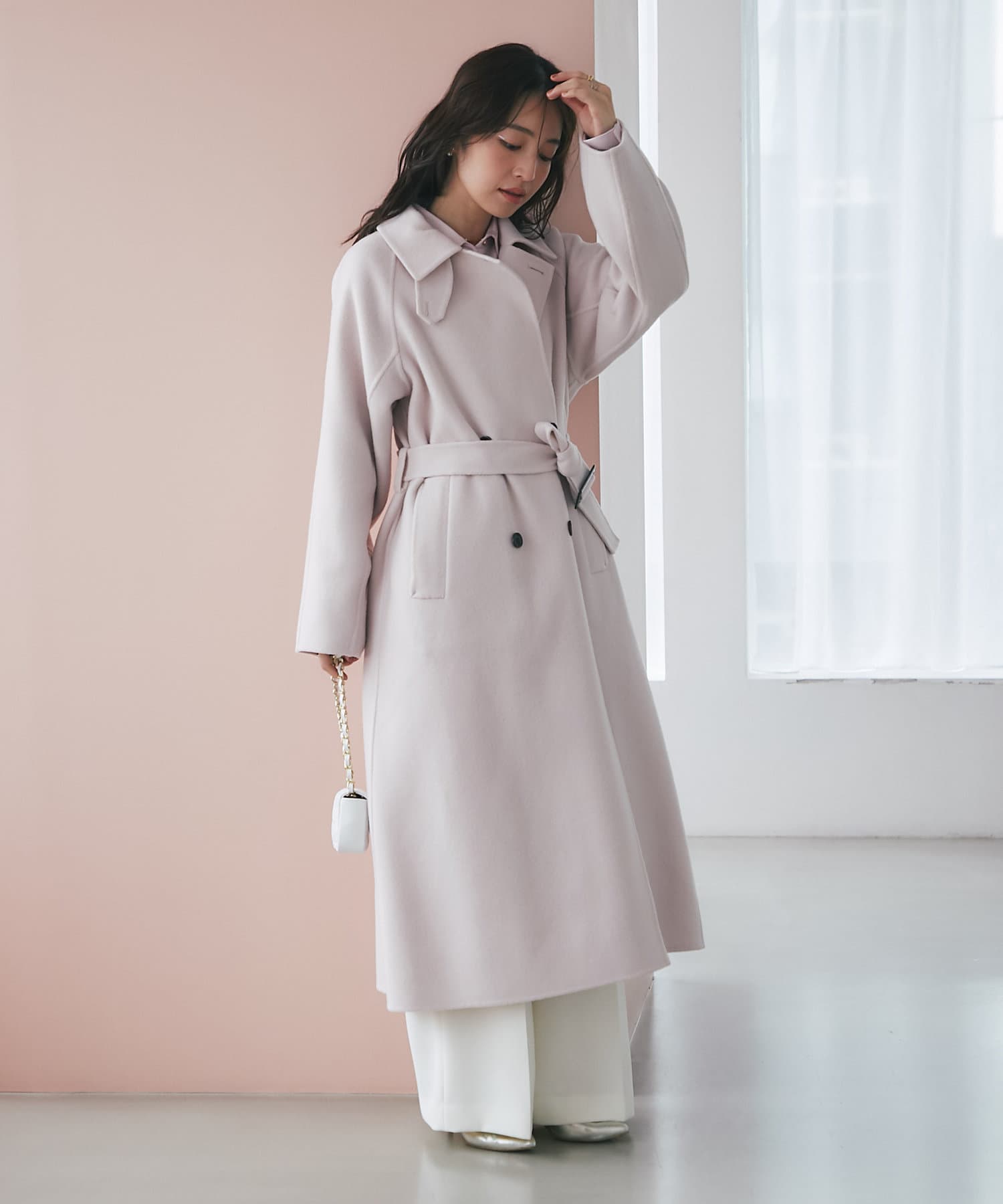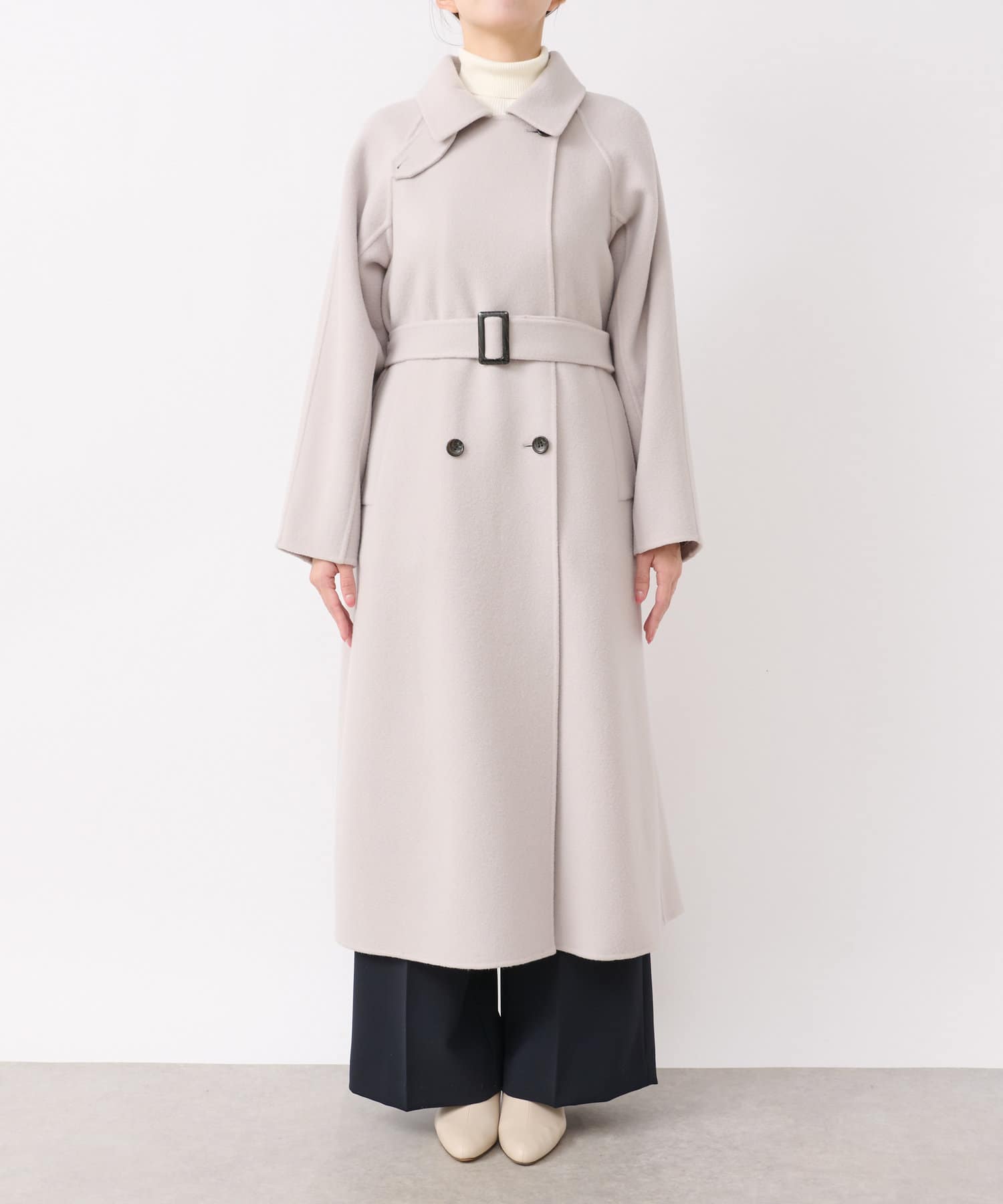 高級感のあるダブルフェイスで軽い仕上がりのトレンチ型ロングコート