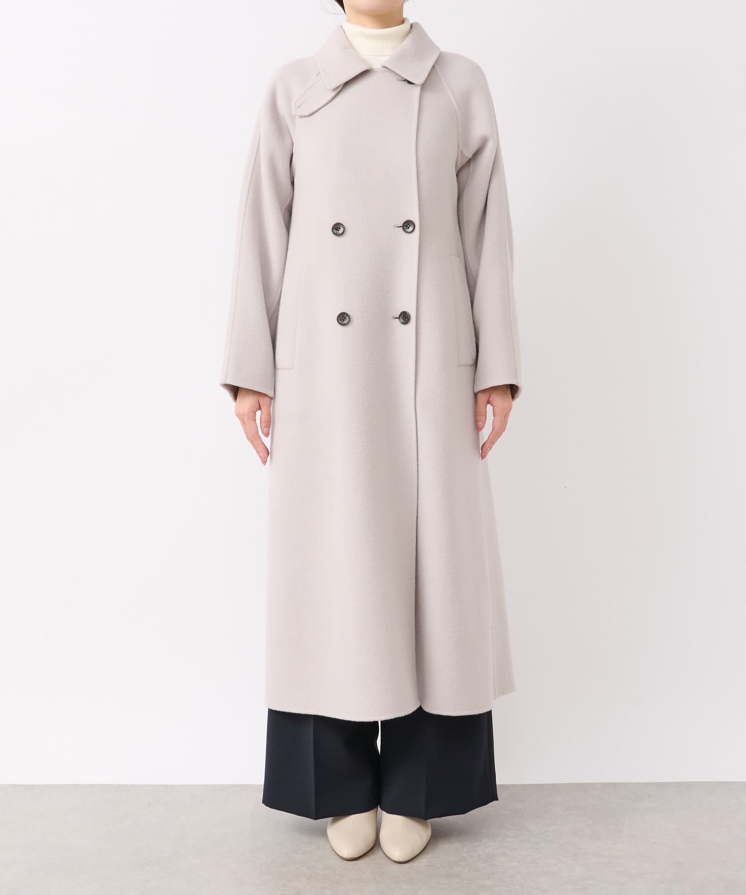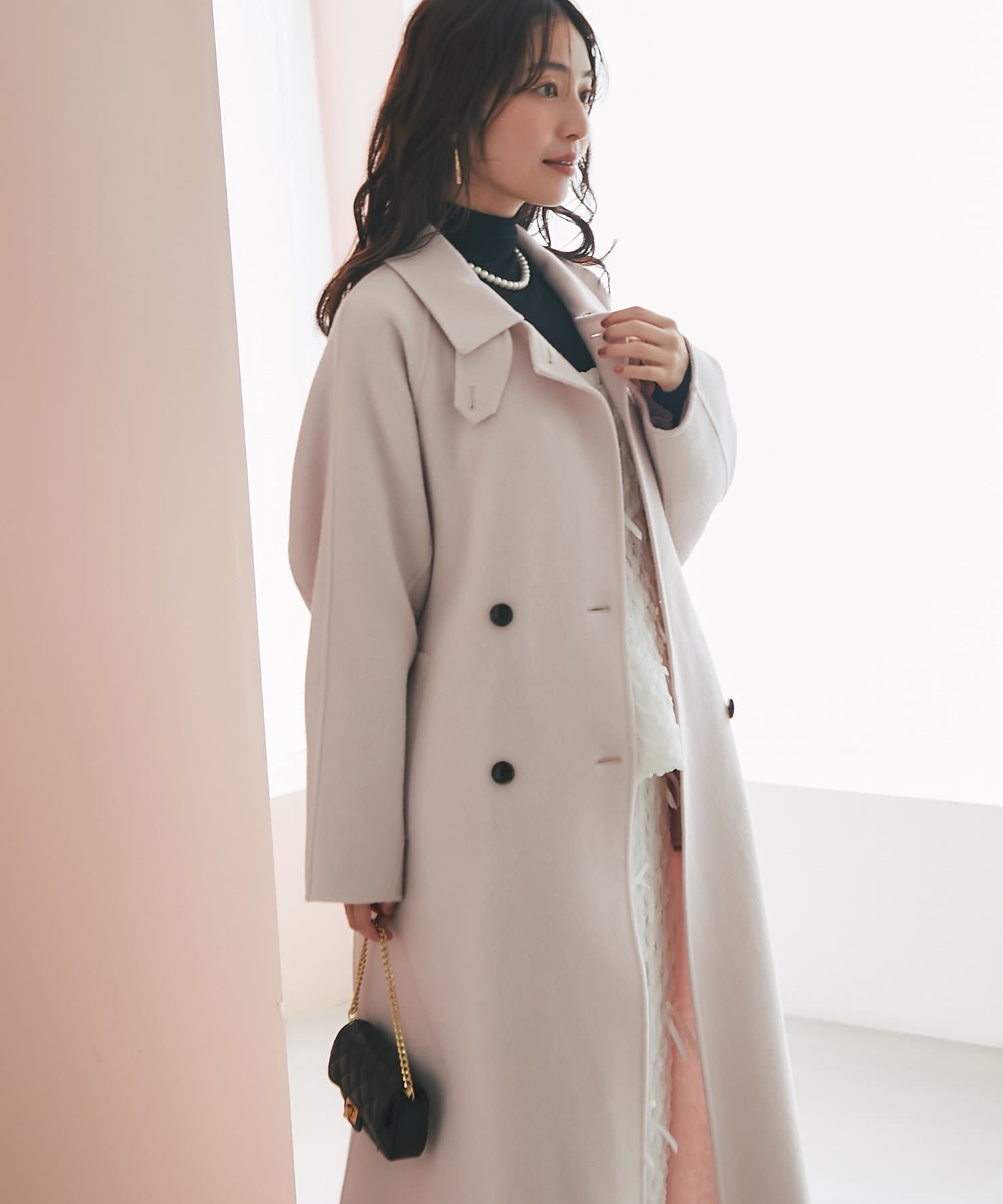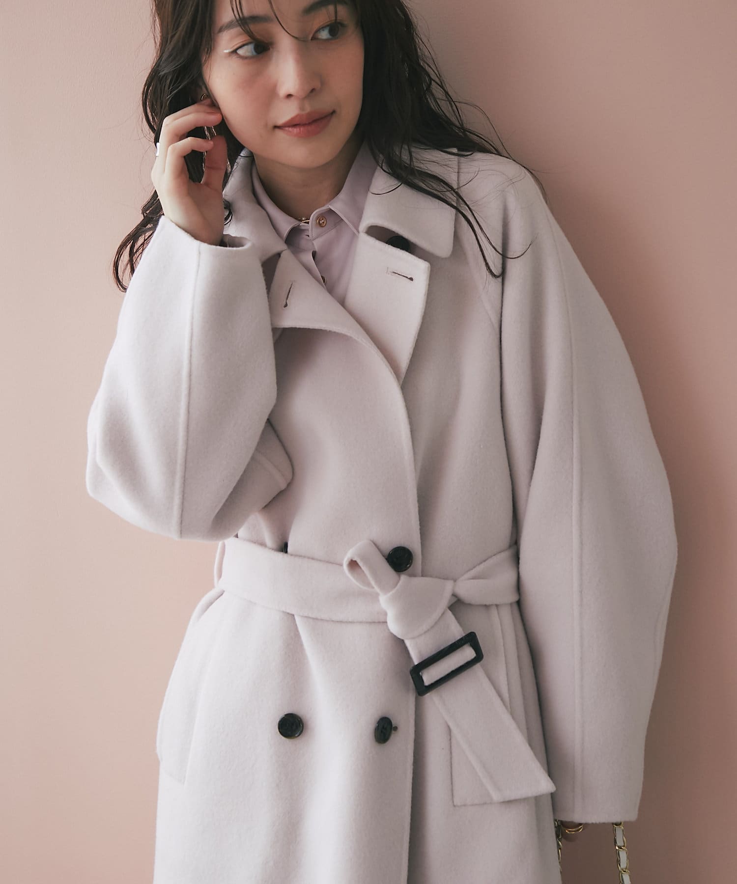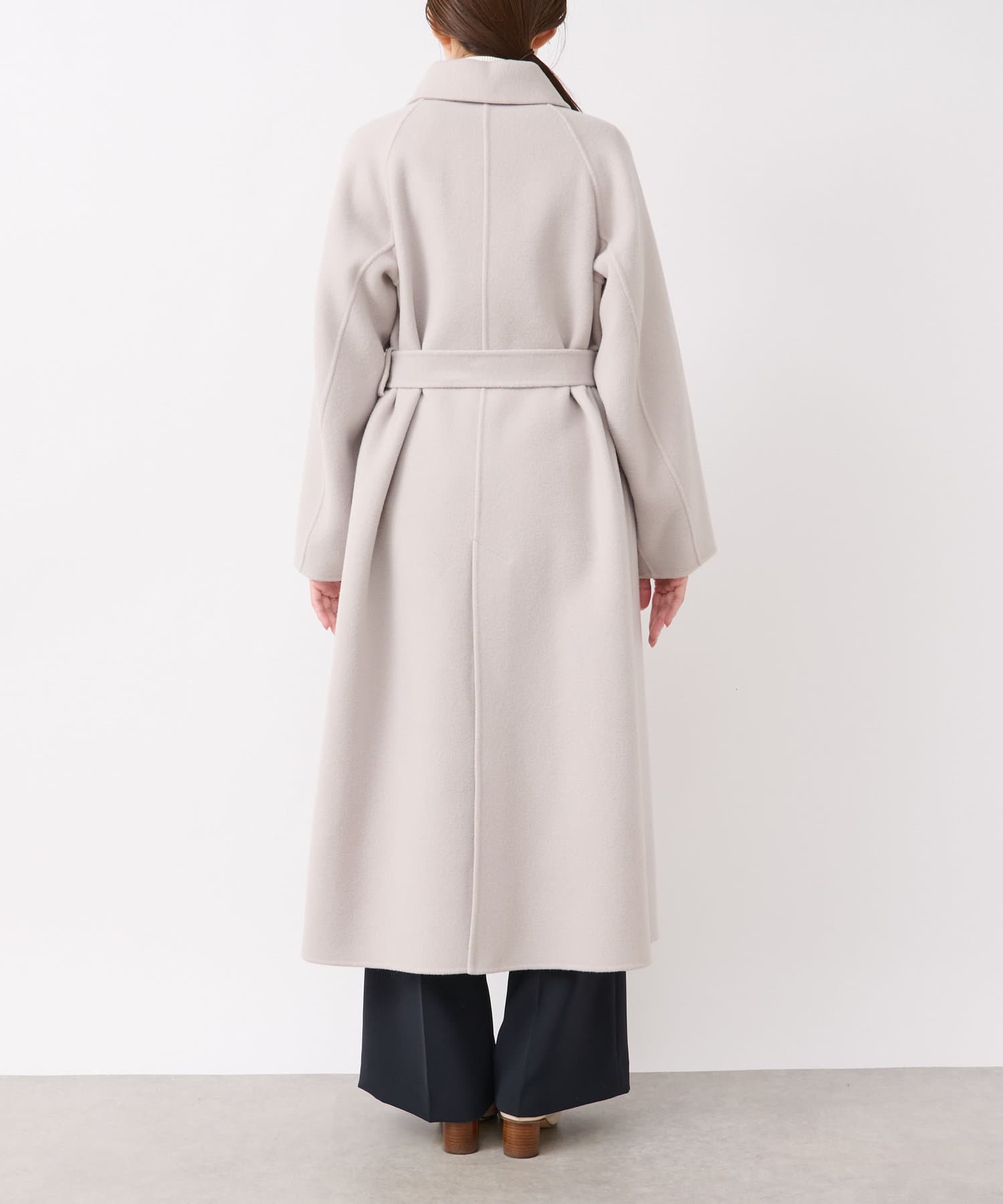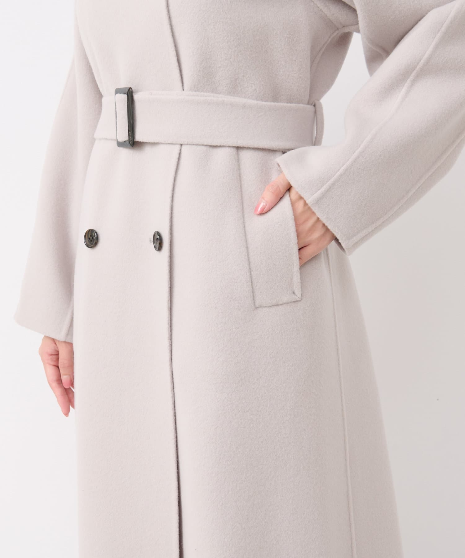 高級感のあるダブルフェイスで軽い仕上がりのトレンチ型ロングコート