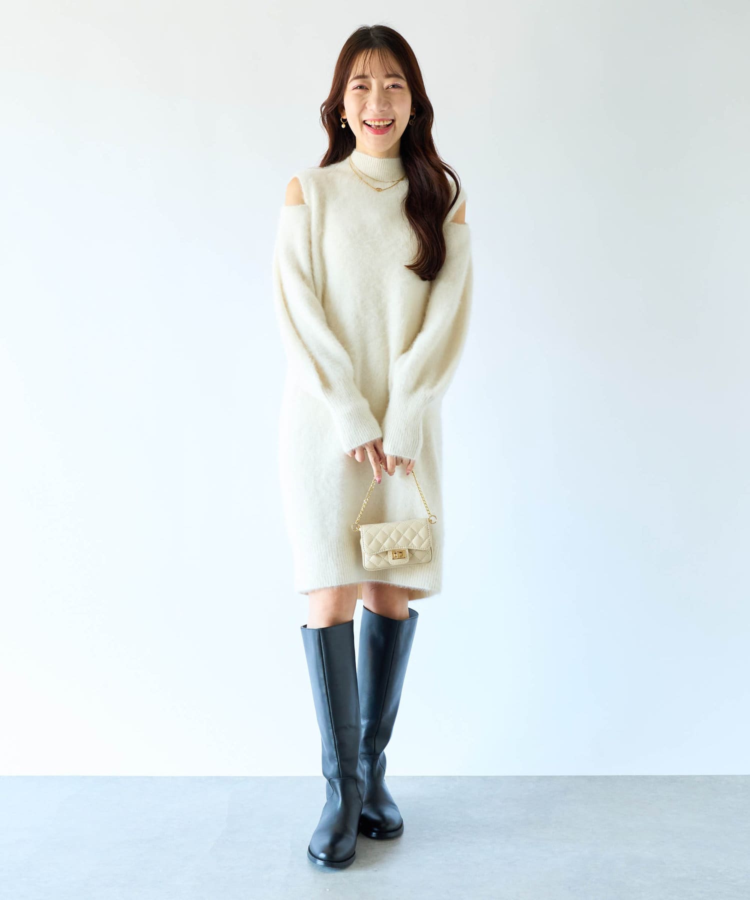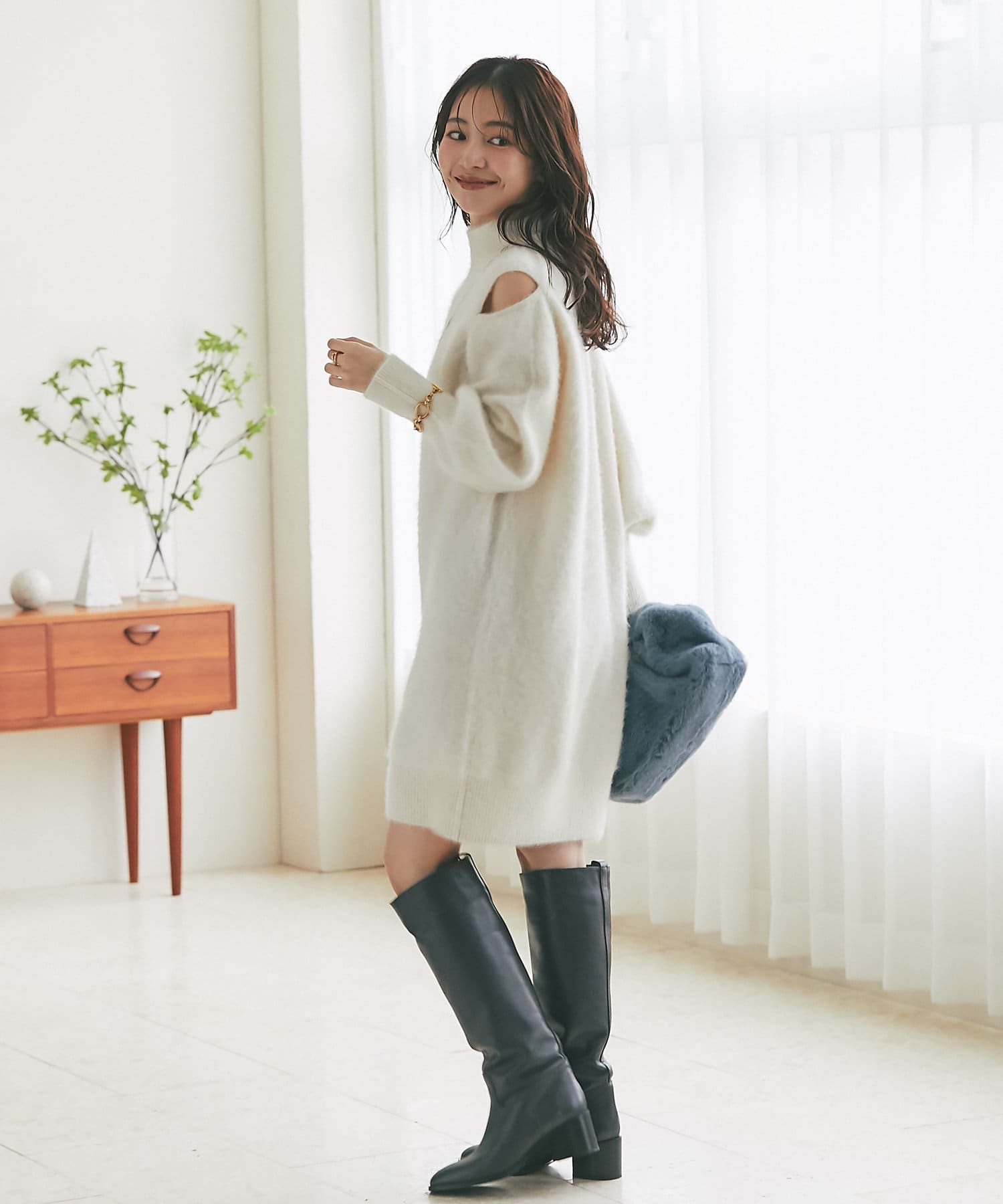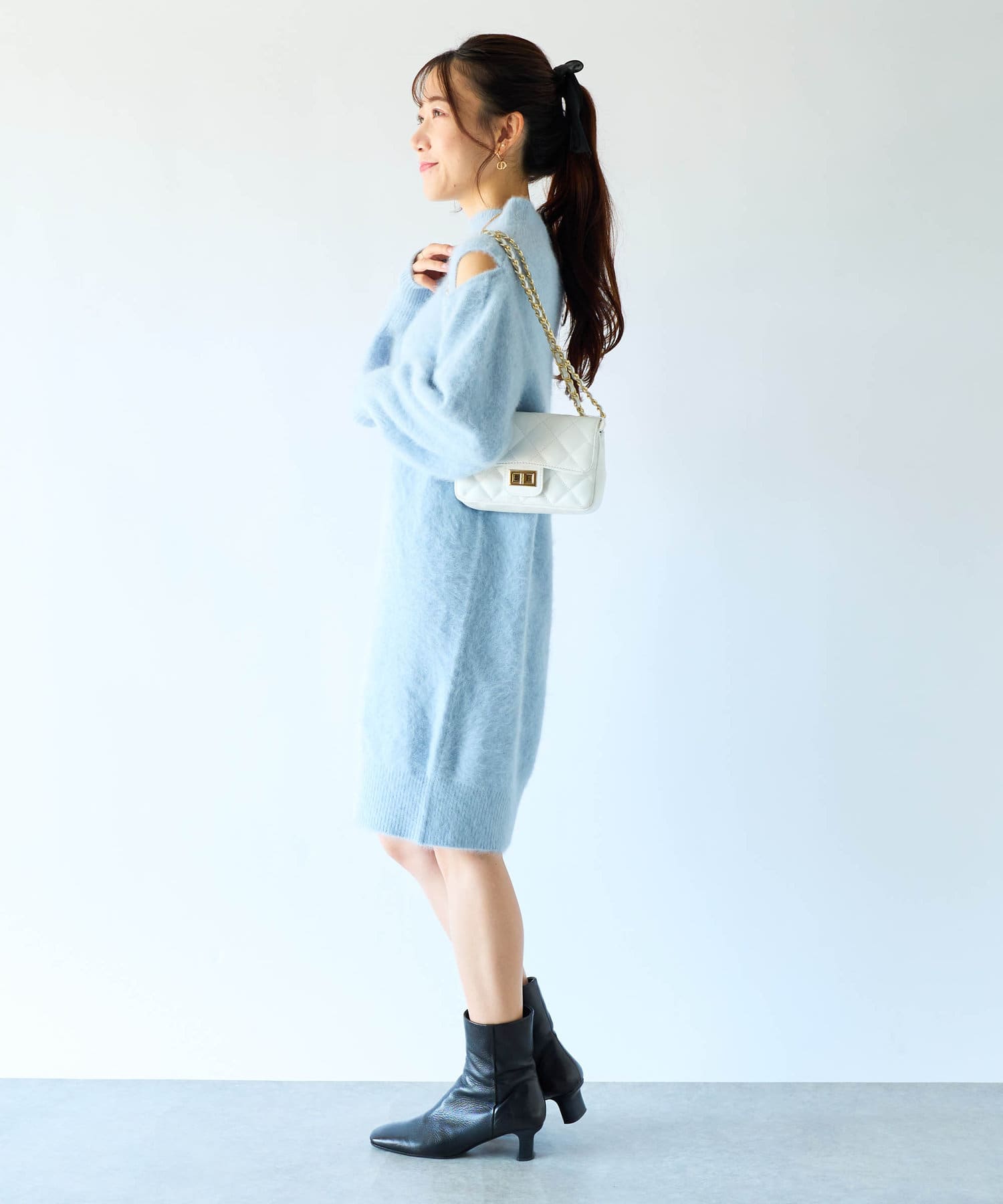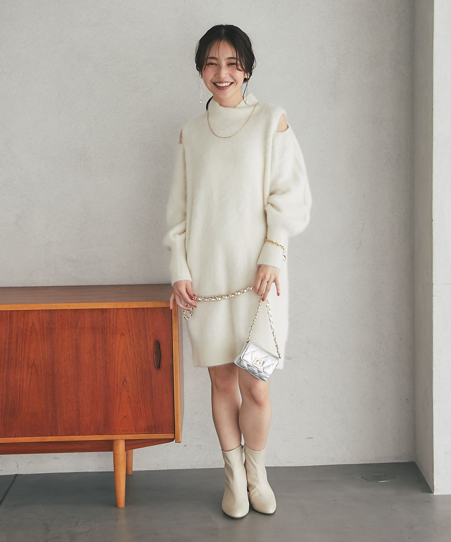 昨年もご好評いただいた、思わず触りたくなるふわふわのスリットショルダーのワンピース。