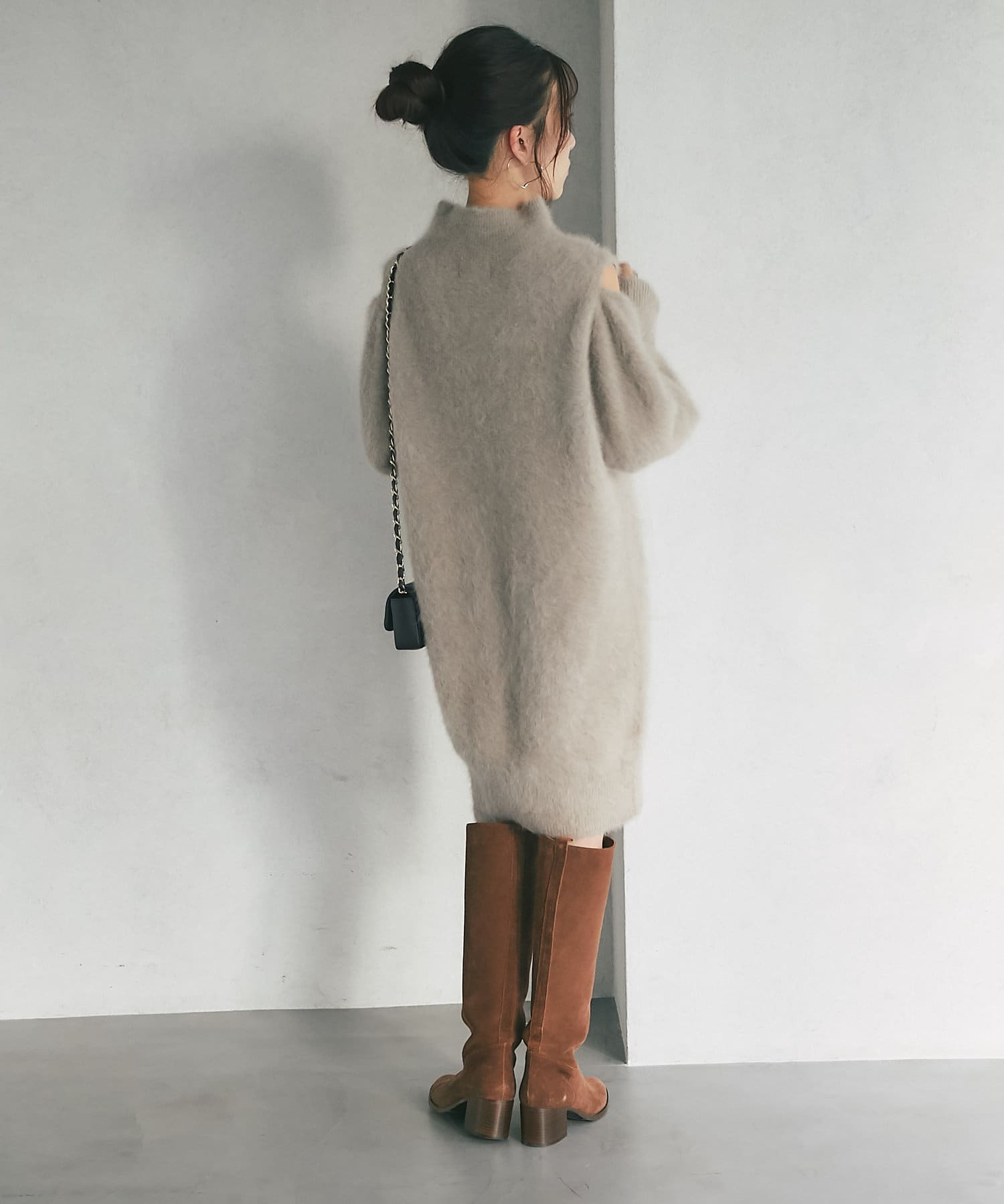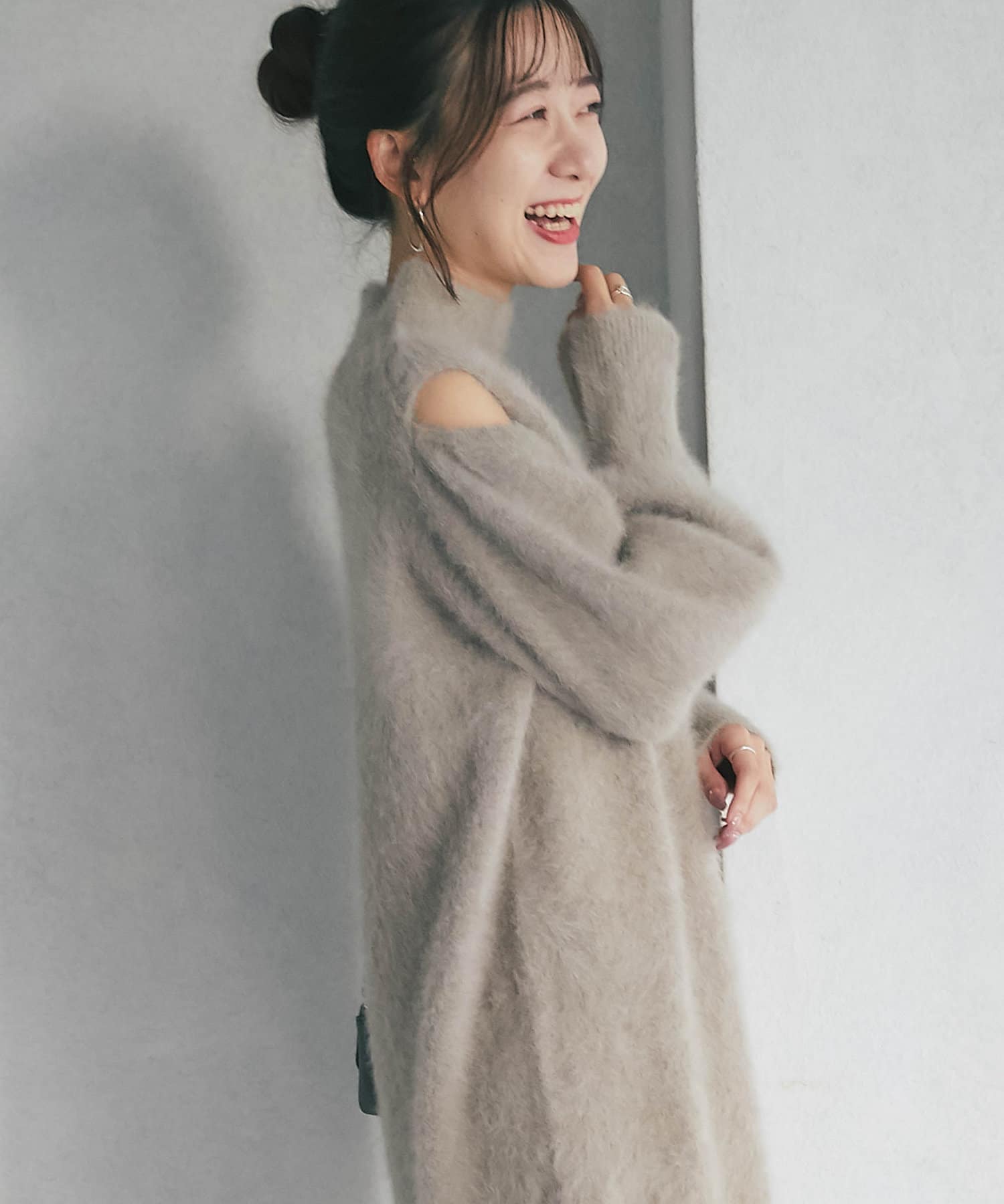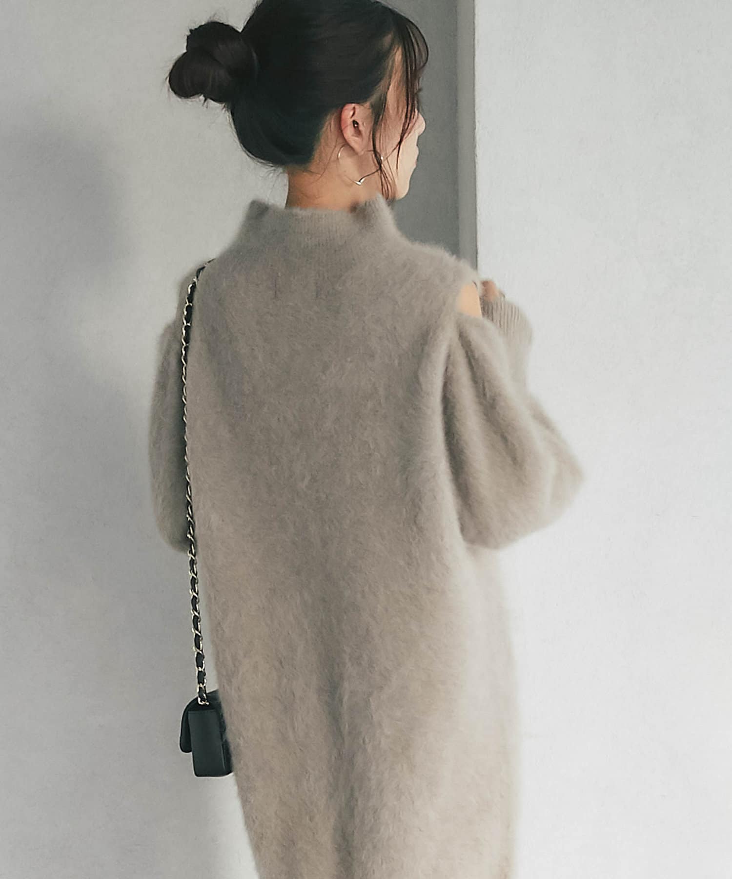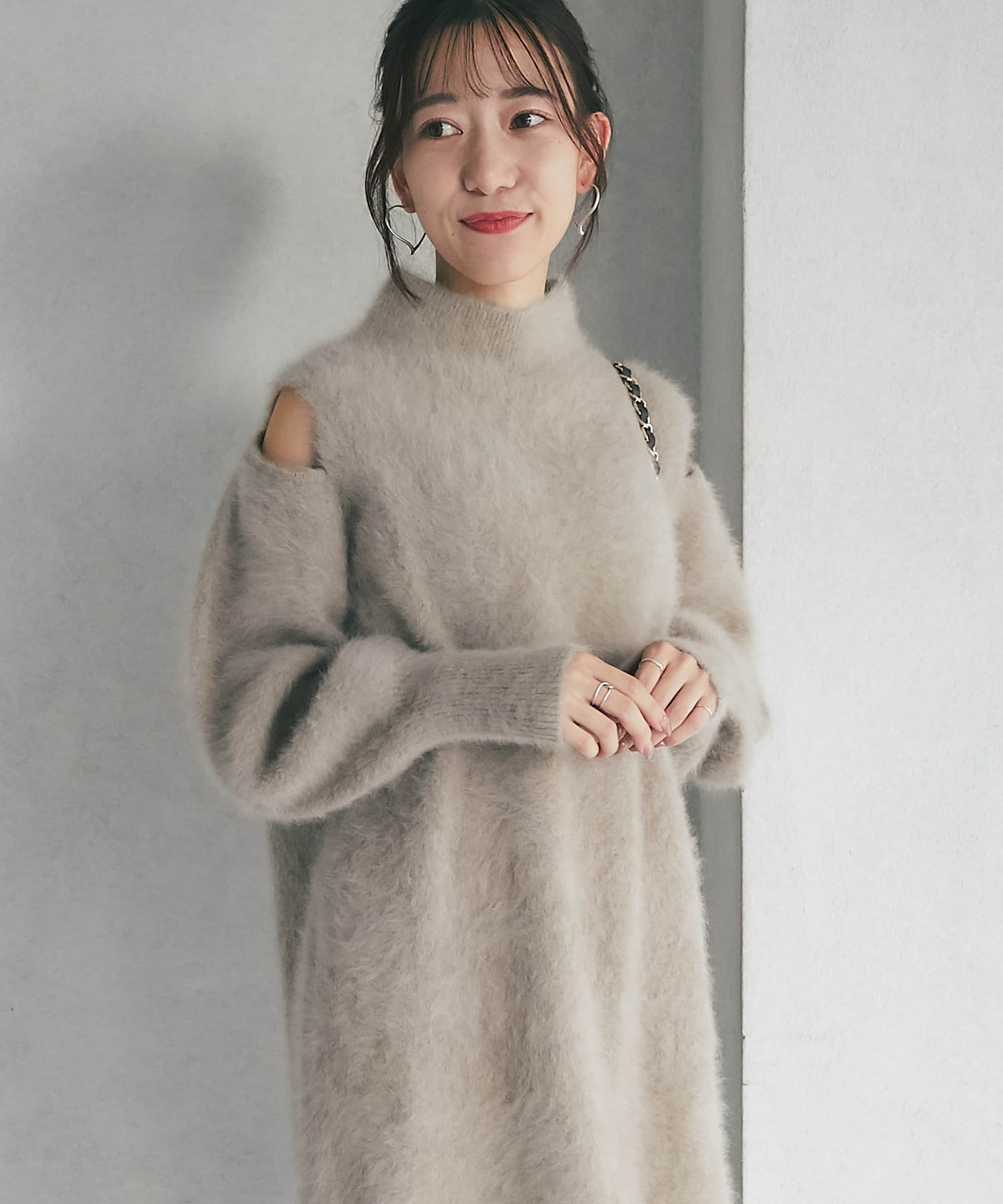 【miki監修】ヘアリーウールカシミヤスリットショルダーワンピース