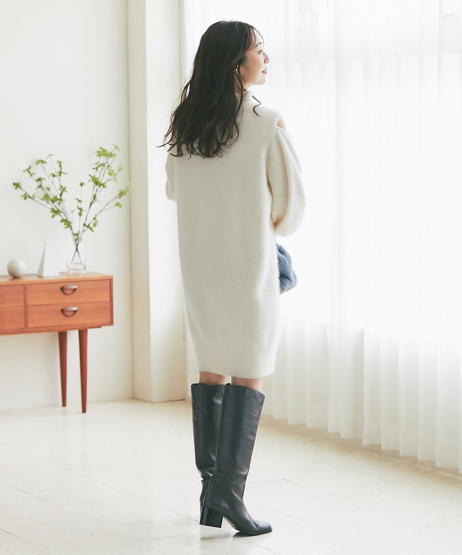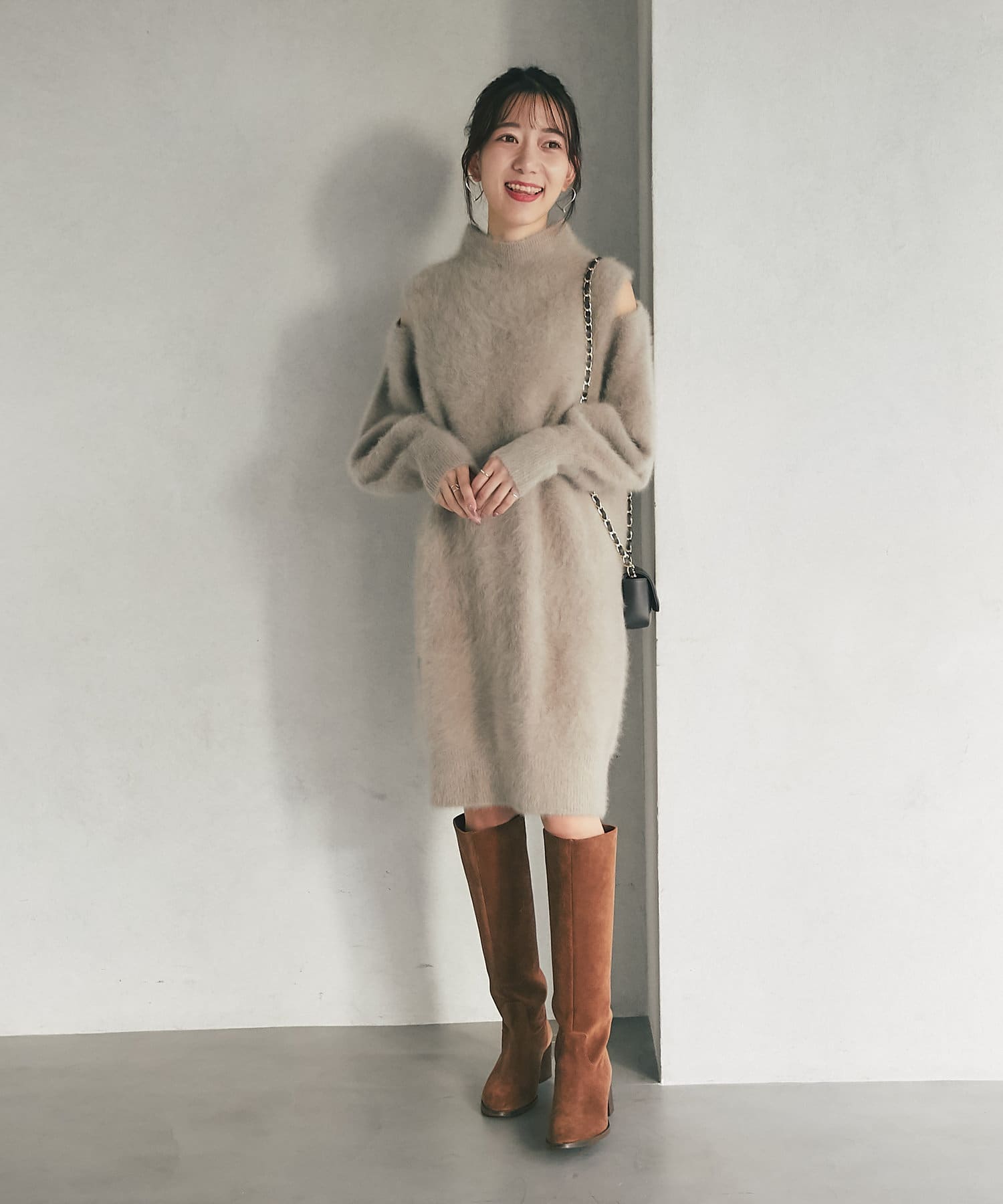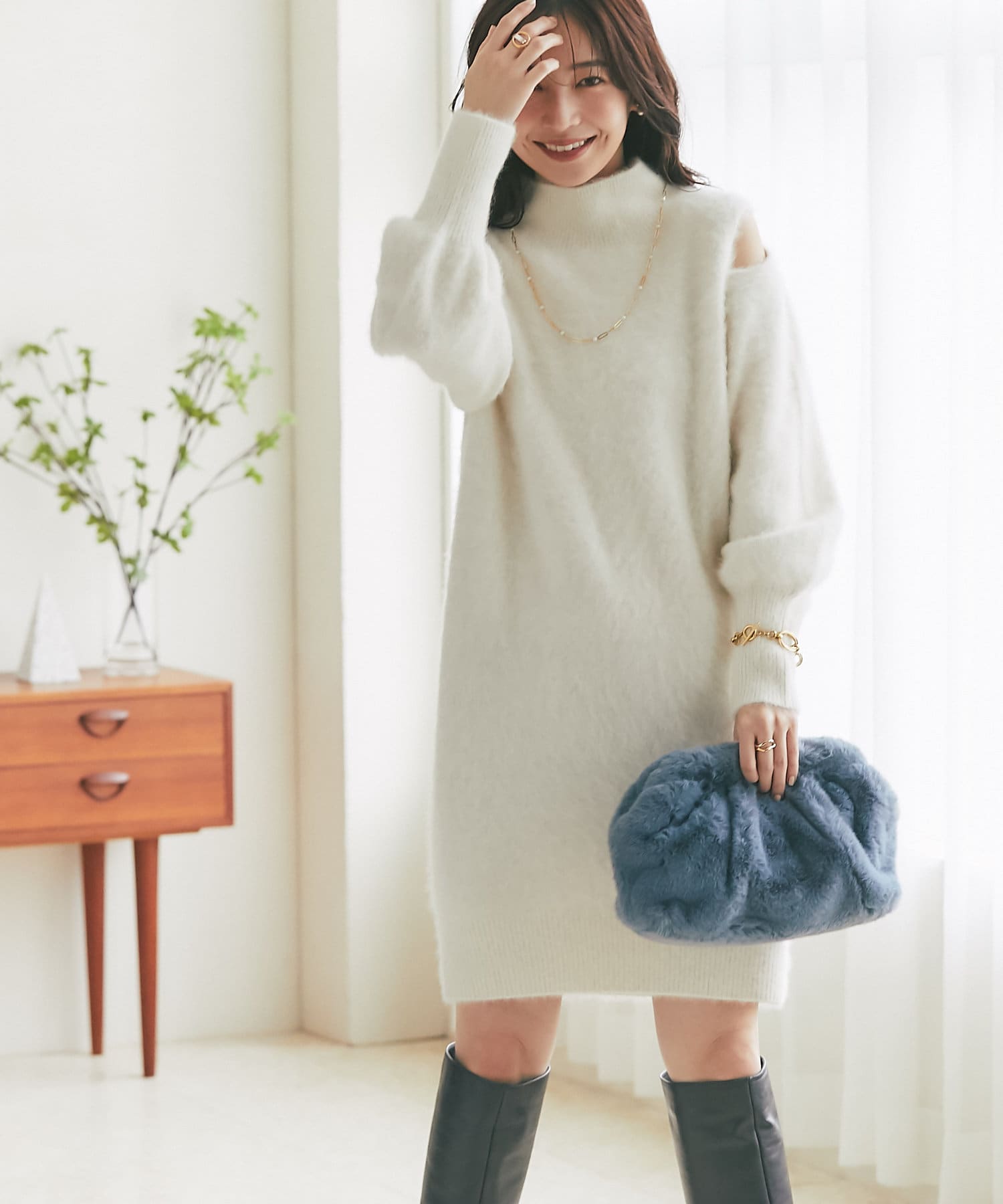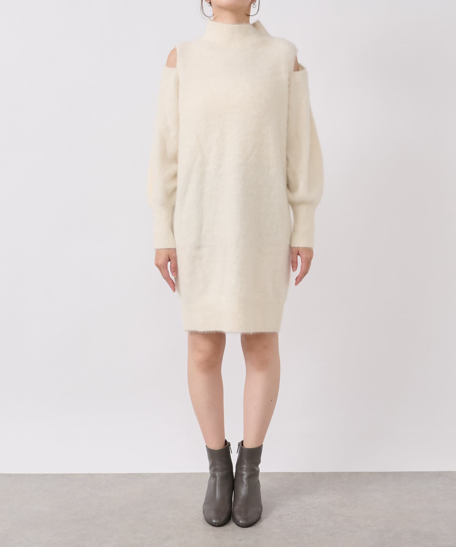 【miki監修】ヘアリーウールカシミヤスリットショルダーワンピース
