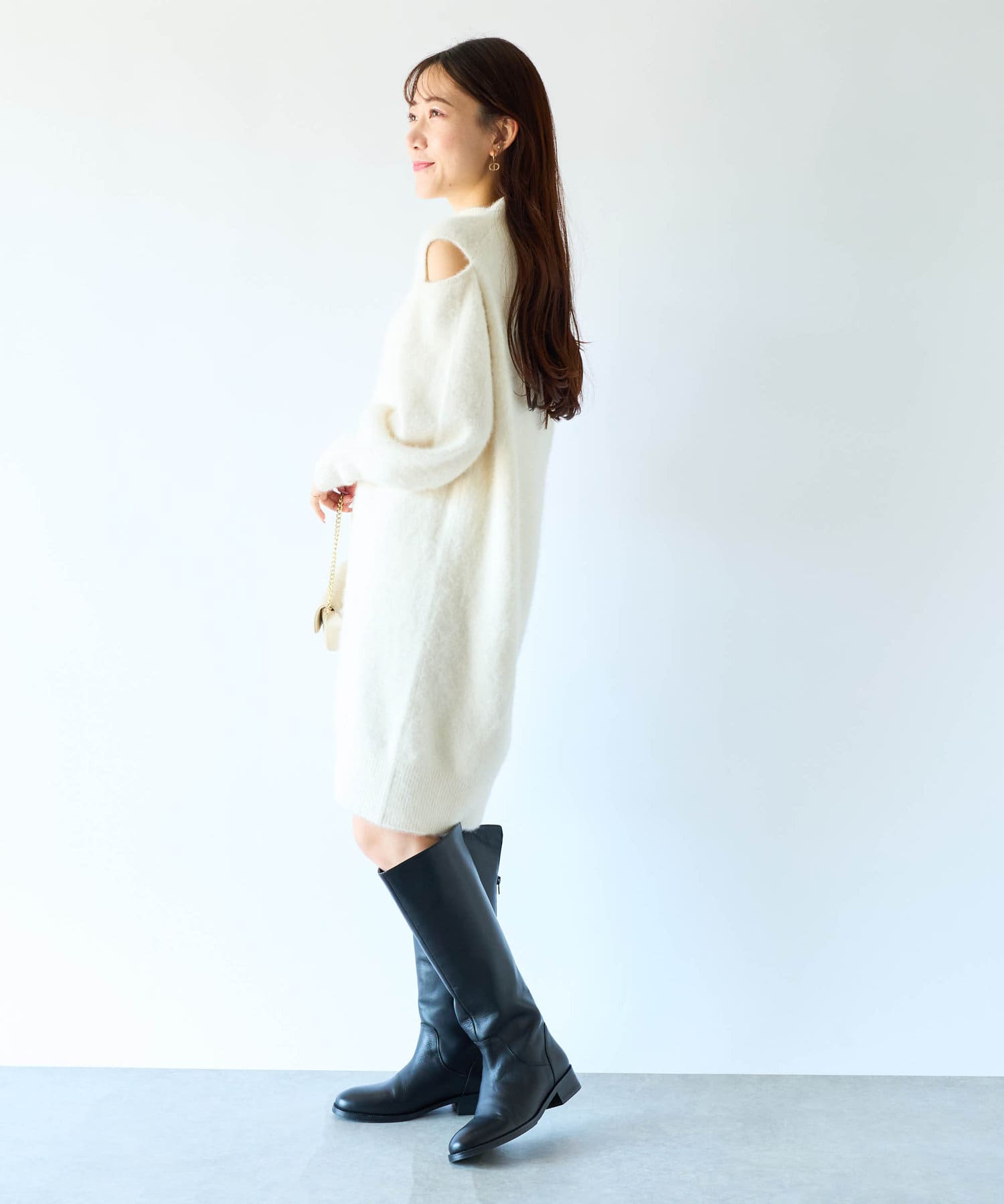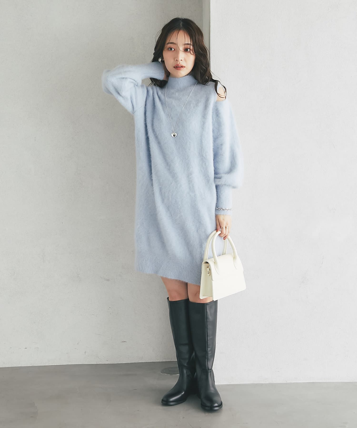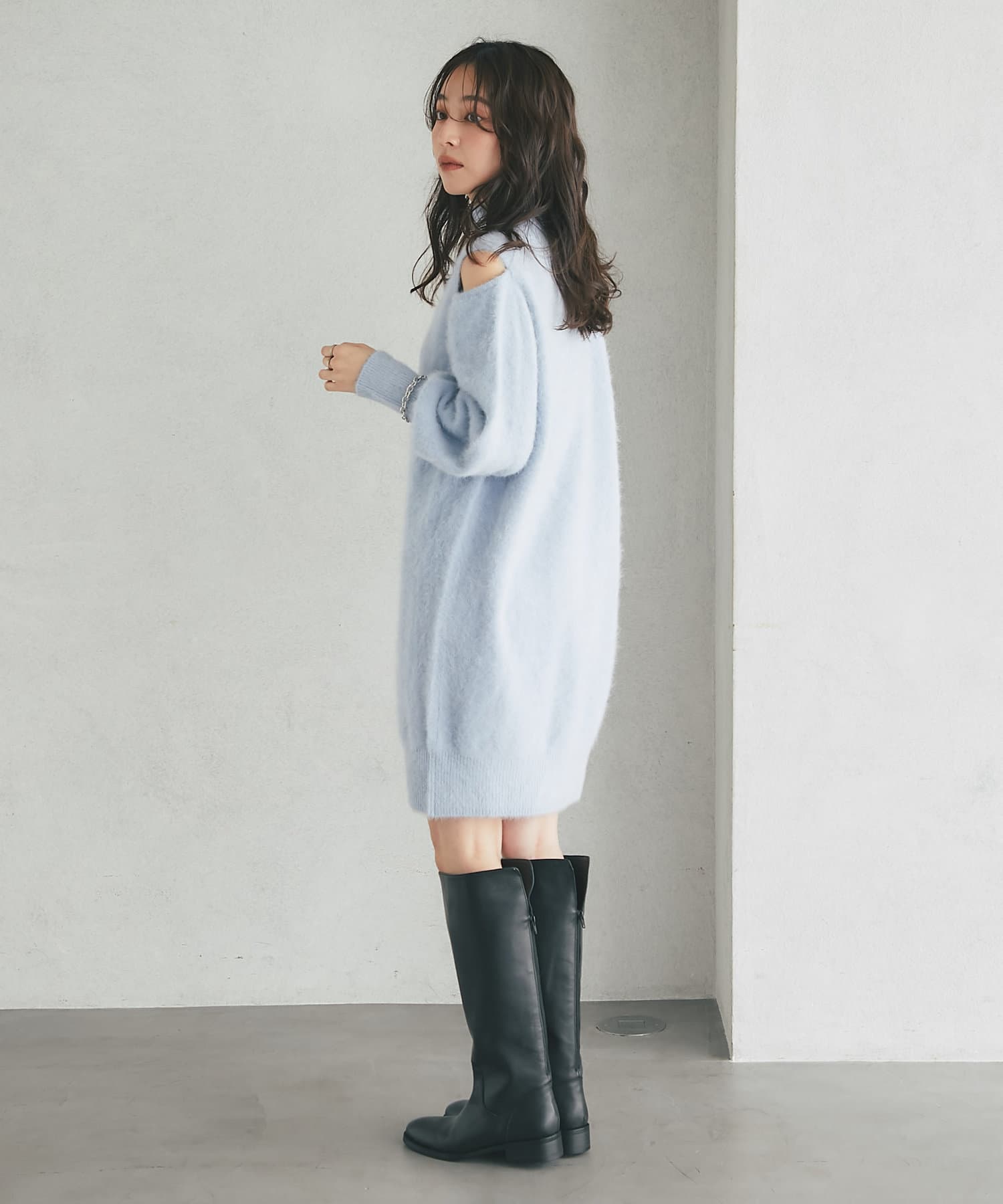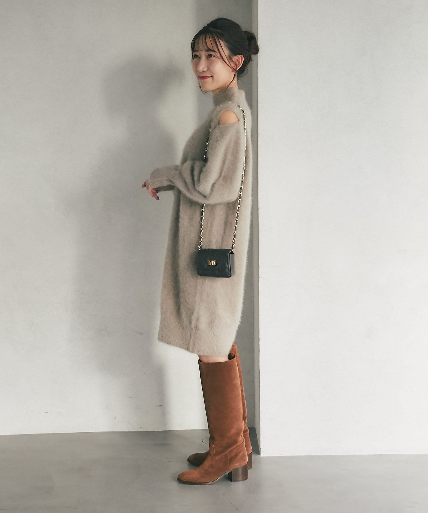【miki監修】ヘアリーウールカシミヤスリットショルダーワンピース