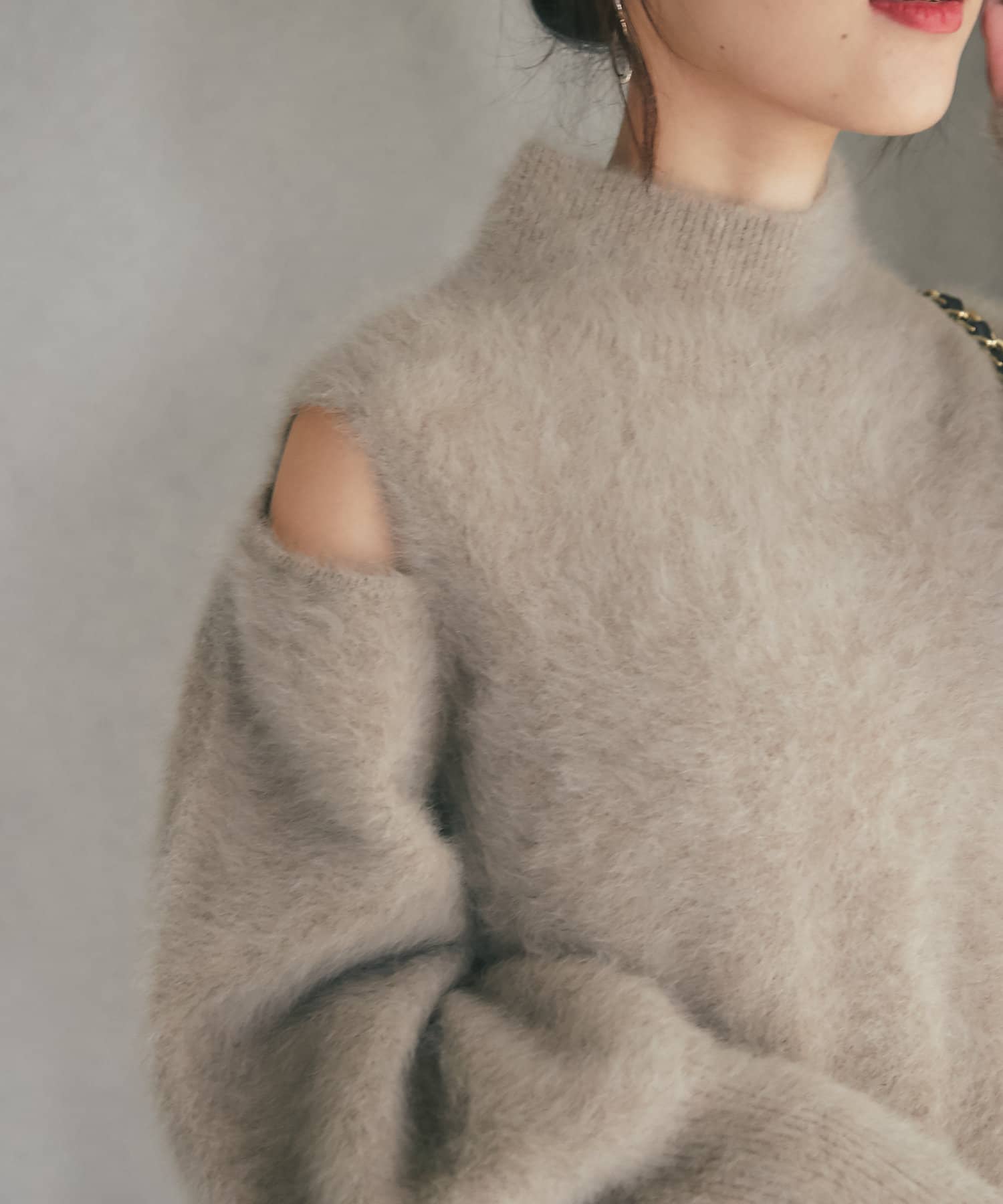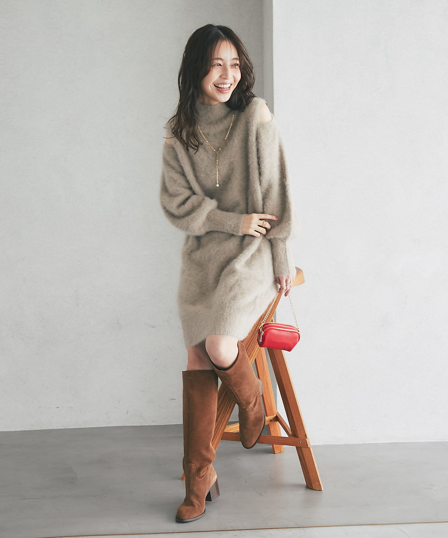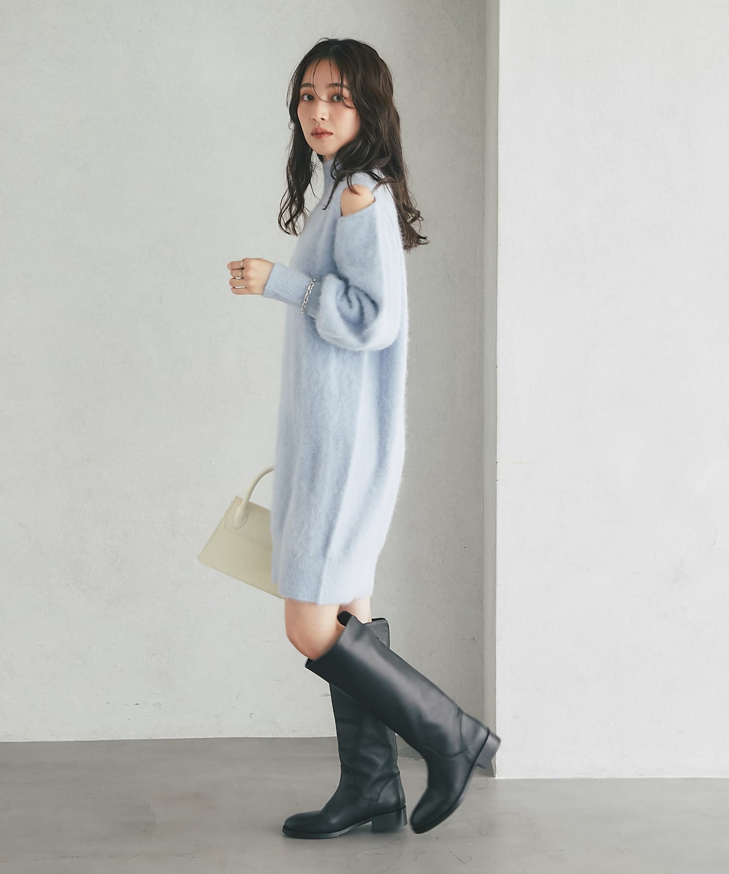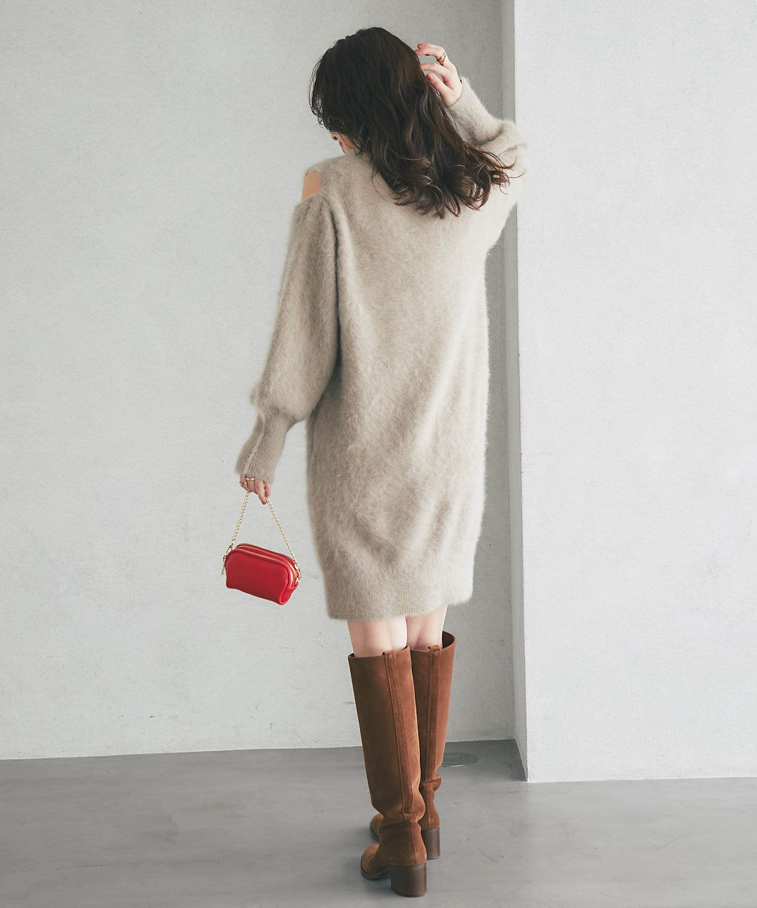 【miki監修】ヘアリーウールカシミヤスリットショルダーワンピース