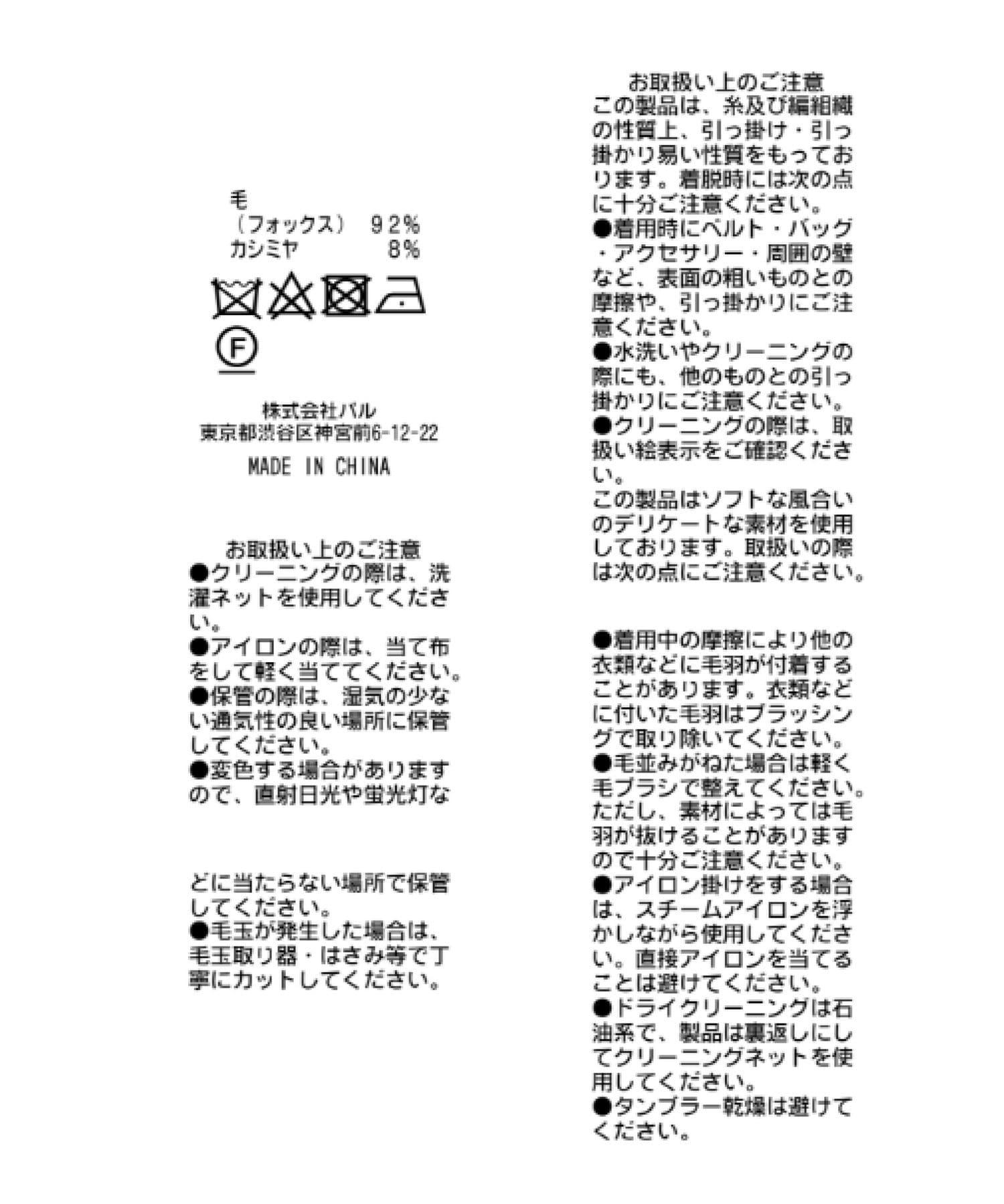 サイズ 着丈 袖丈 肩幅 胸囲 総丈 身幅 前身頃 後身頃 F 86 53.5 36 106 - 53 - - - ショッピングの気になる点はヘルプページをご確認ください