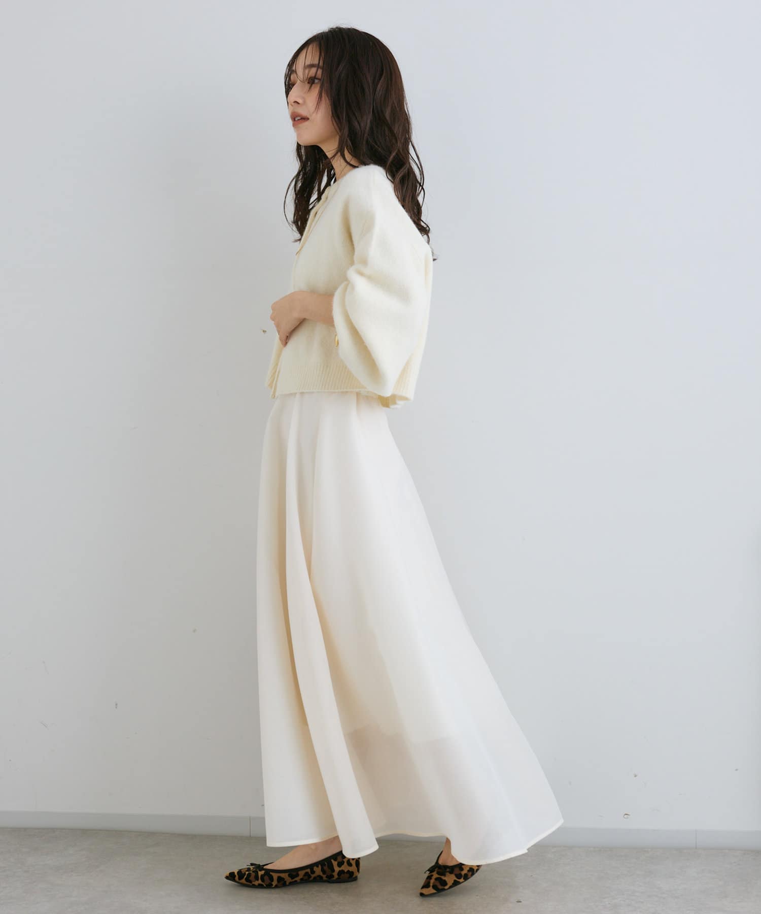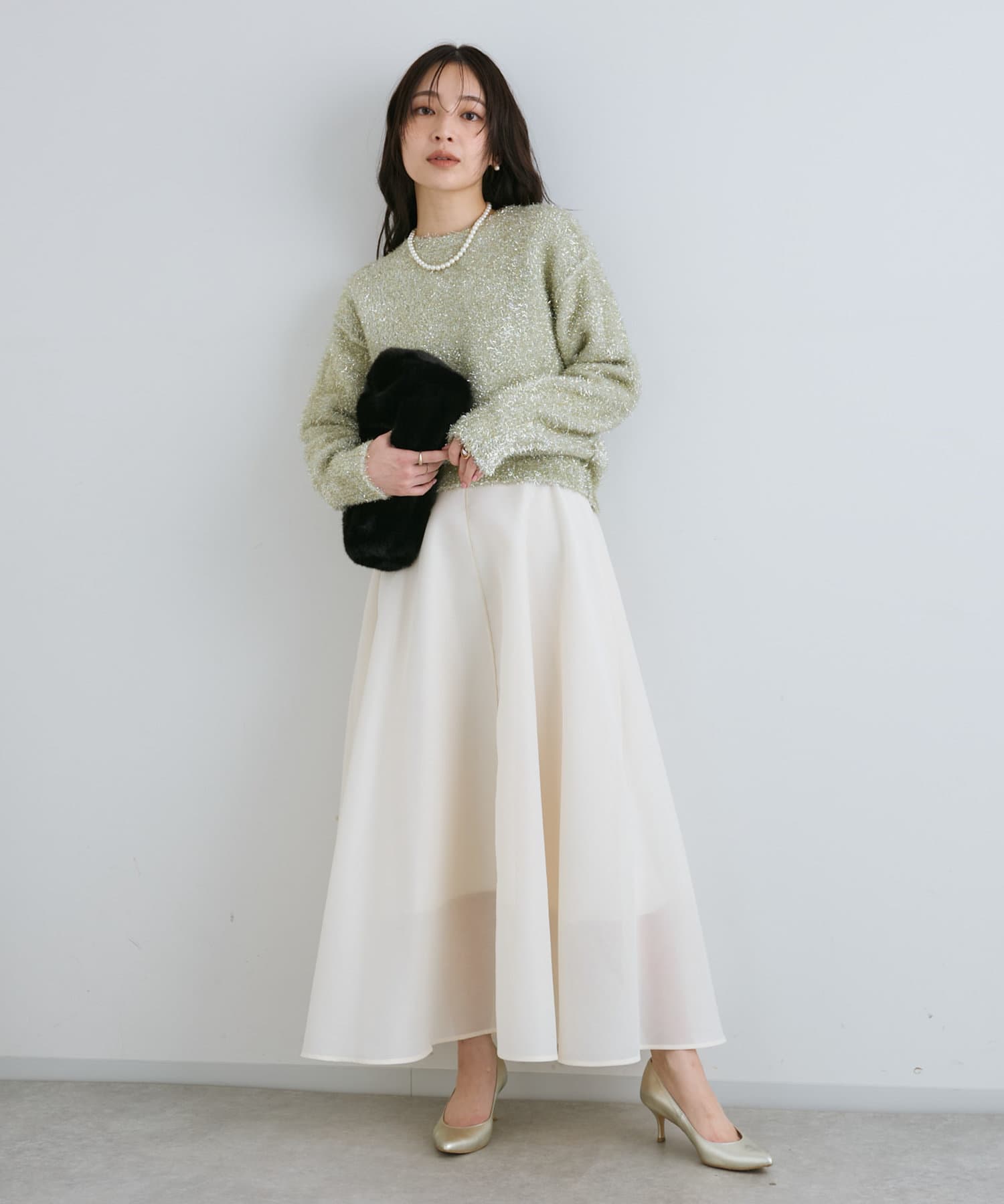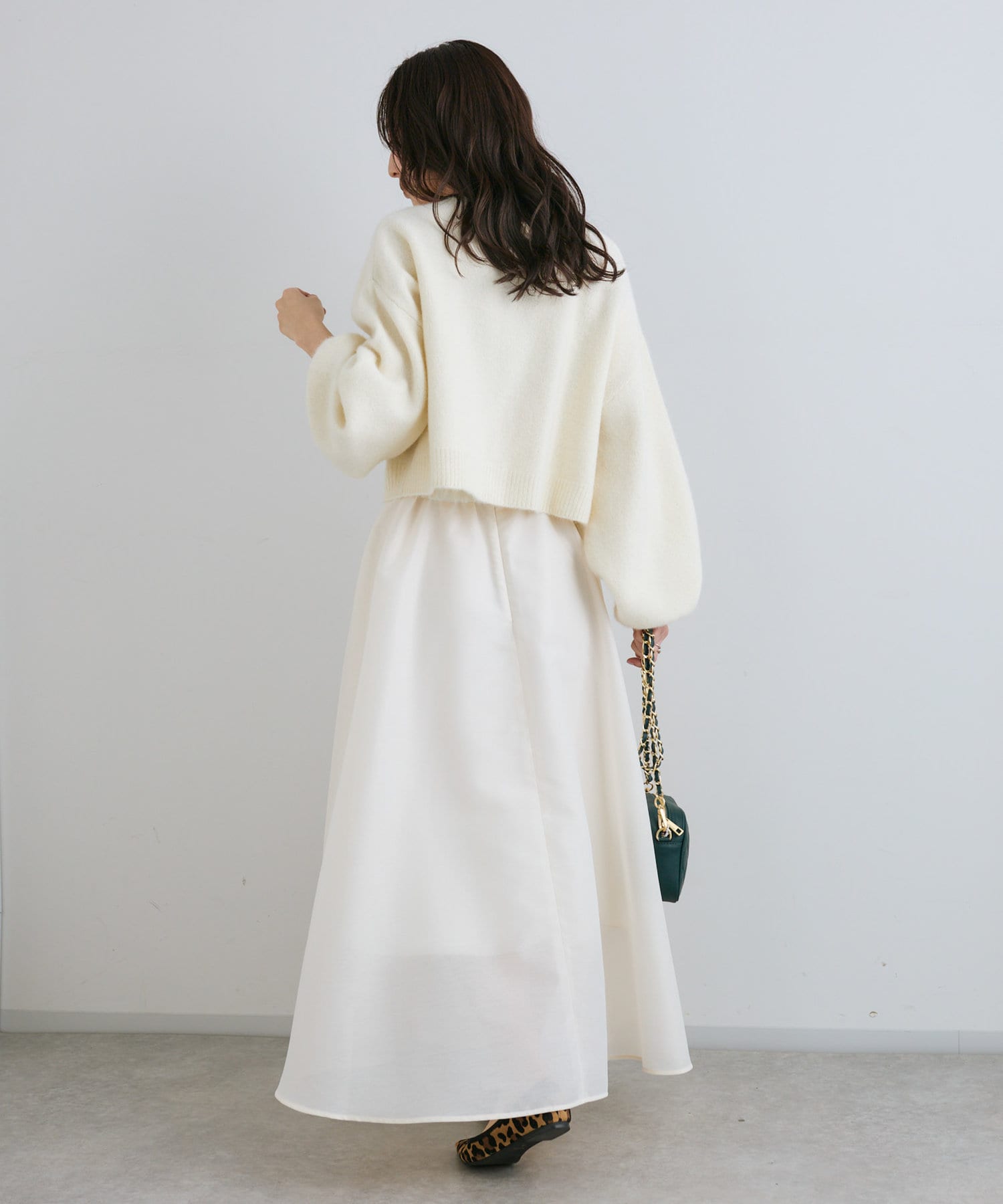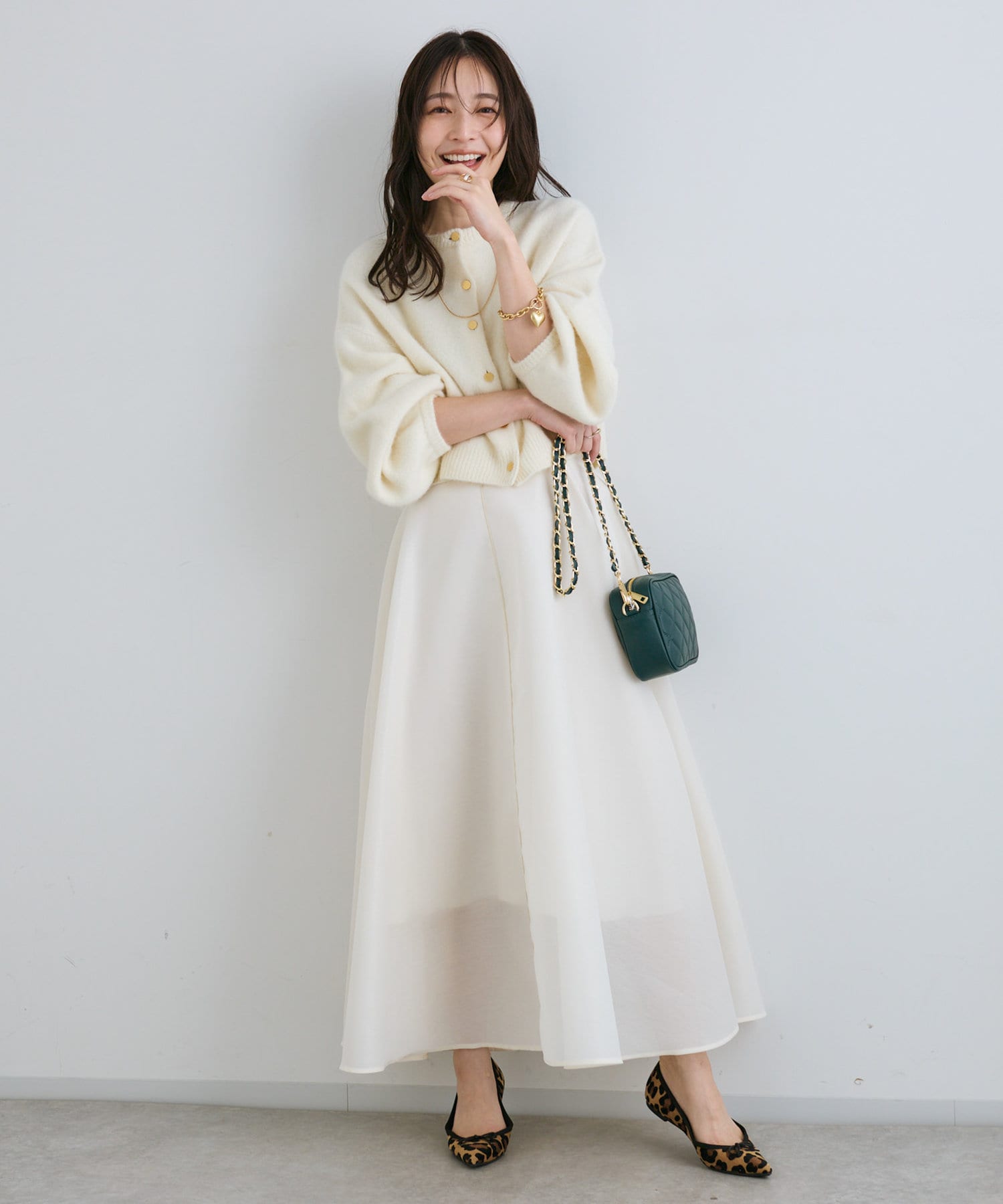 透け感のある生地にハリと独特なふくらみがシルエットを出し、上品見えにしてくれます。