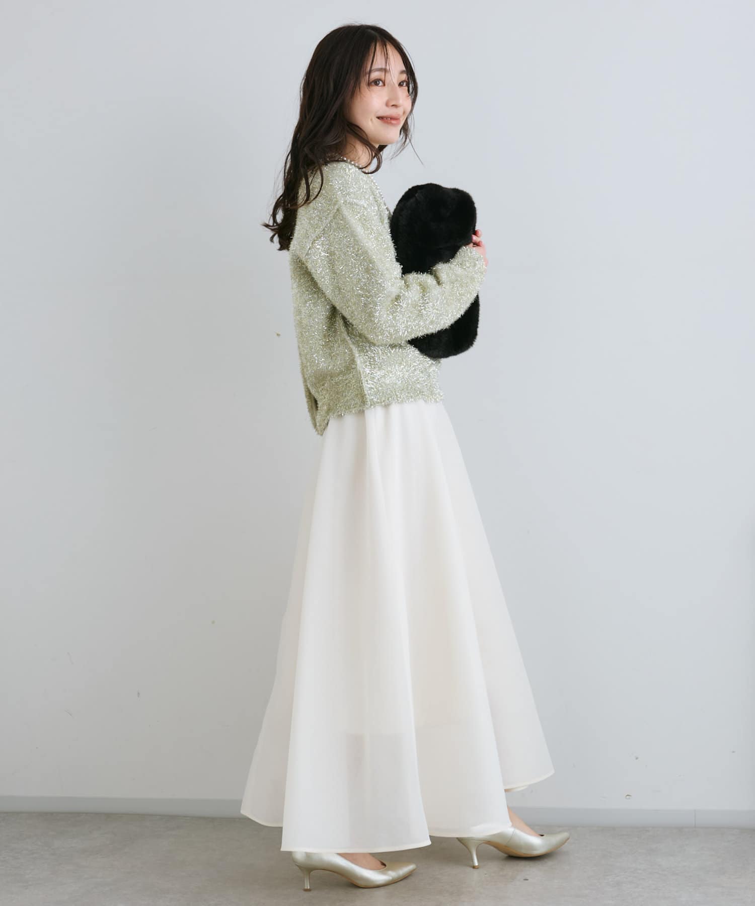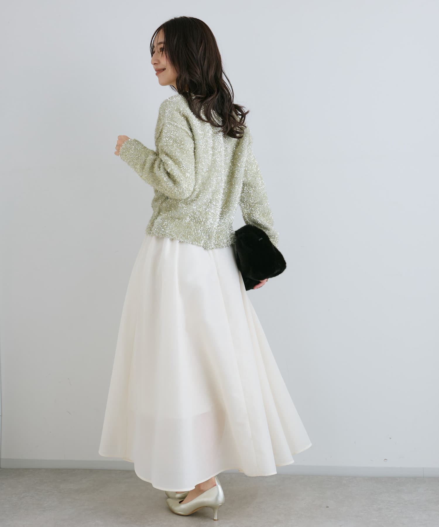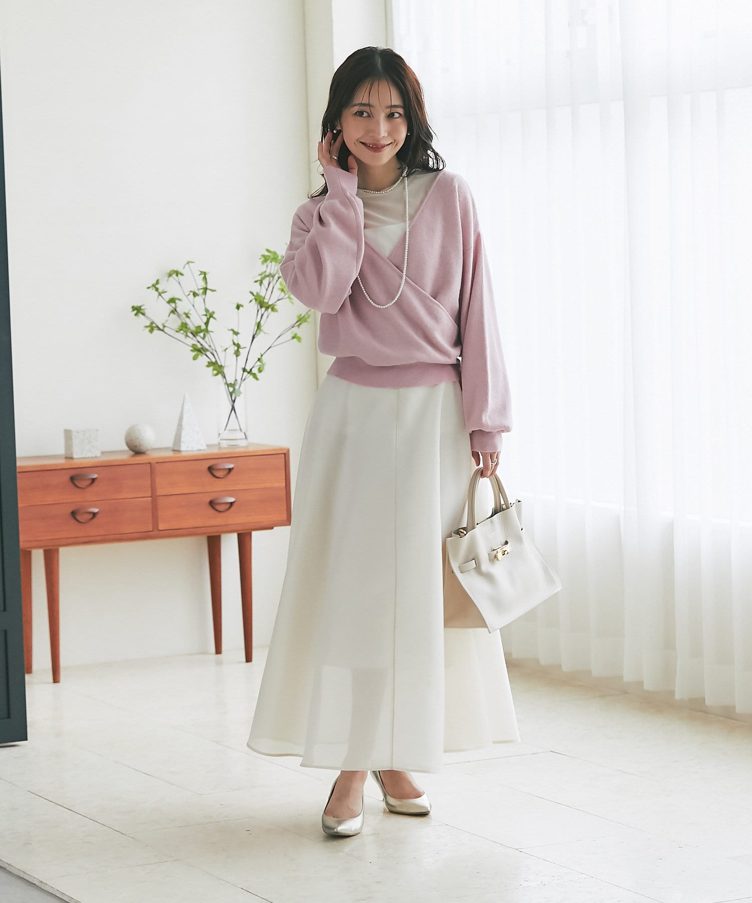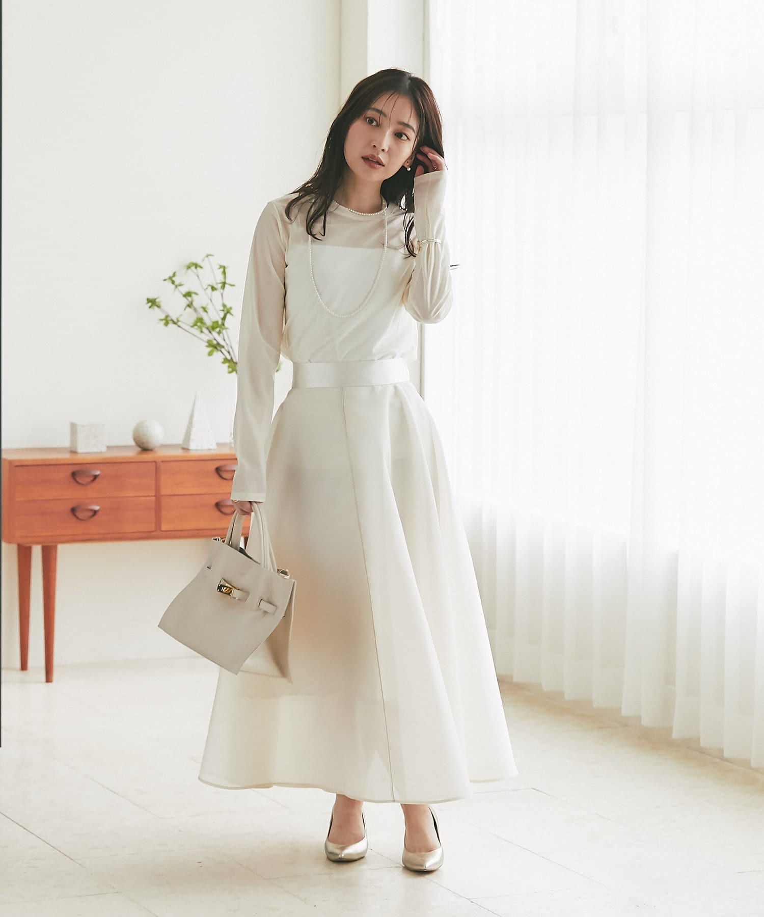 透け感のある生地にハリと独特なふくらみがシルエットを出し、上品見えにしてくれます。