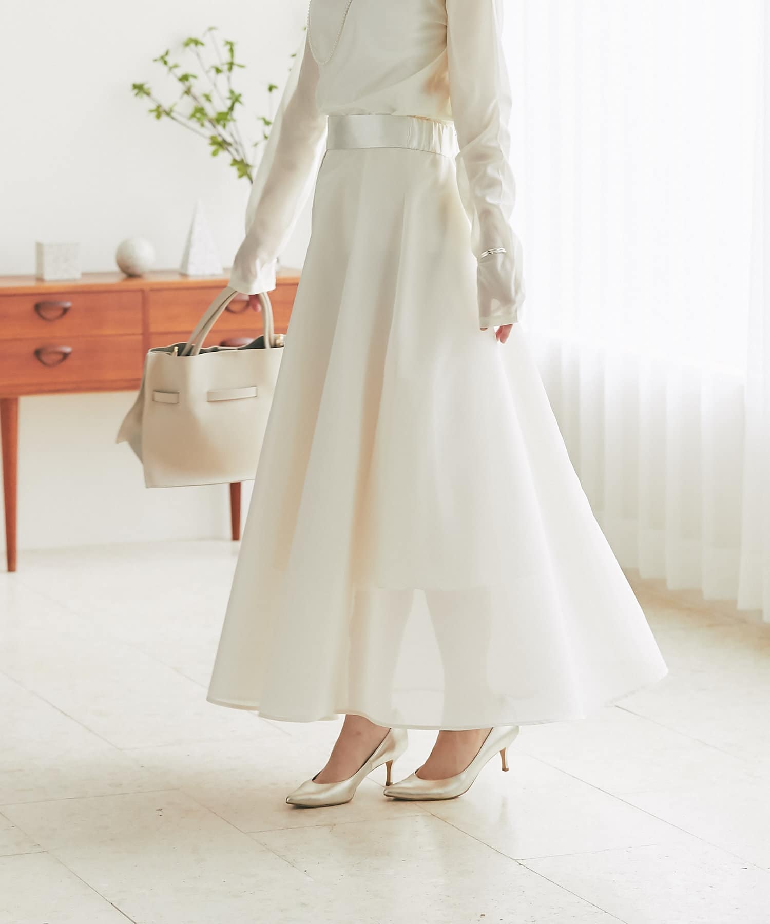 歩くたびに揺れ、シアーな素材感が贅沢に広がるシルエット。