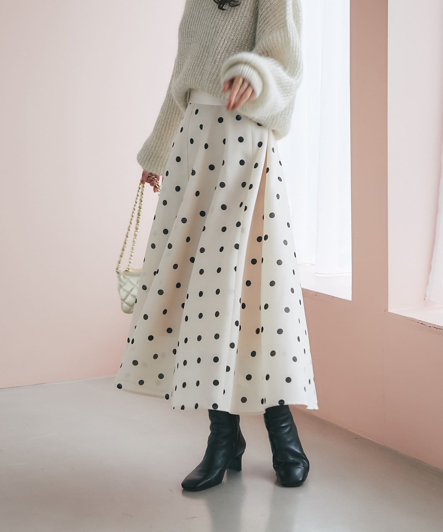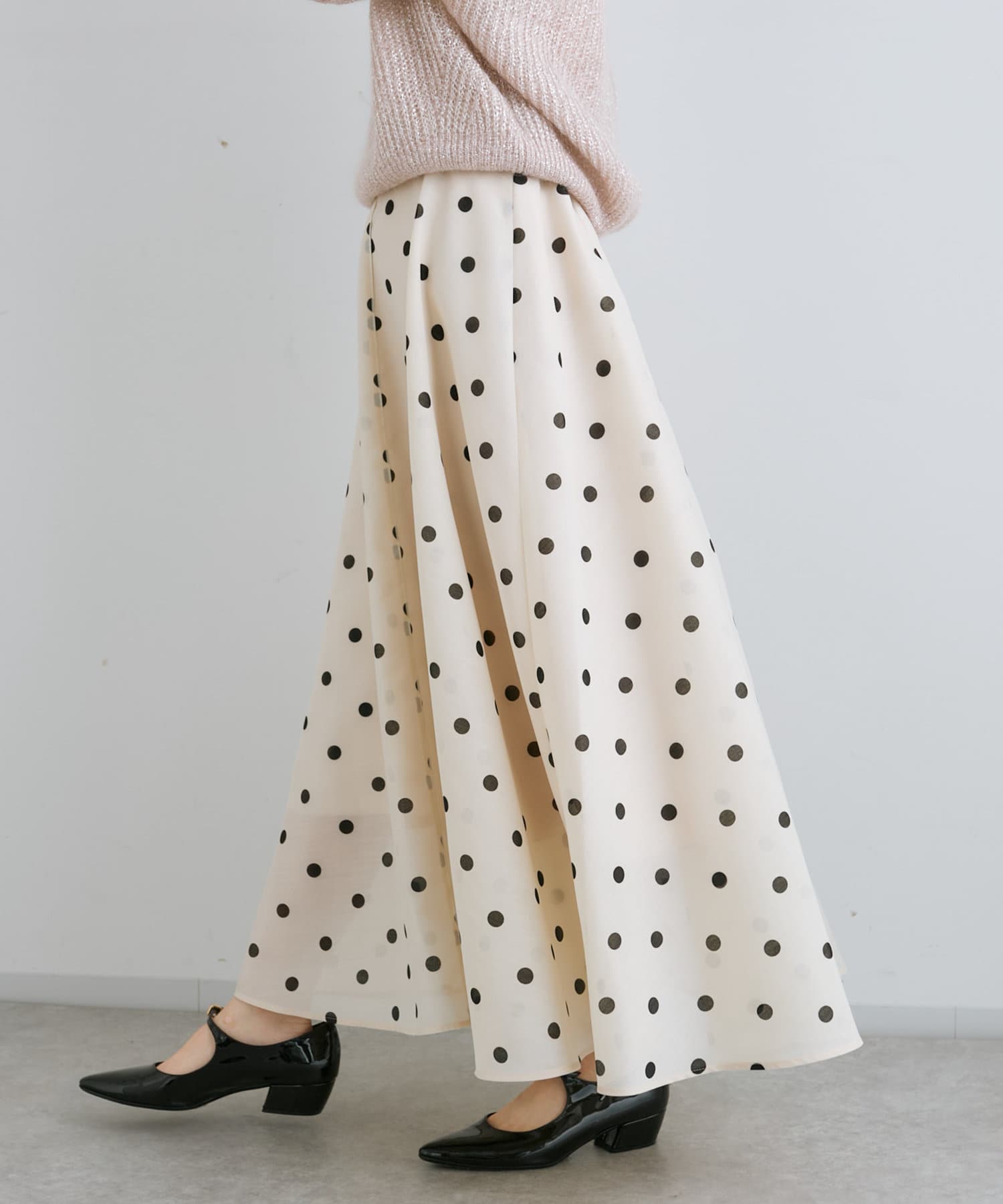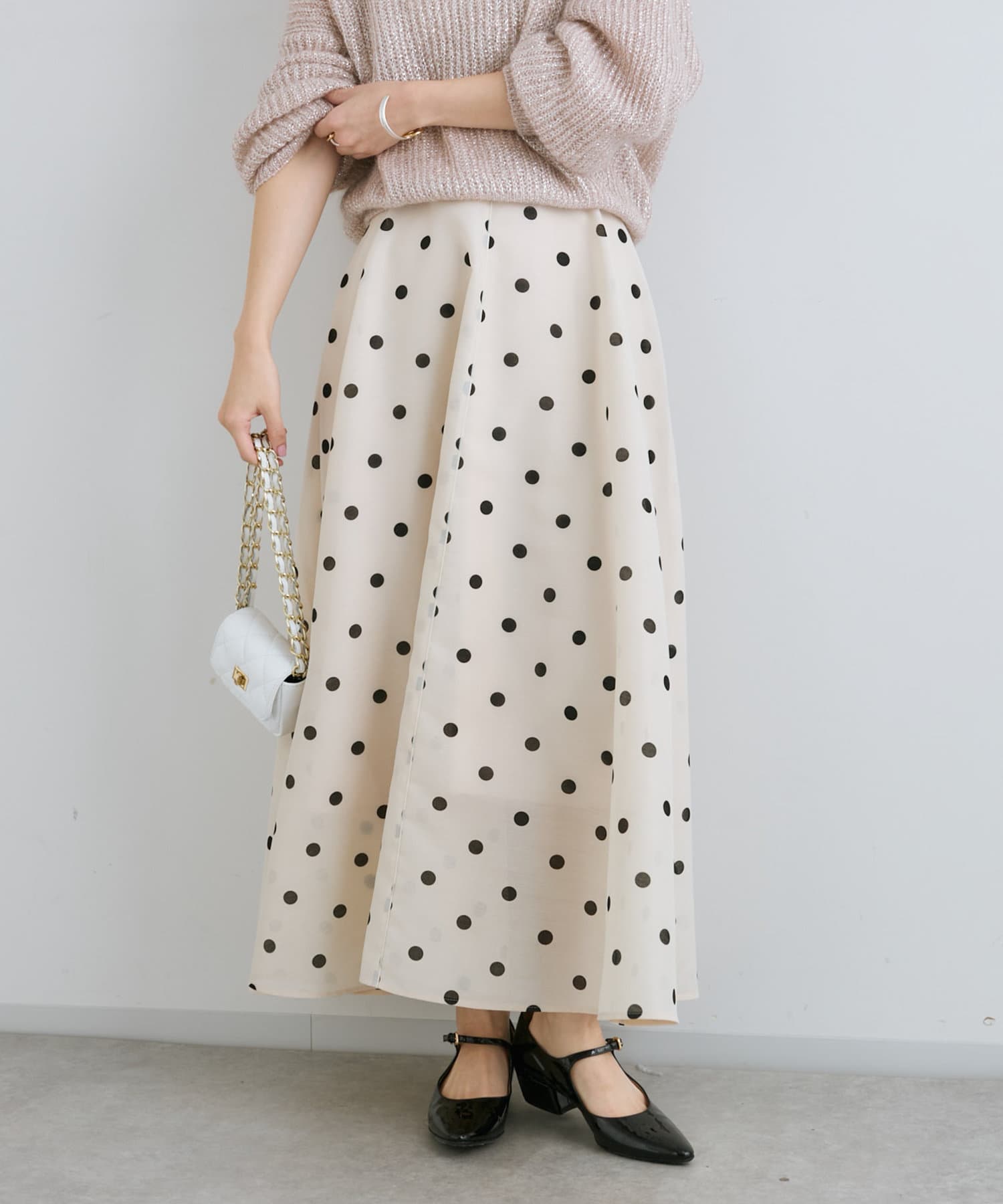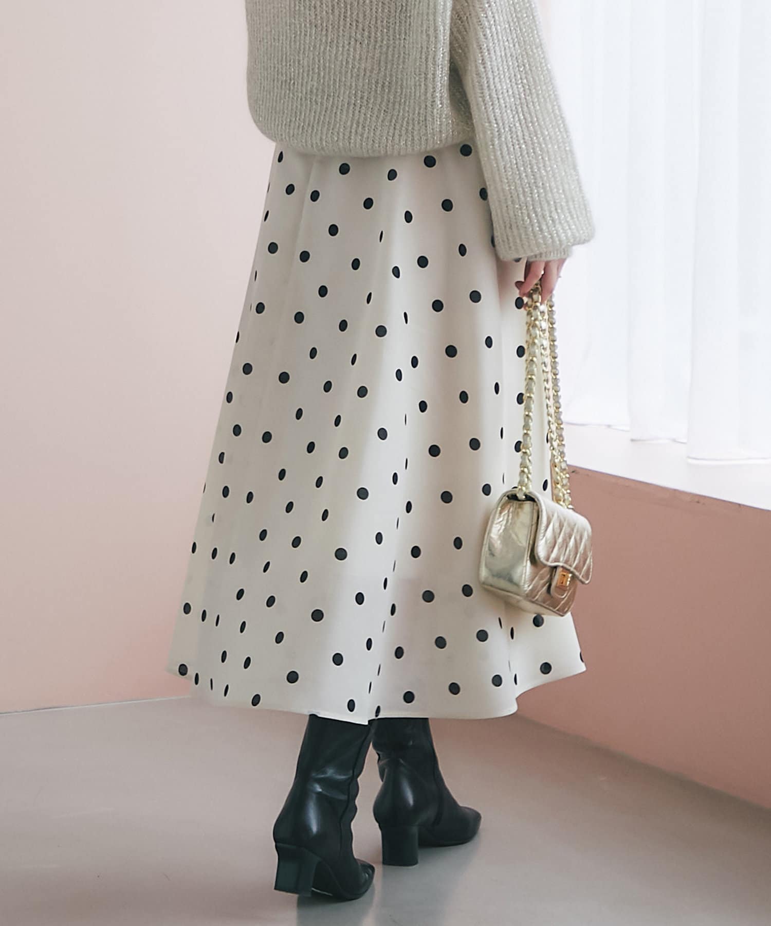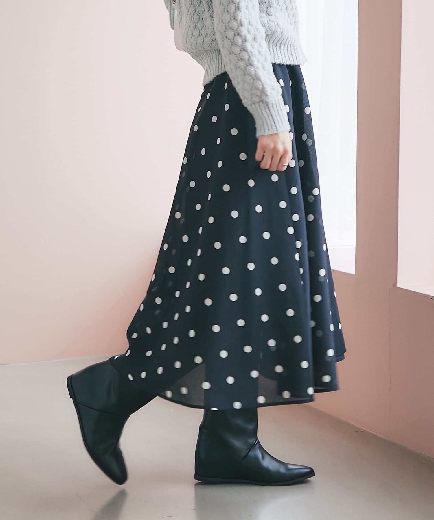 大人も素敵に着こなせる甘さを抑えたドット柄のスカートです。