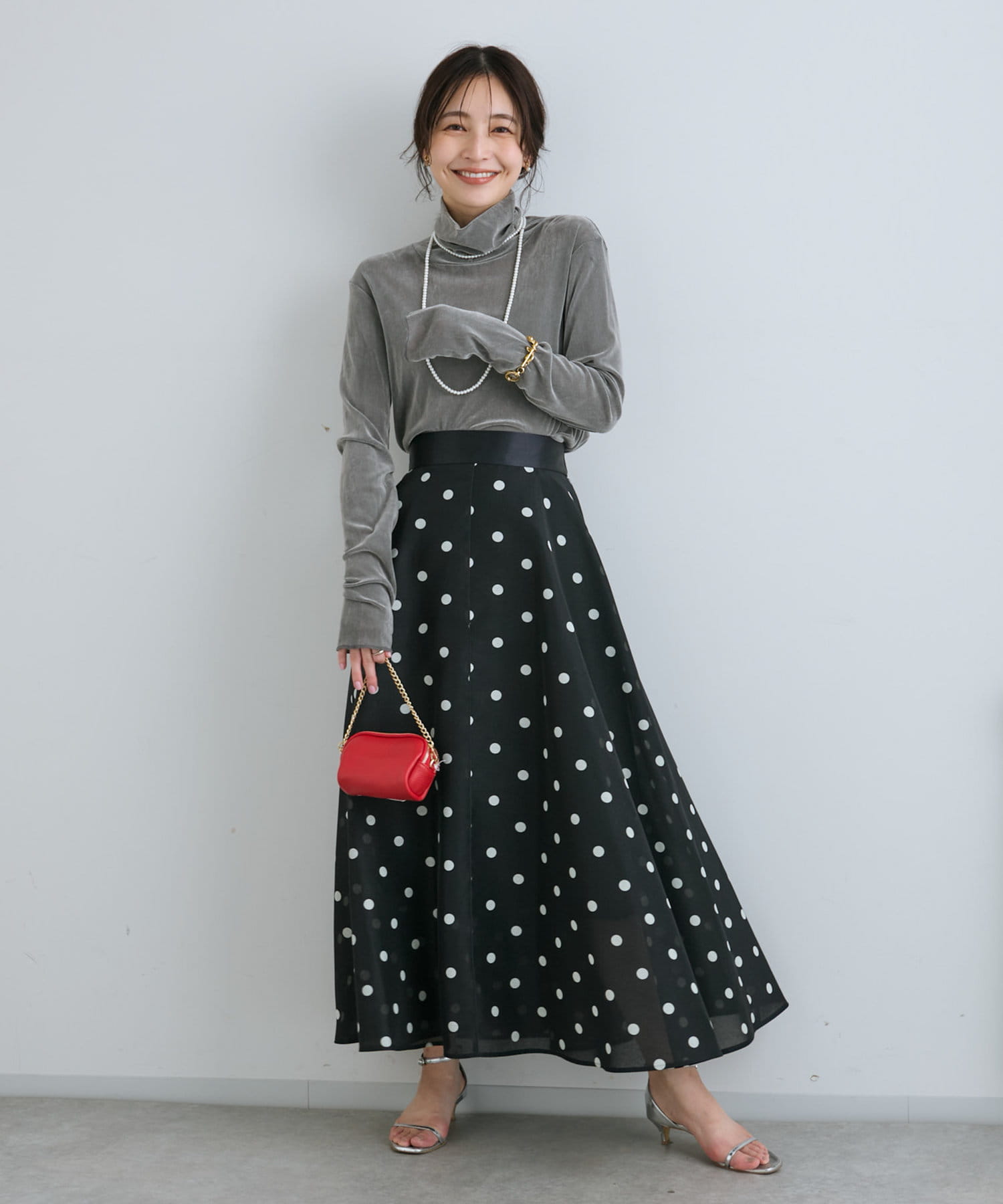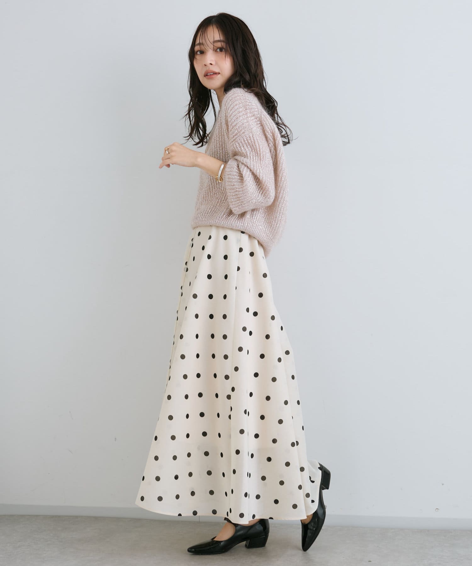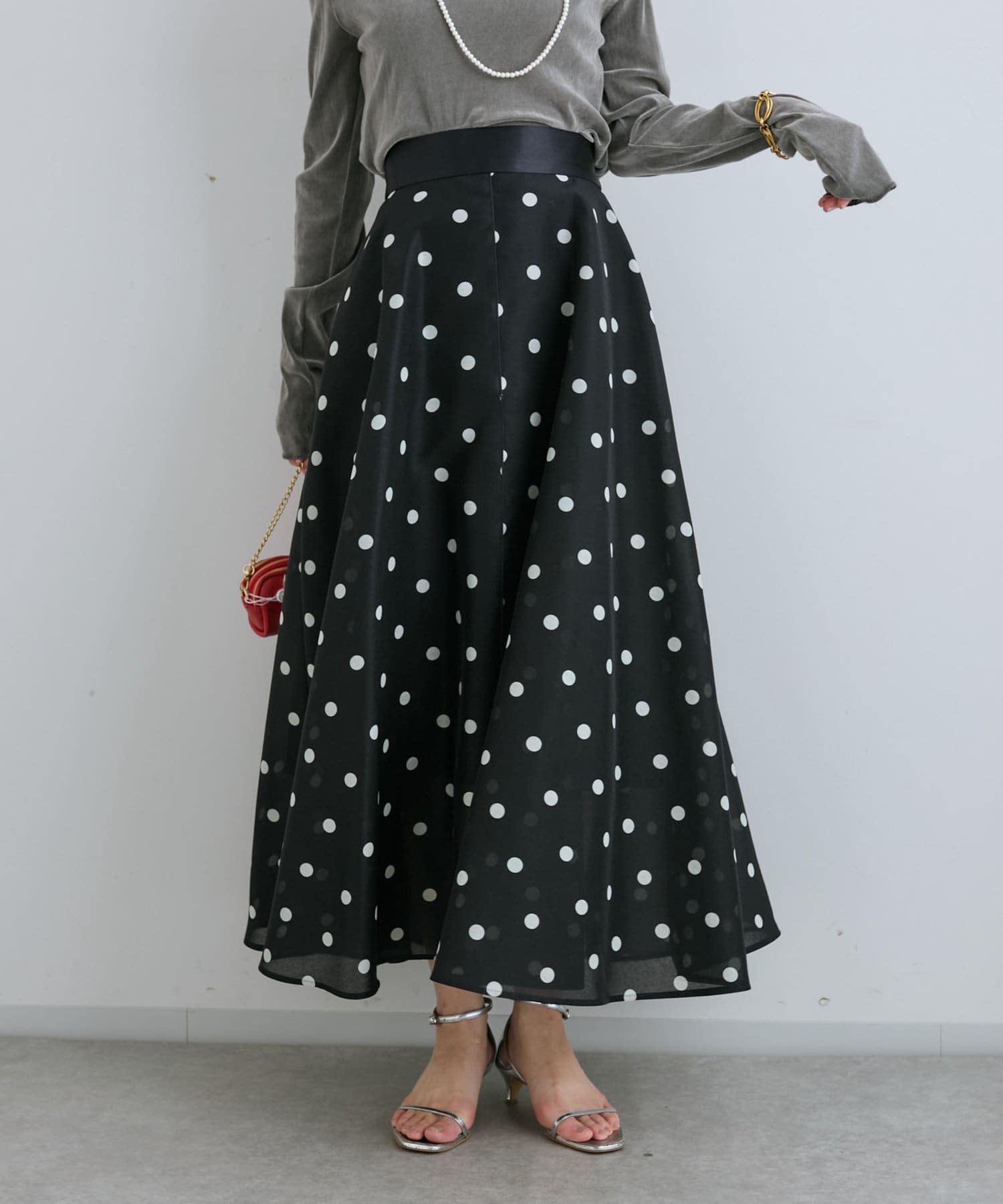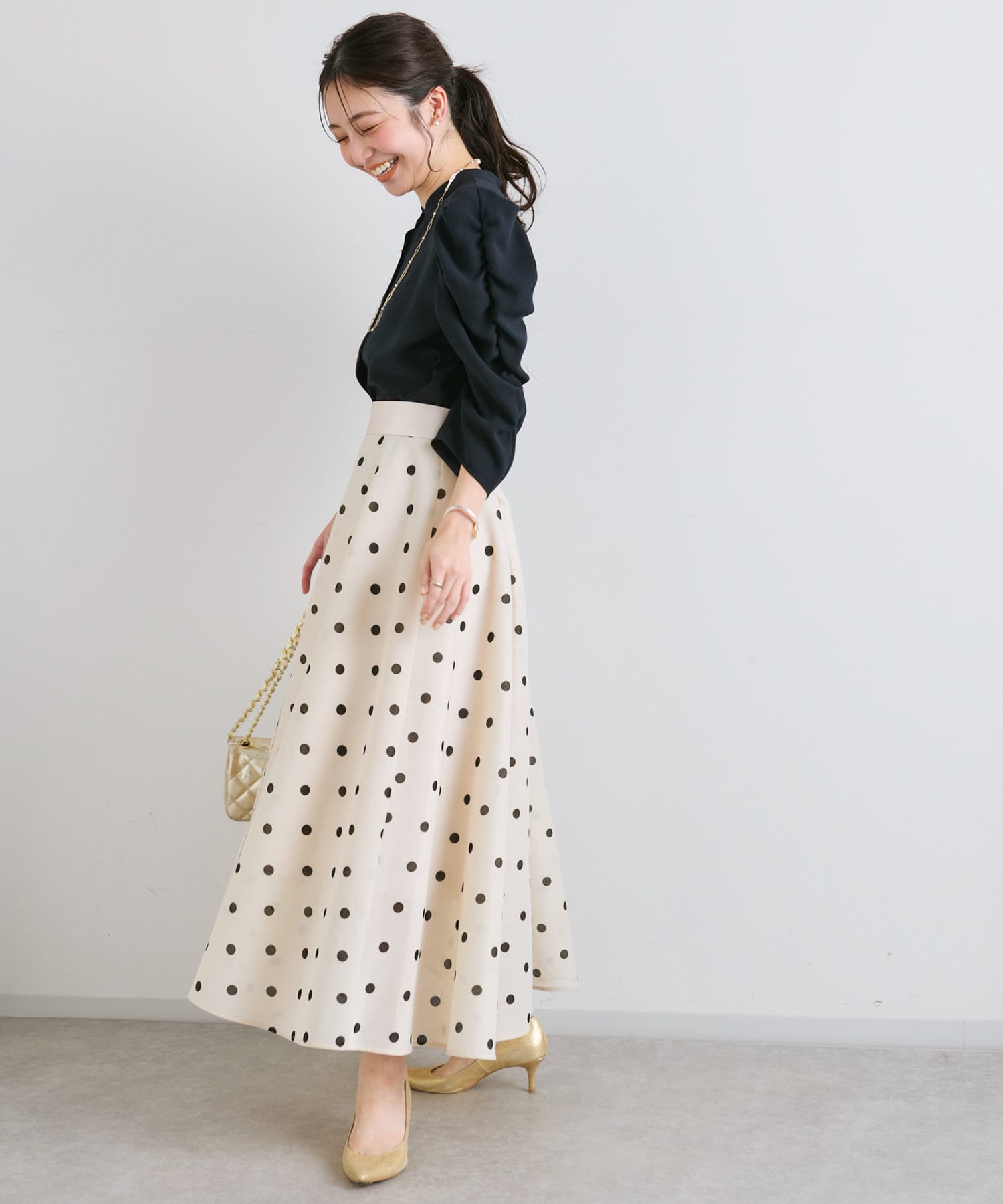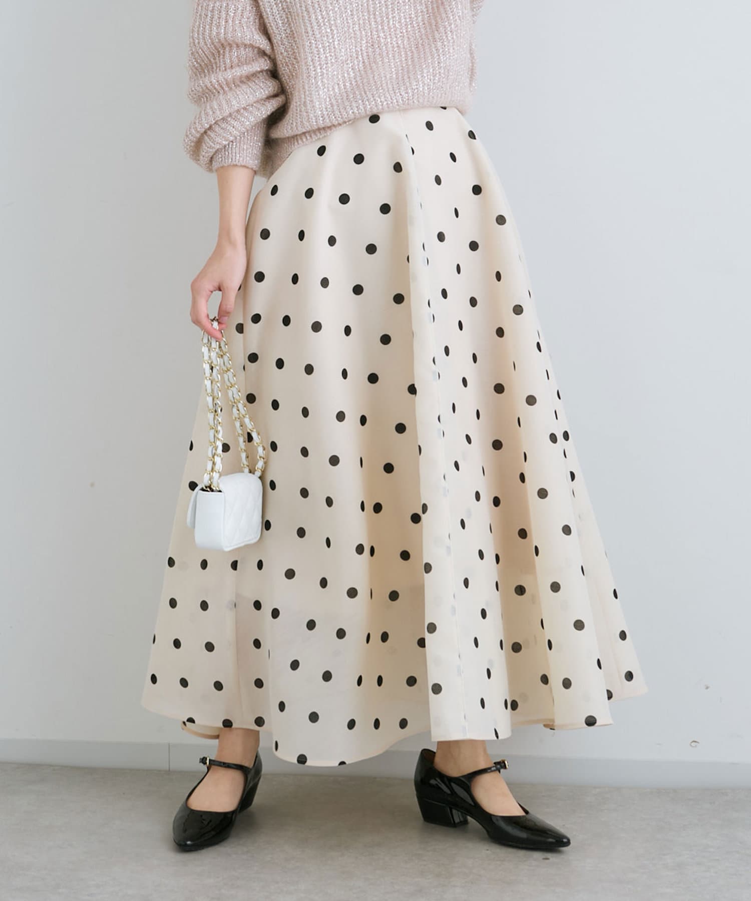 大人も素敵に着こなせる甘さを抑えたドット柄のスカートです。