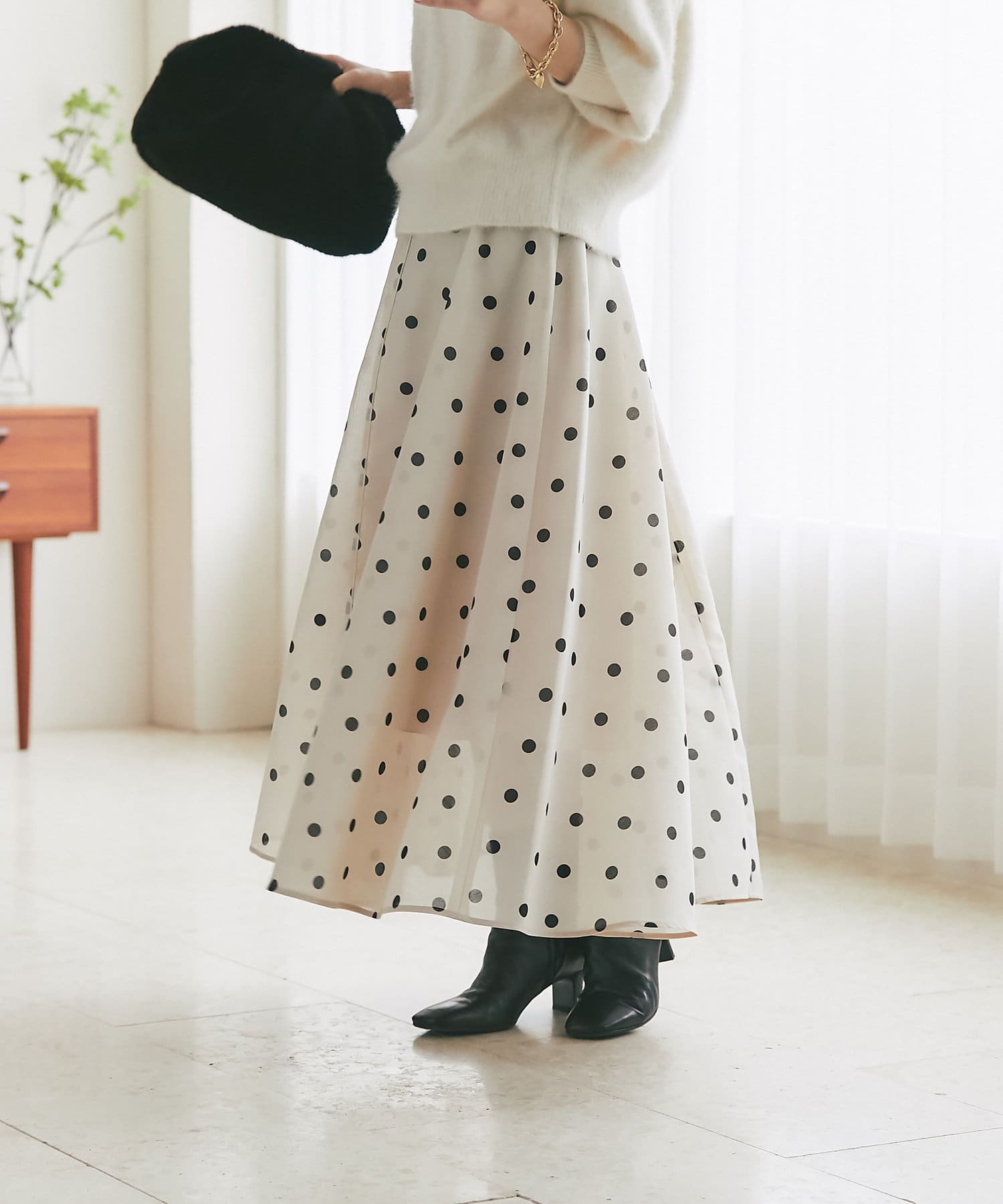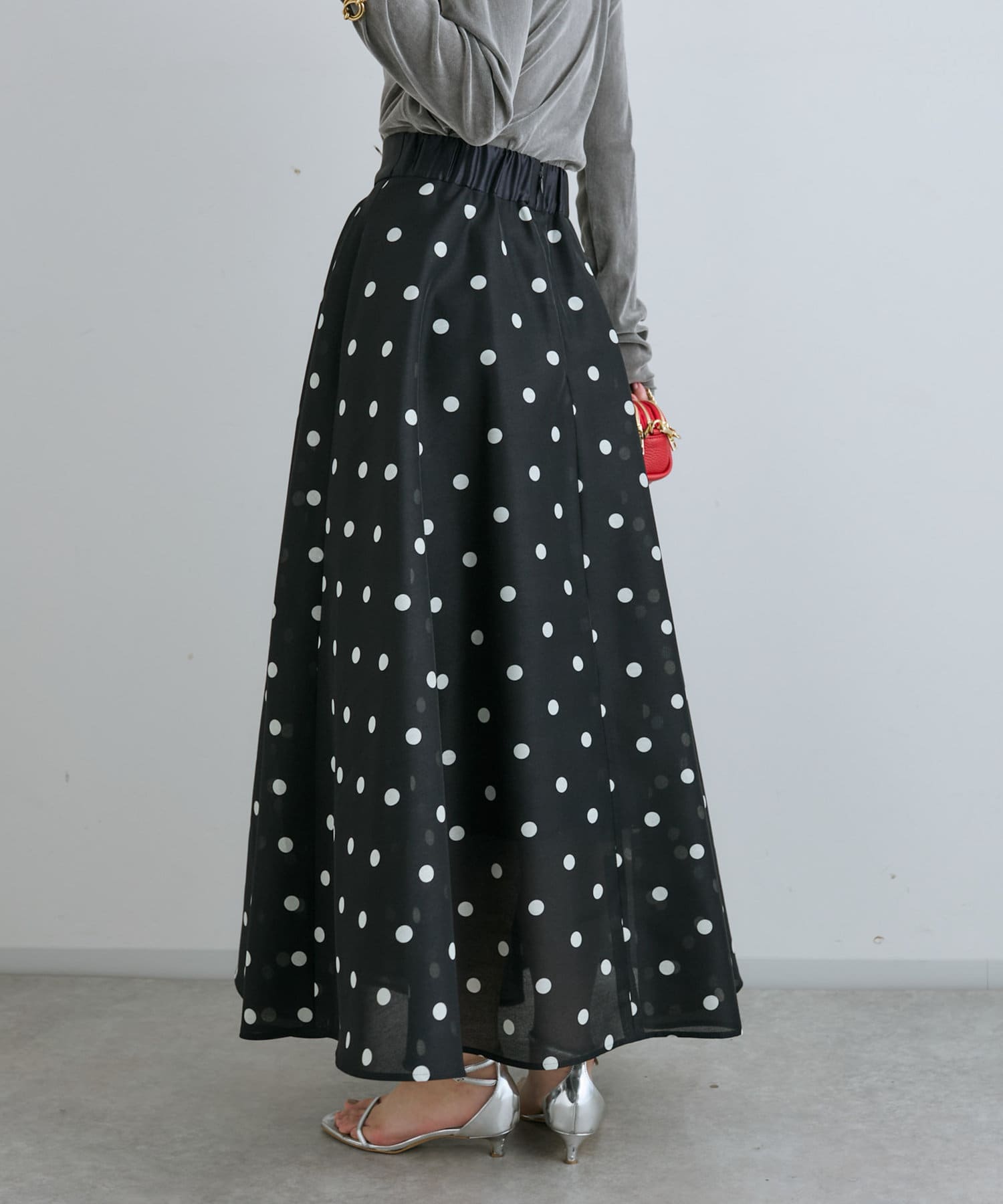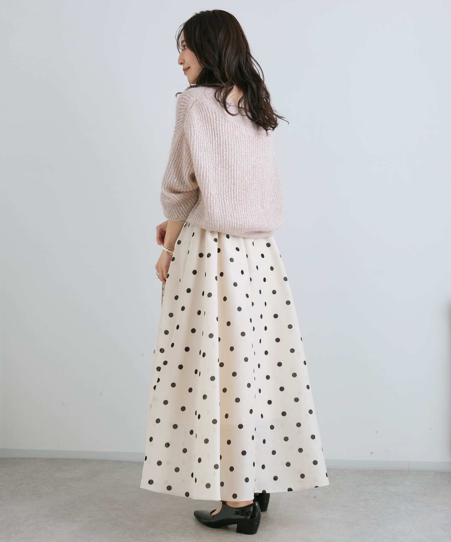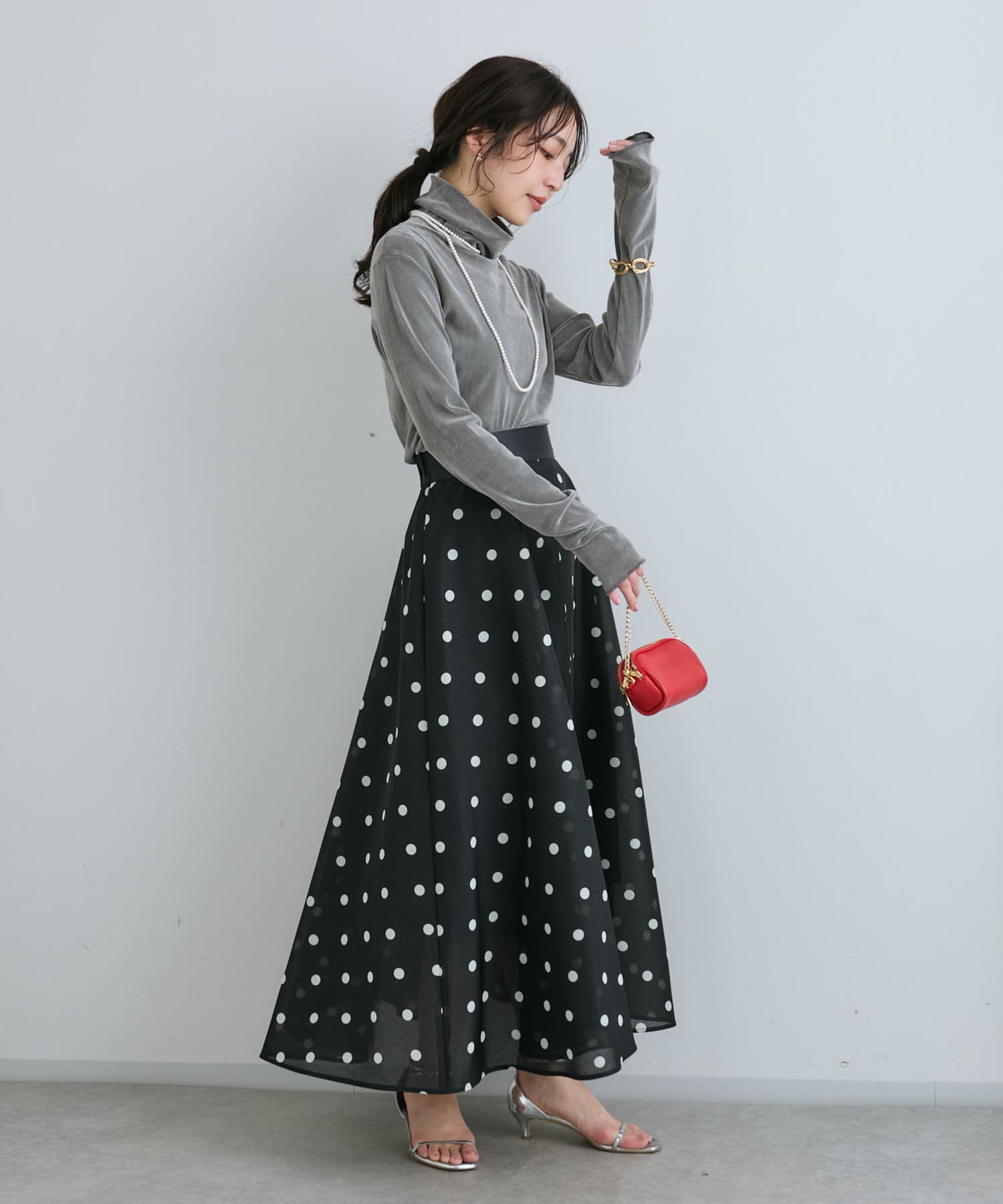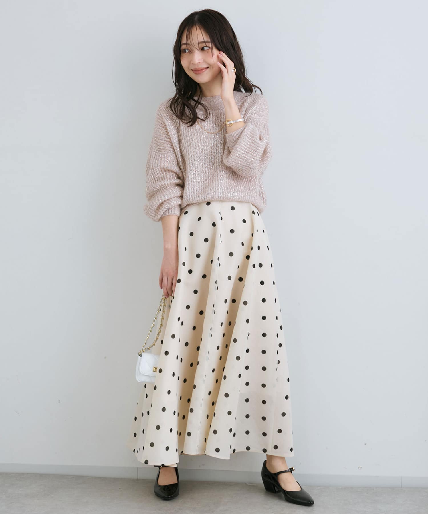 大人も素敵に着こなせる甘さを抑えたドット柄のスカートです。