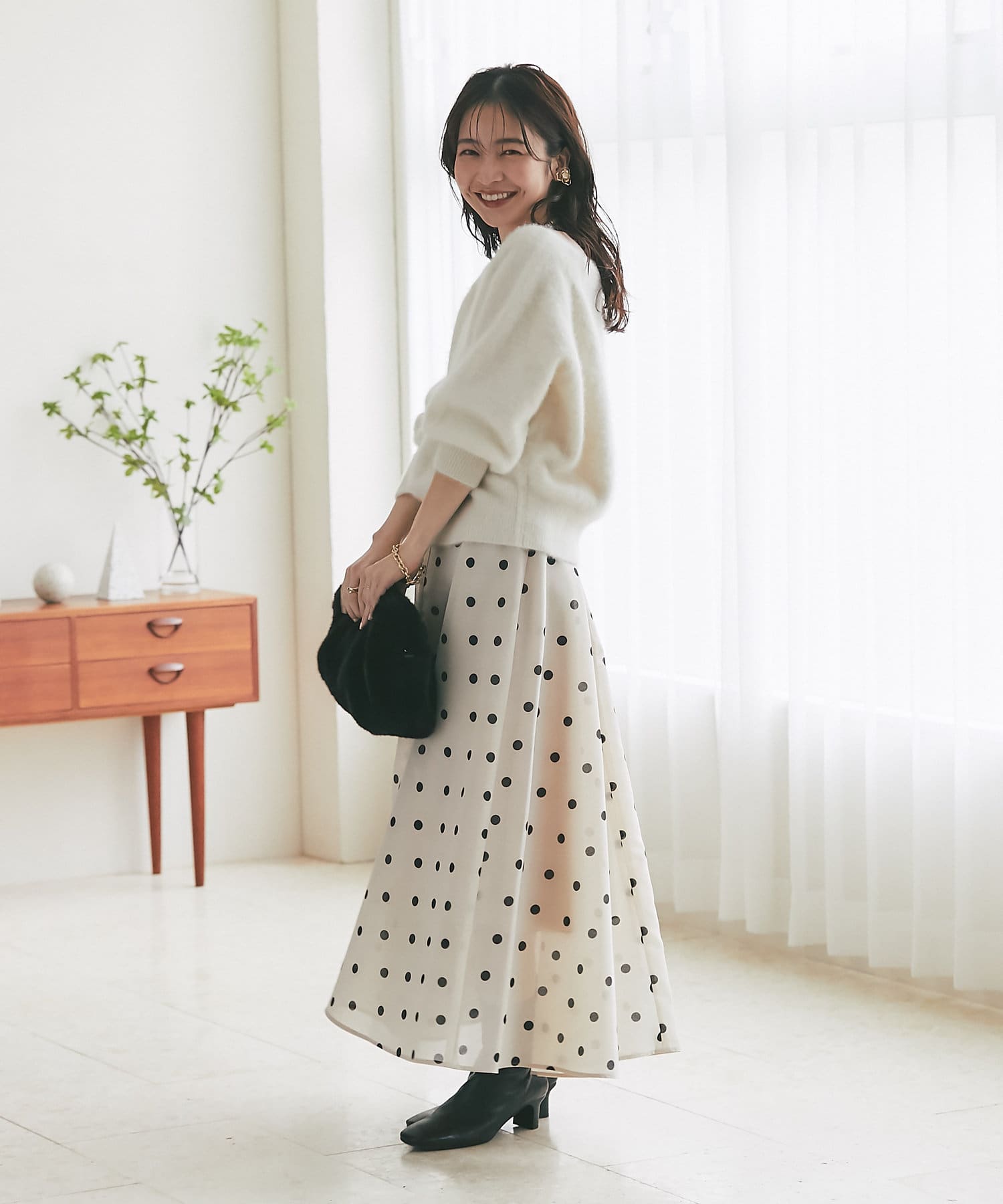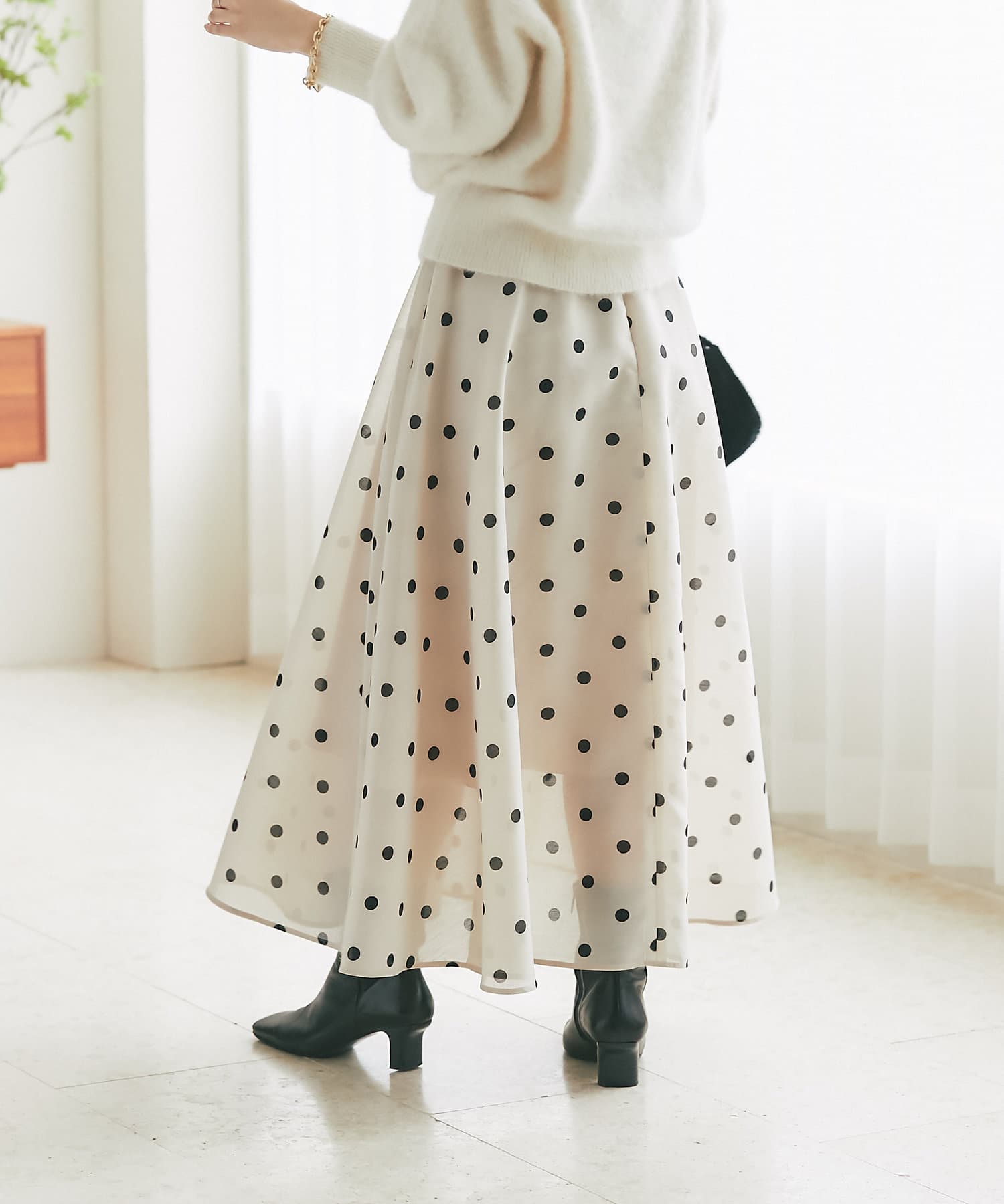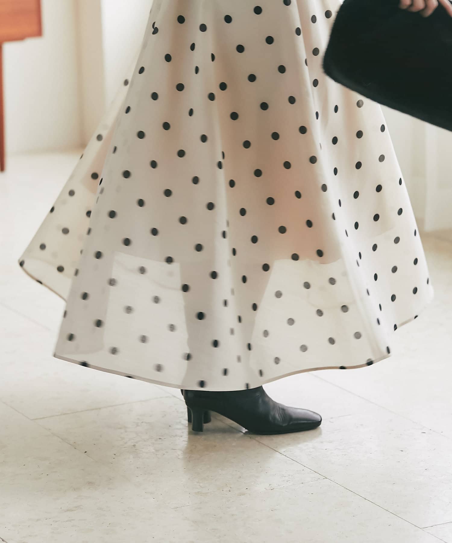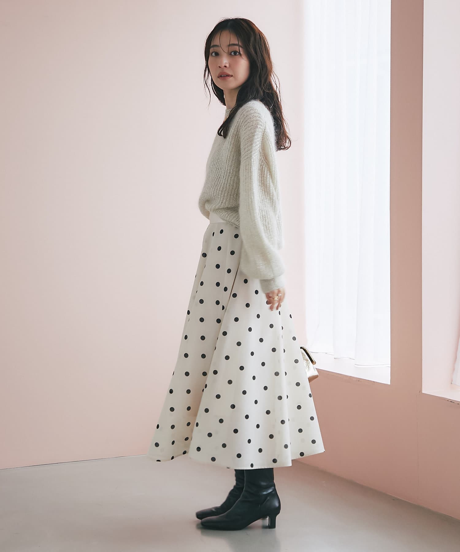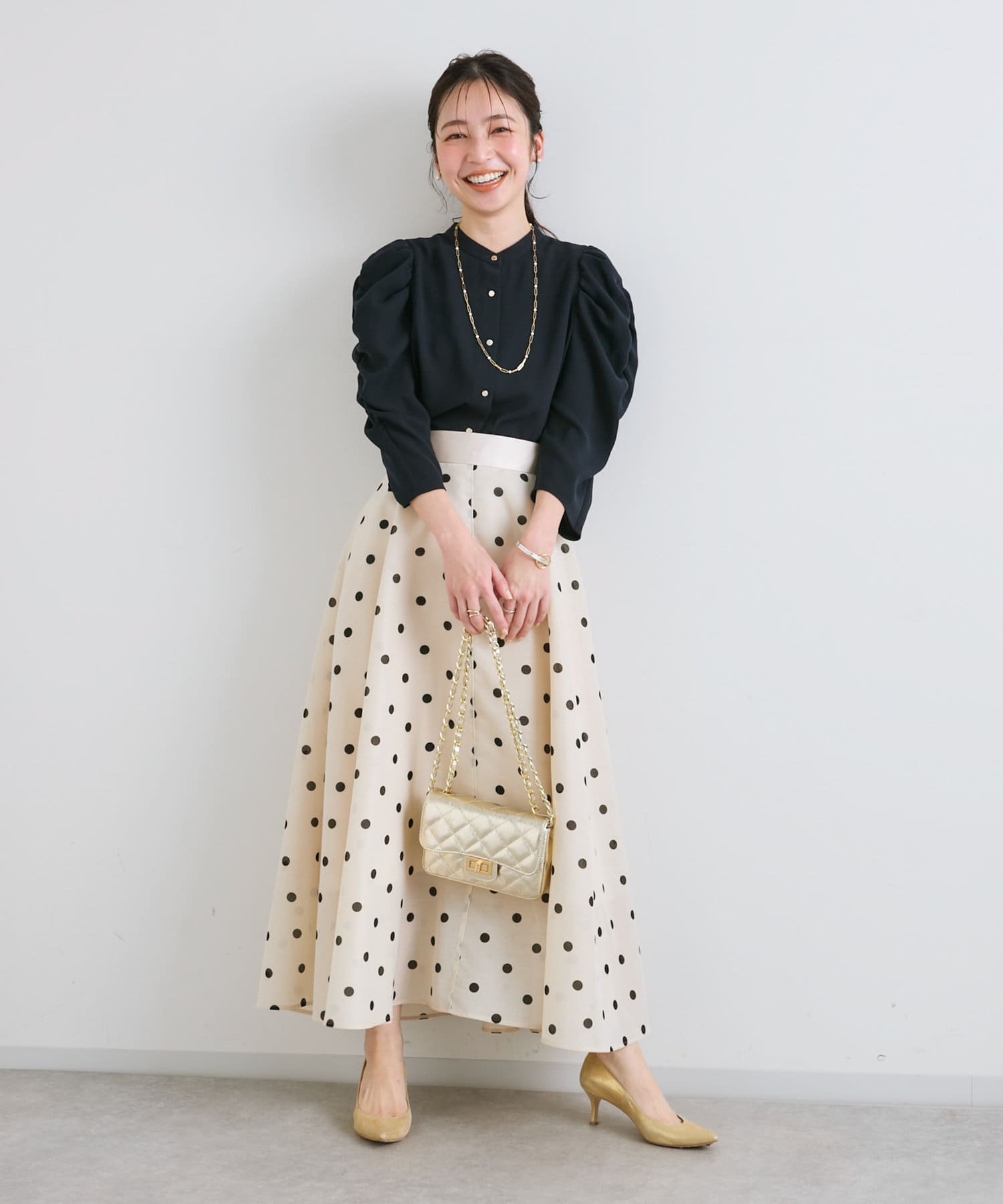 大人も素敵に着こなせる甘さを抑えたドット柄のスカートです。