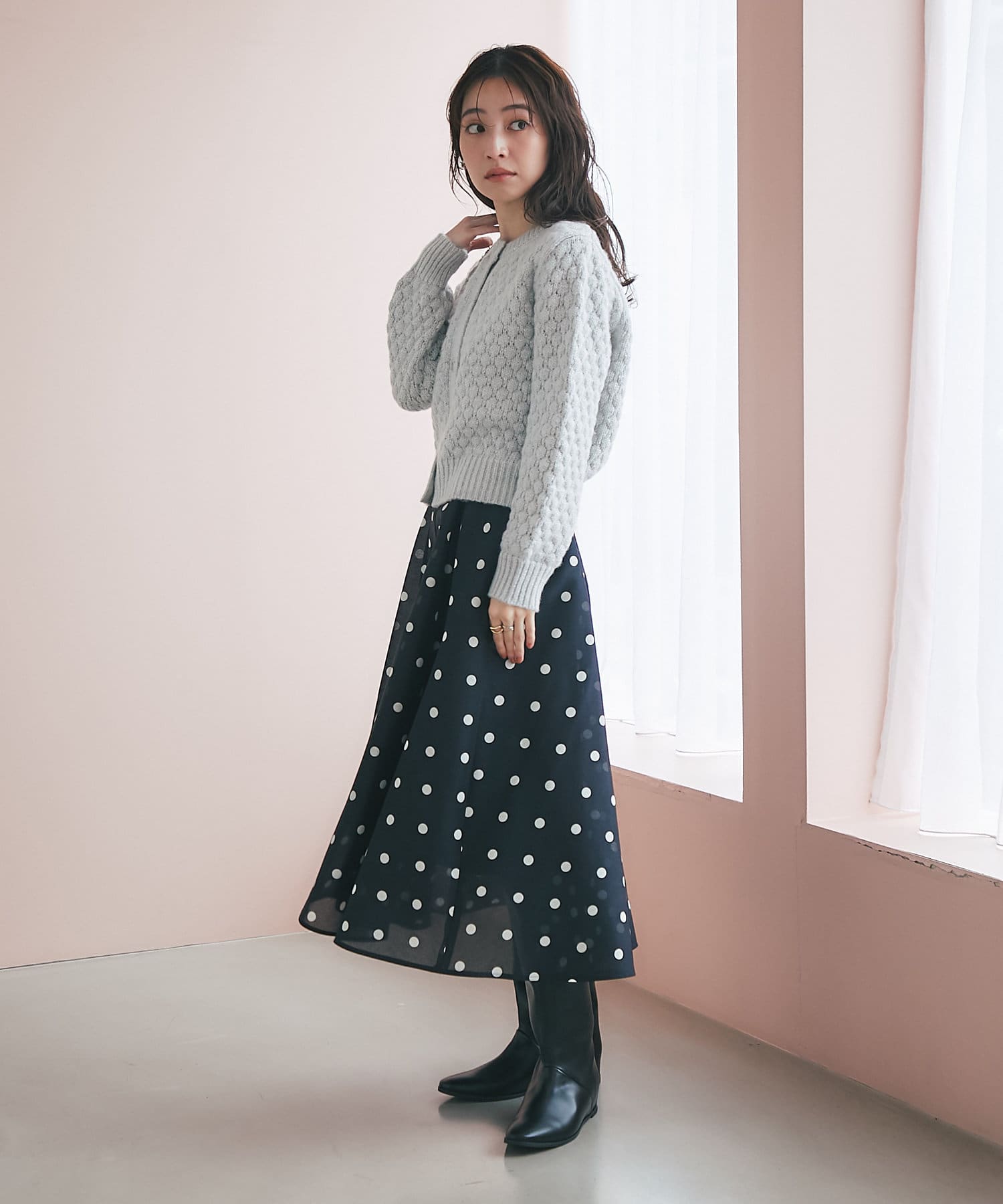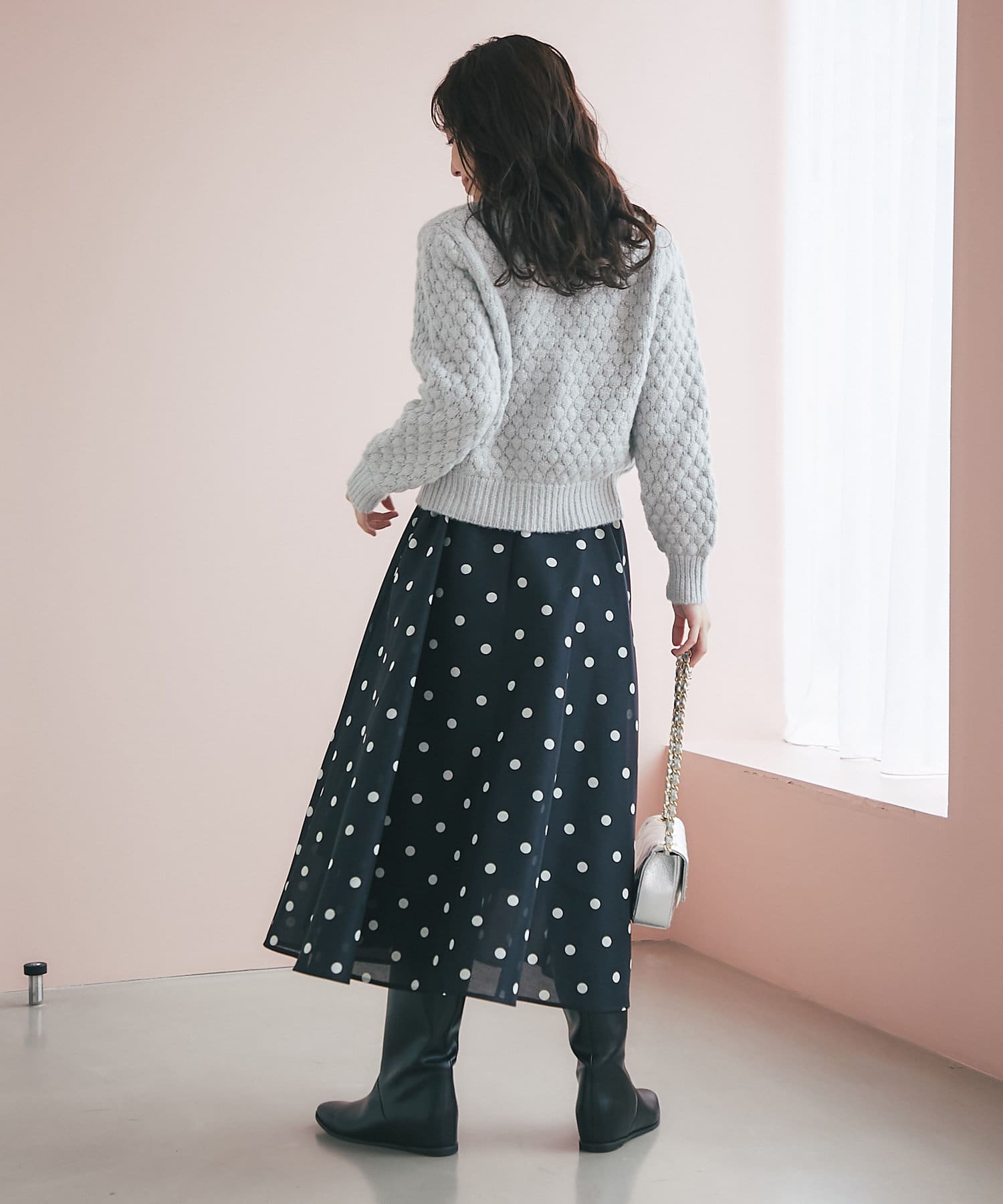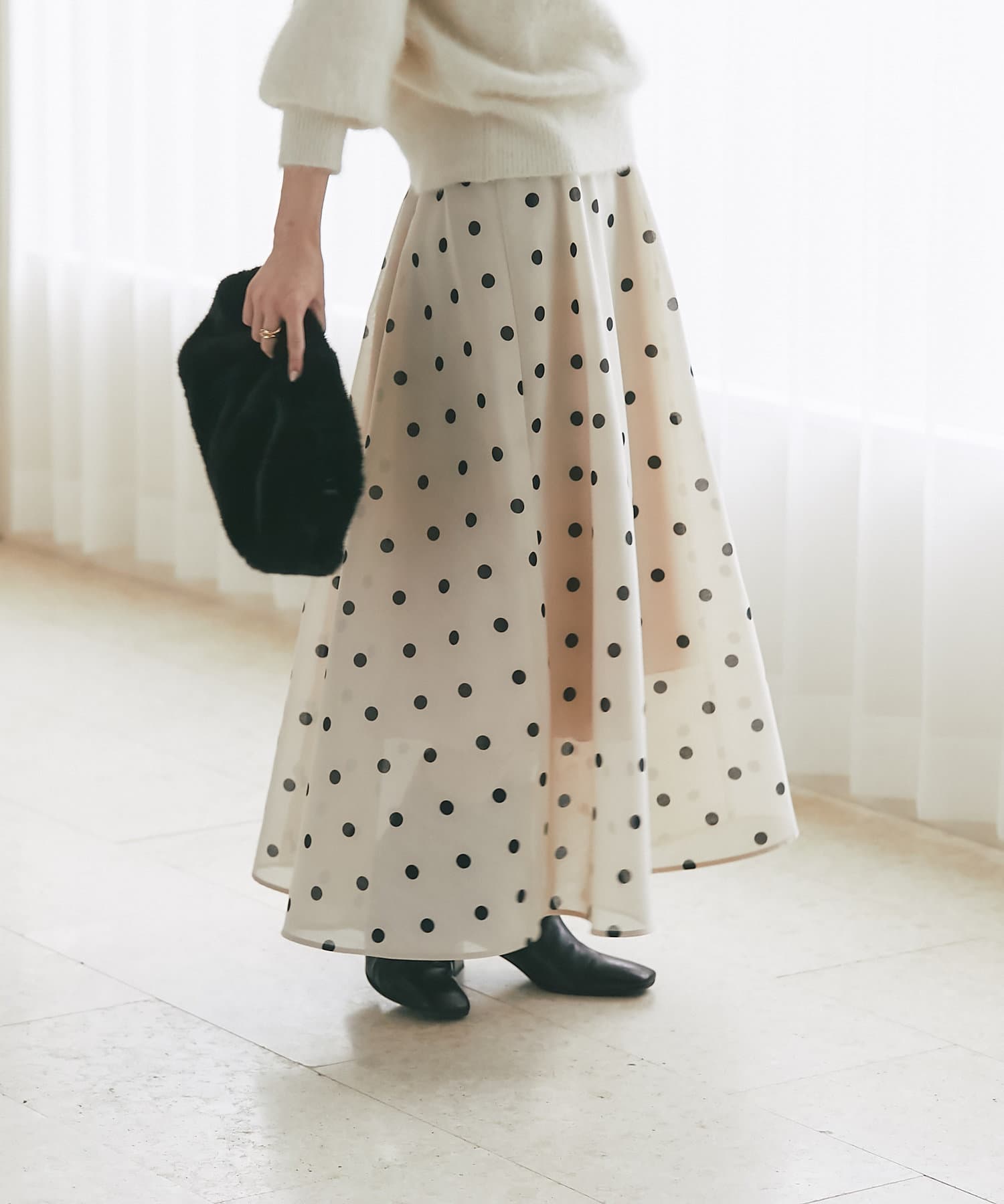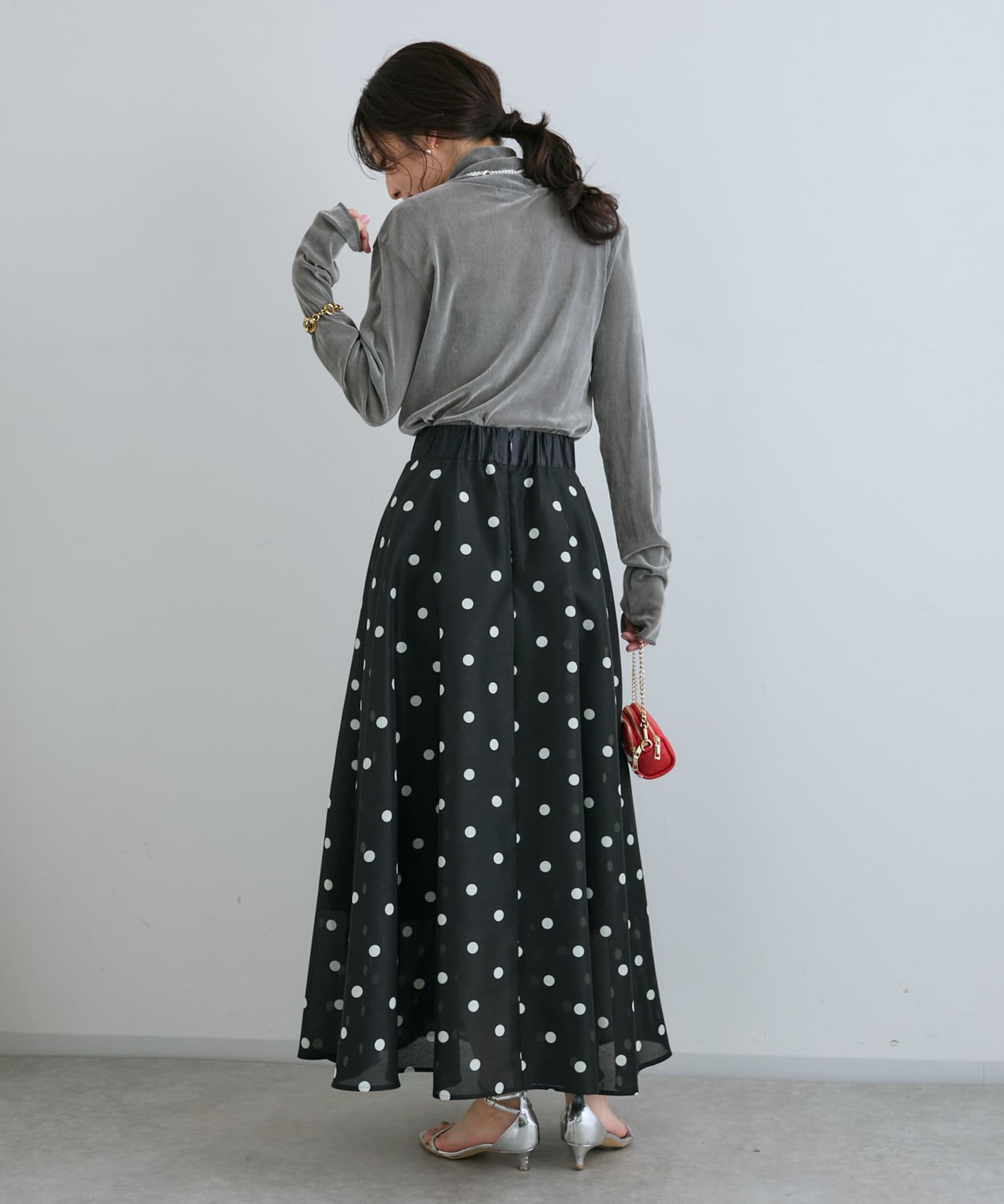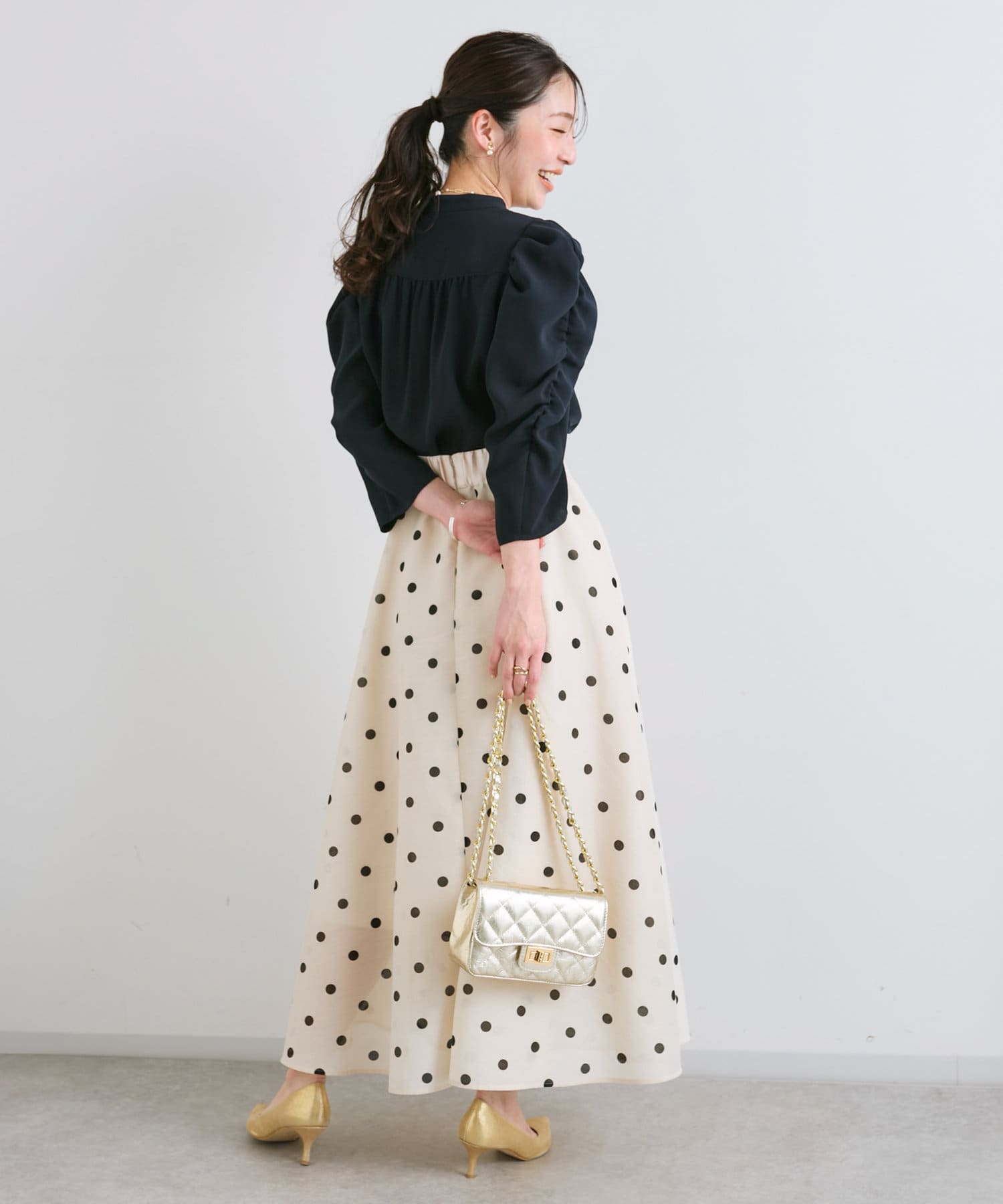 大人も素敵に着こなせる甘さを抑えたドット柄のスカートです。
