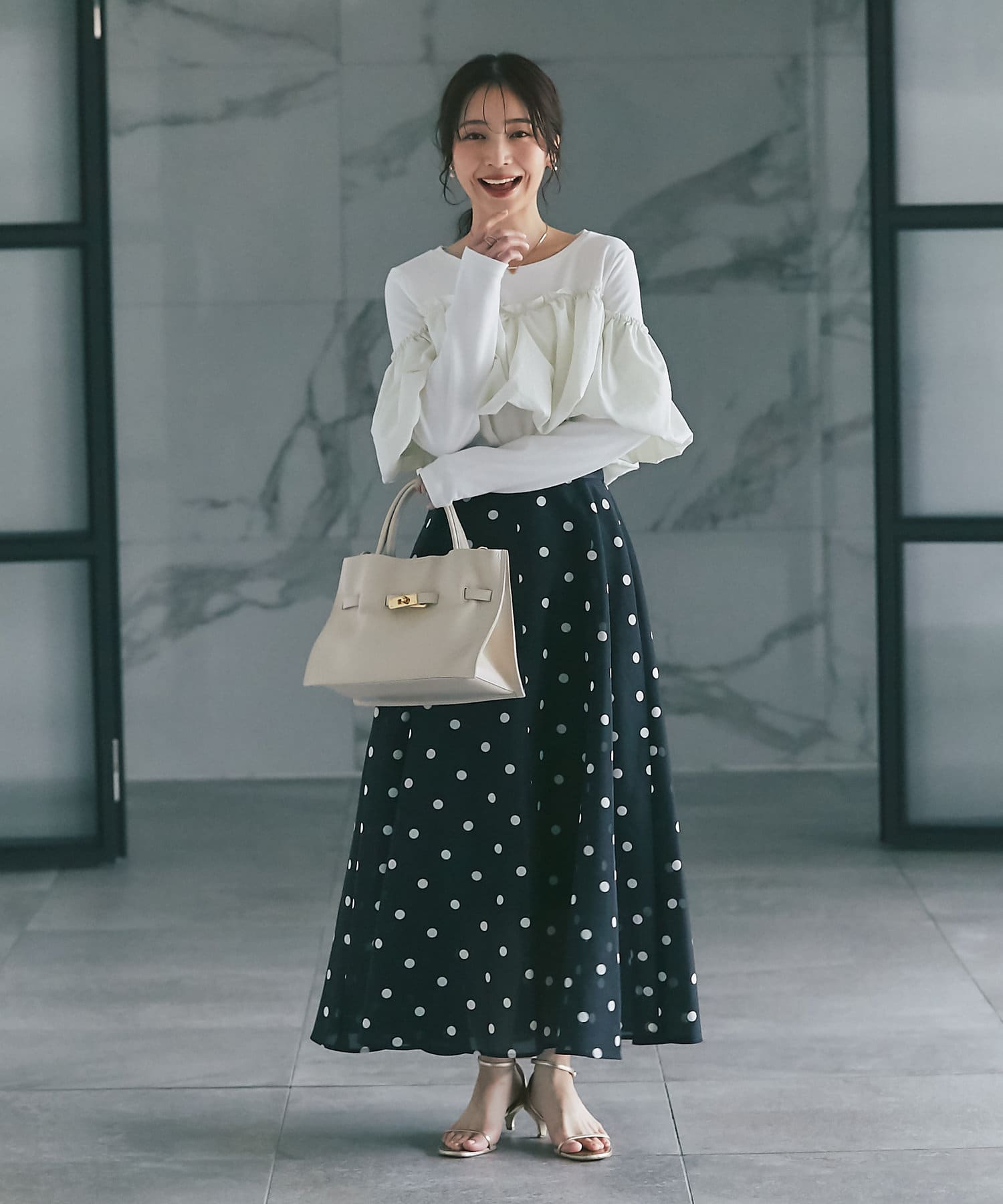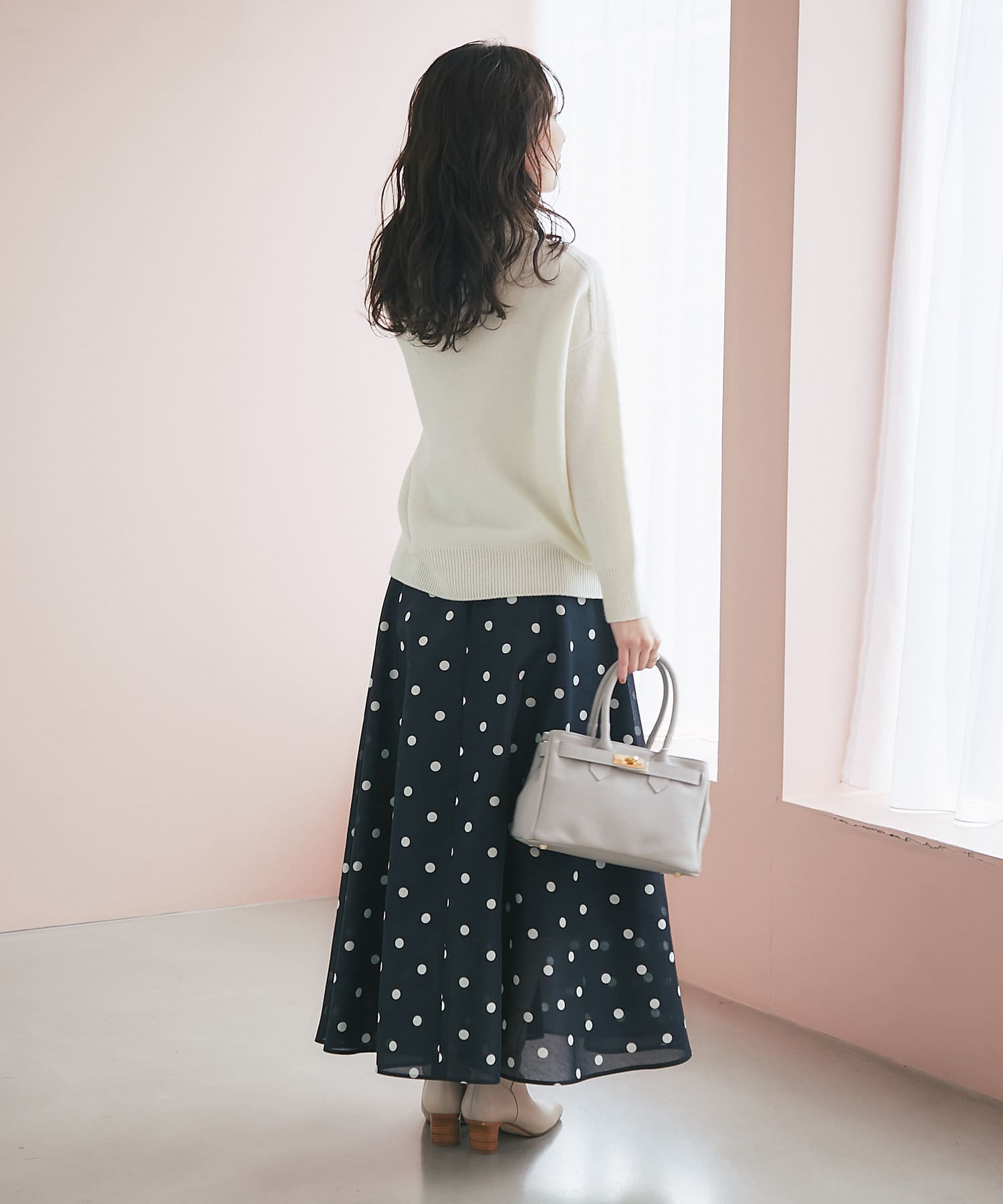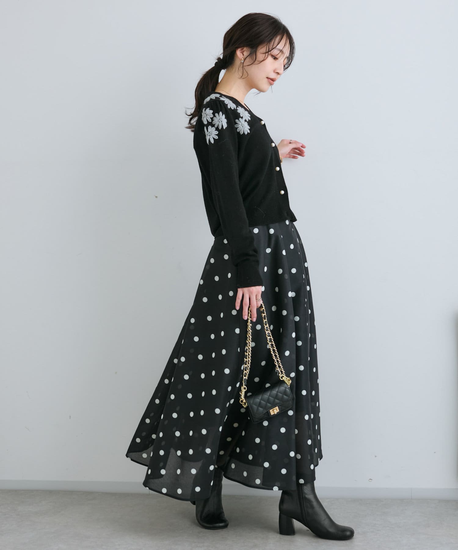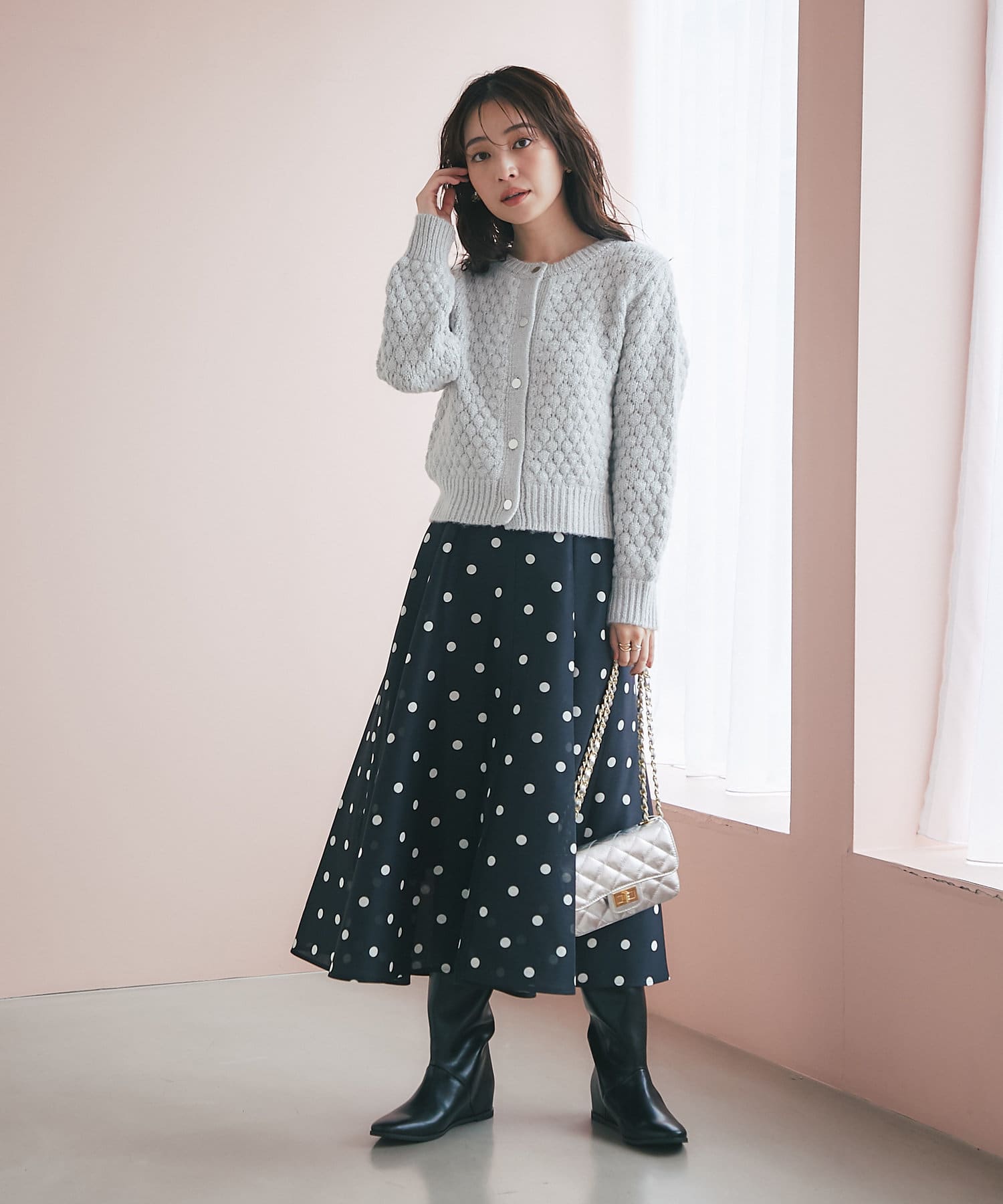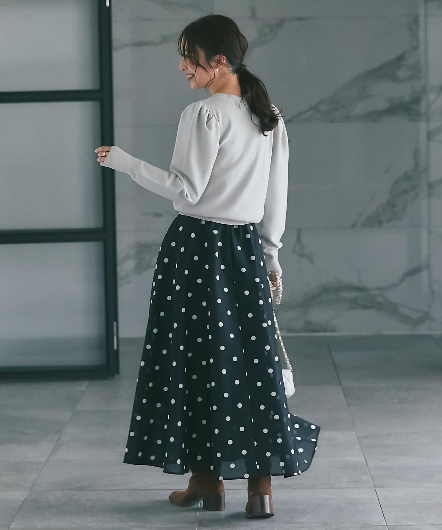 大人も素敵に着こなせる甘さを抑えたドット柄のスカートです。