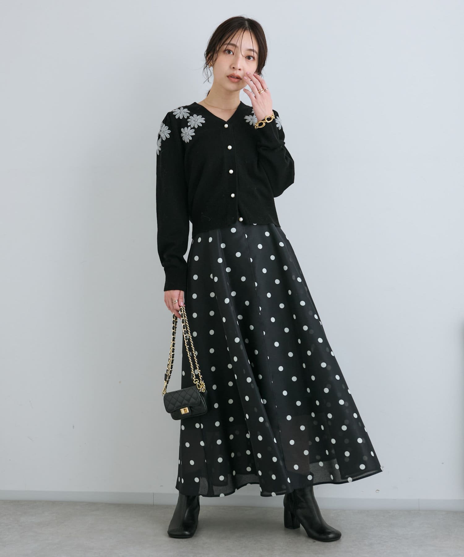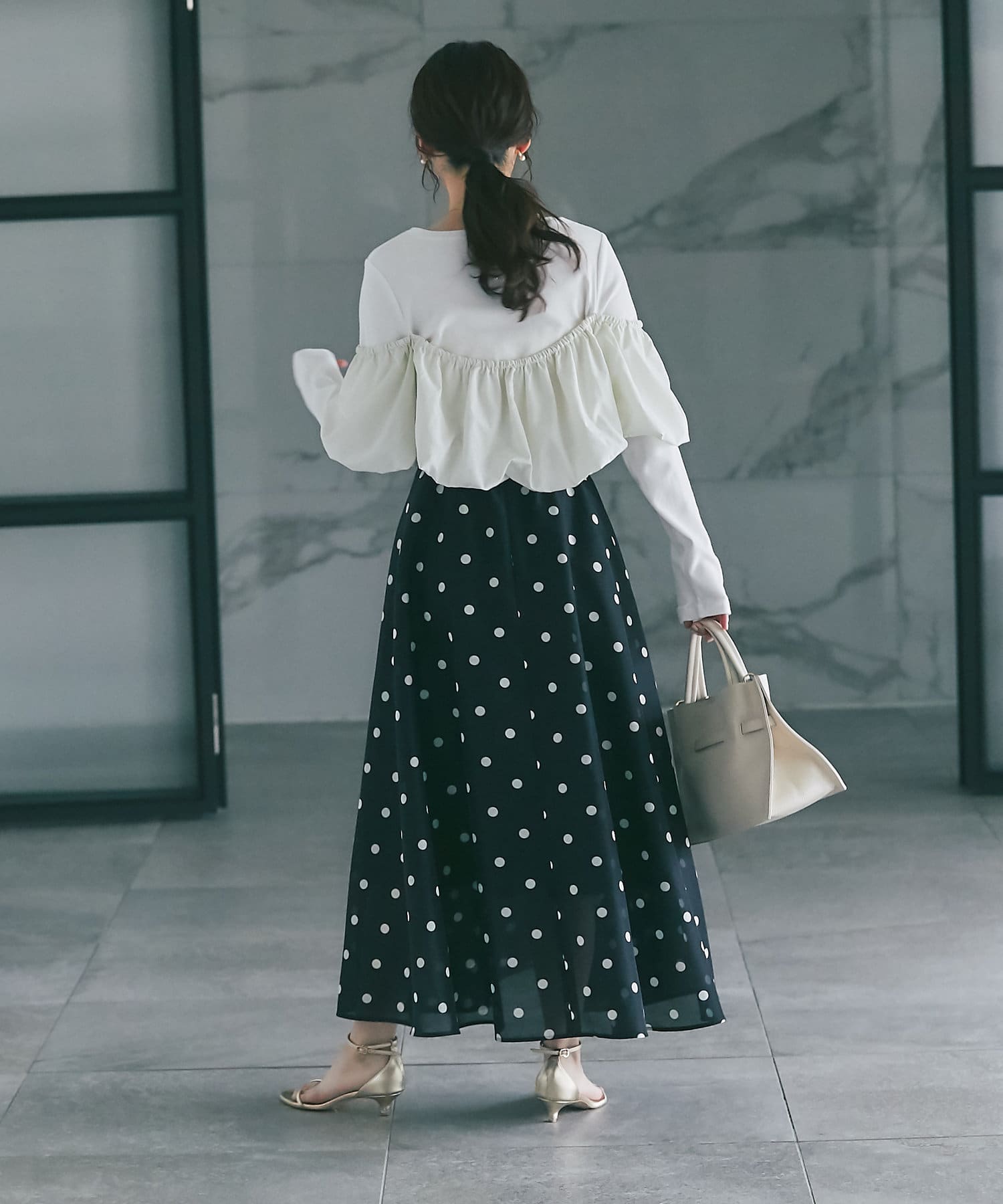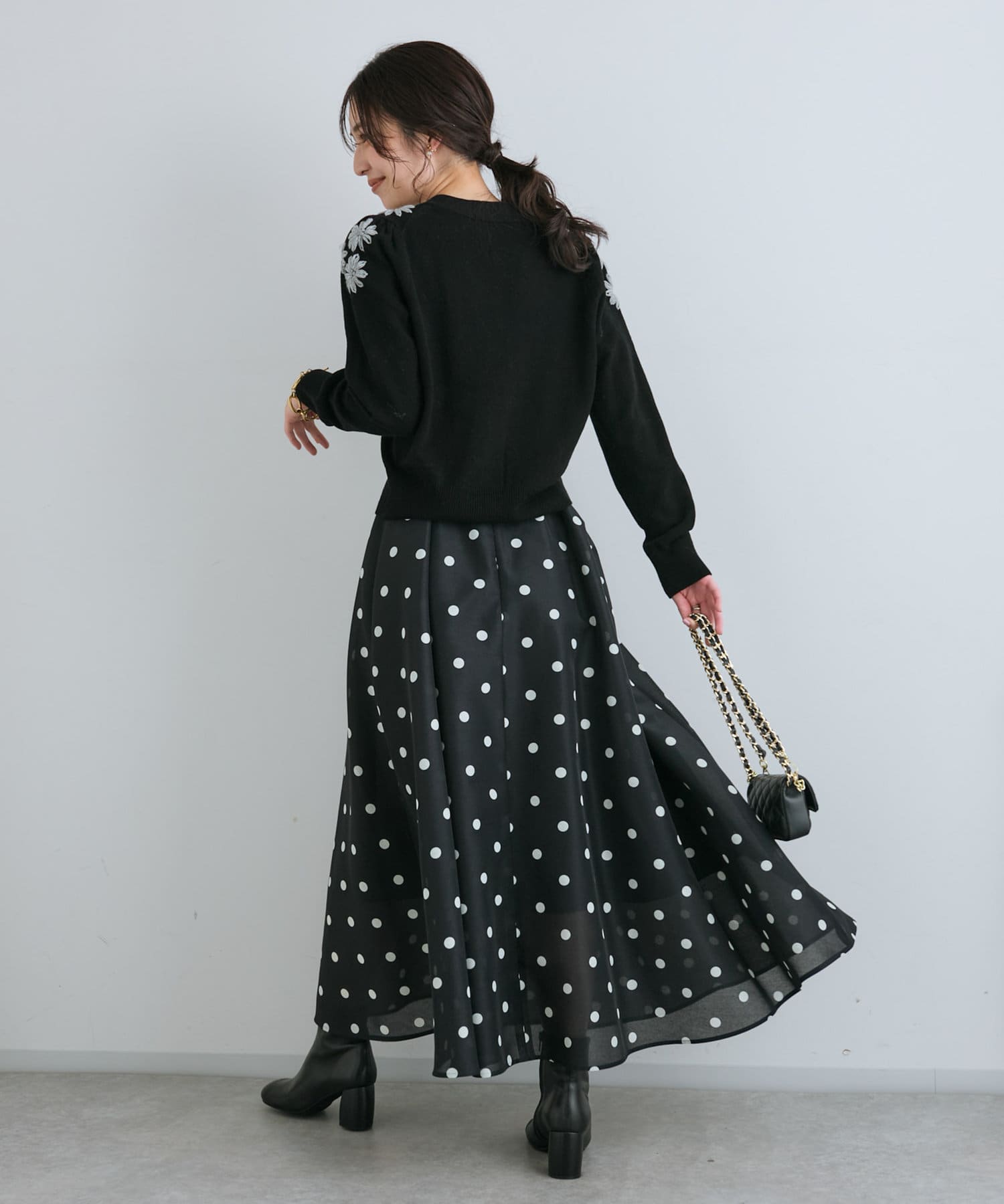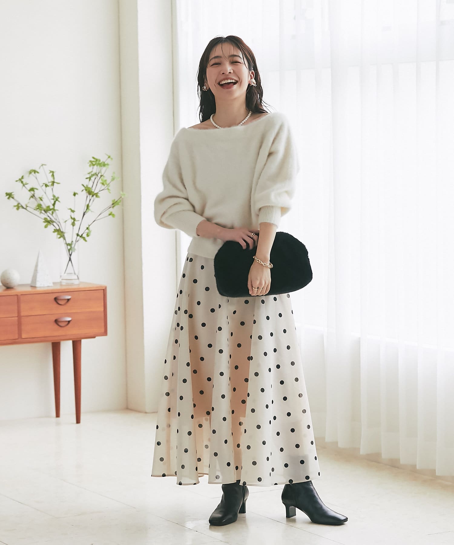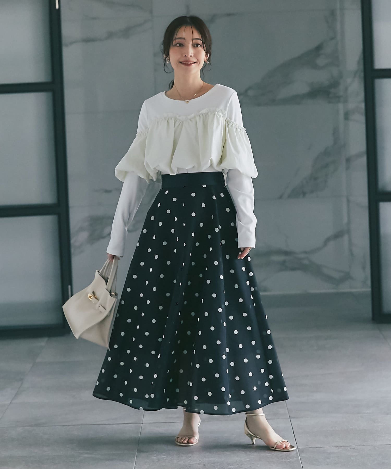 大人も素敵に着こなせる甘さを抑えたドット柄のスカートです。