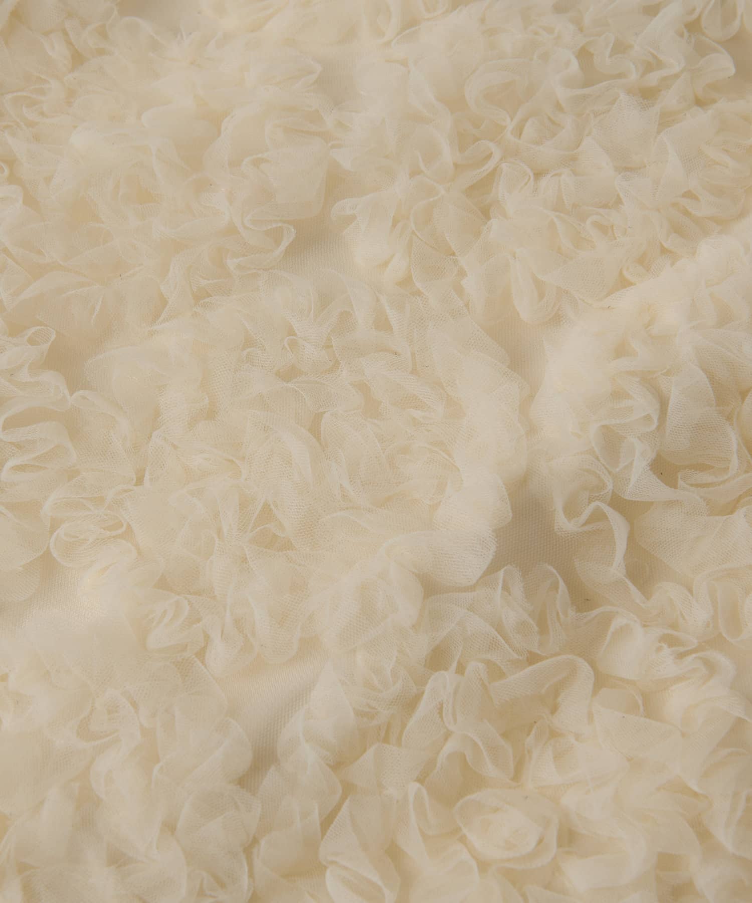 フリルのチュールをお花のように丸く縫い付けた生地がとても華やか。