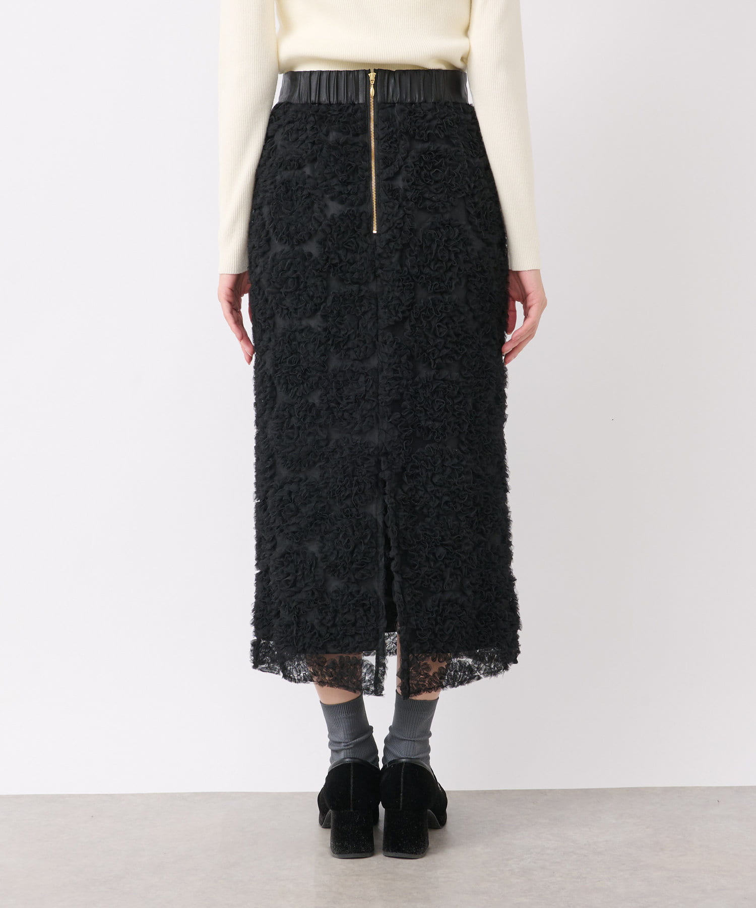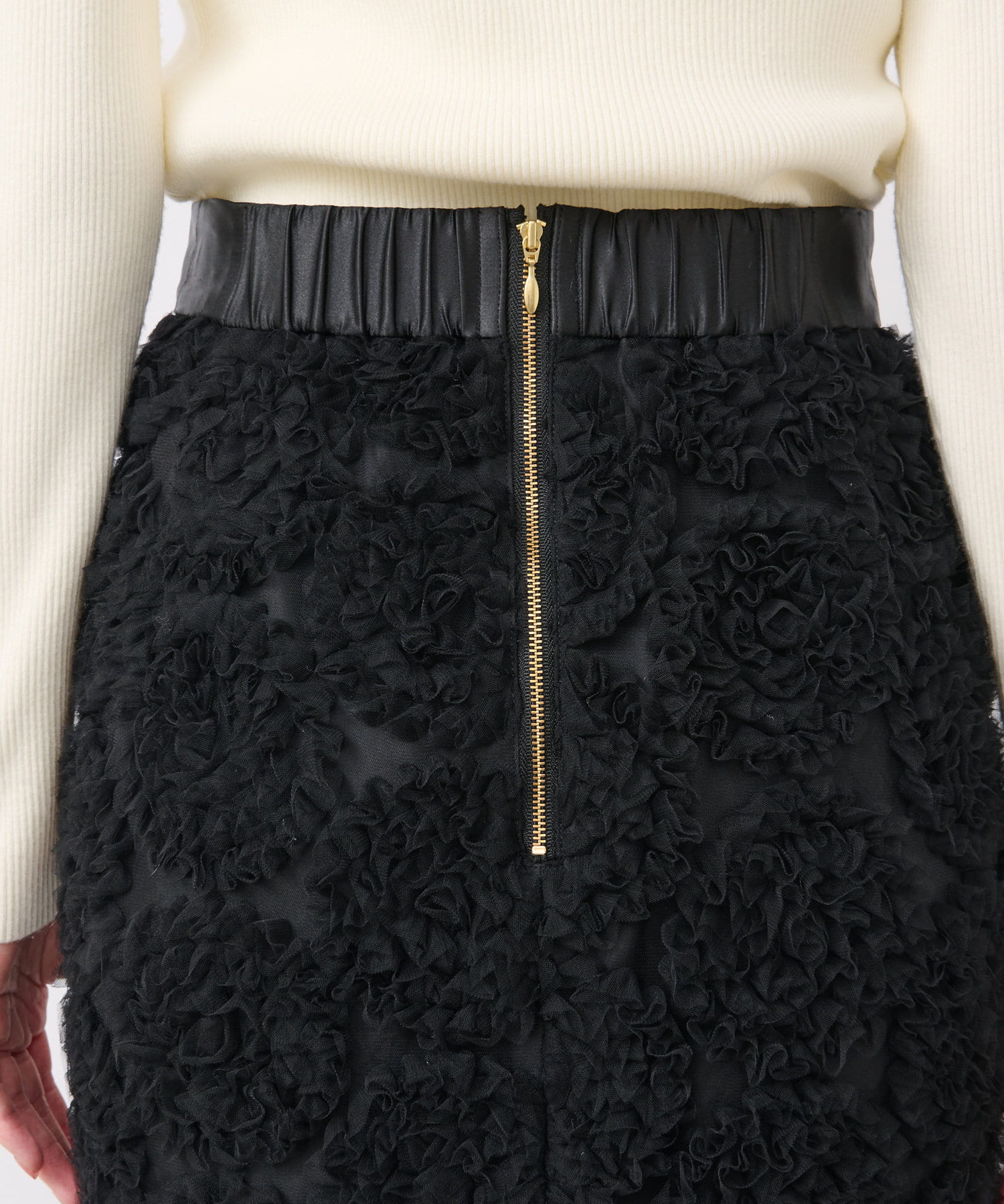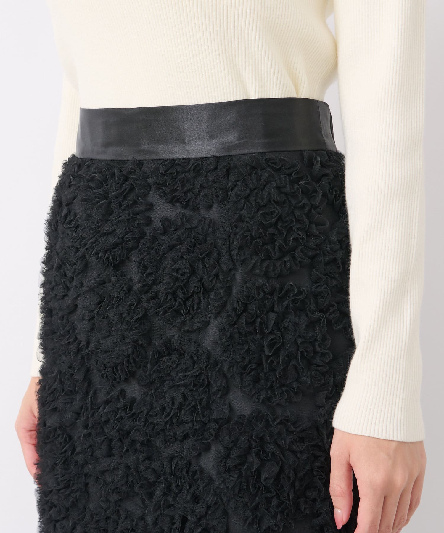 華やかなチュールが存在感のあるナロースカート