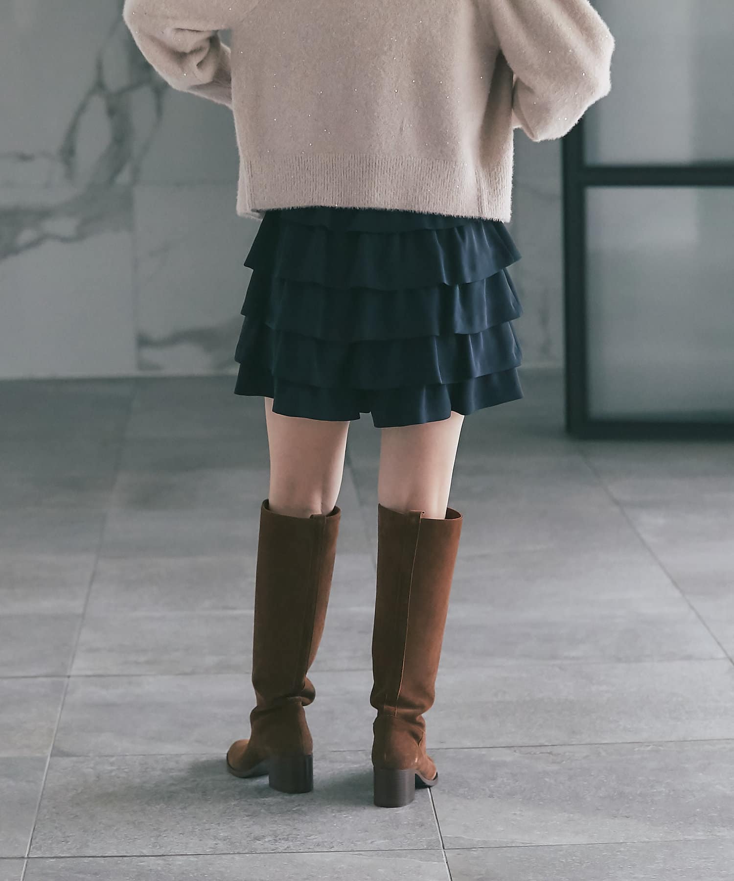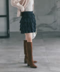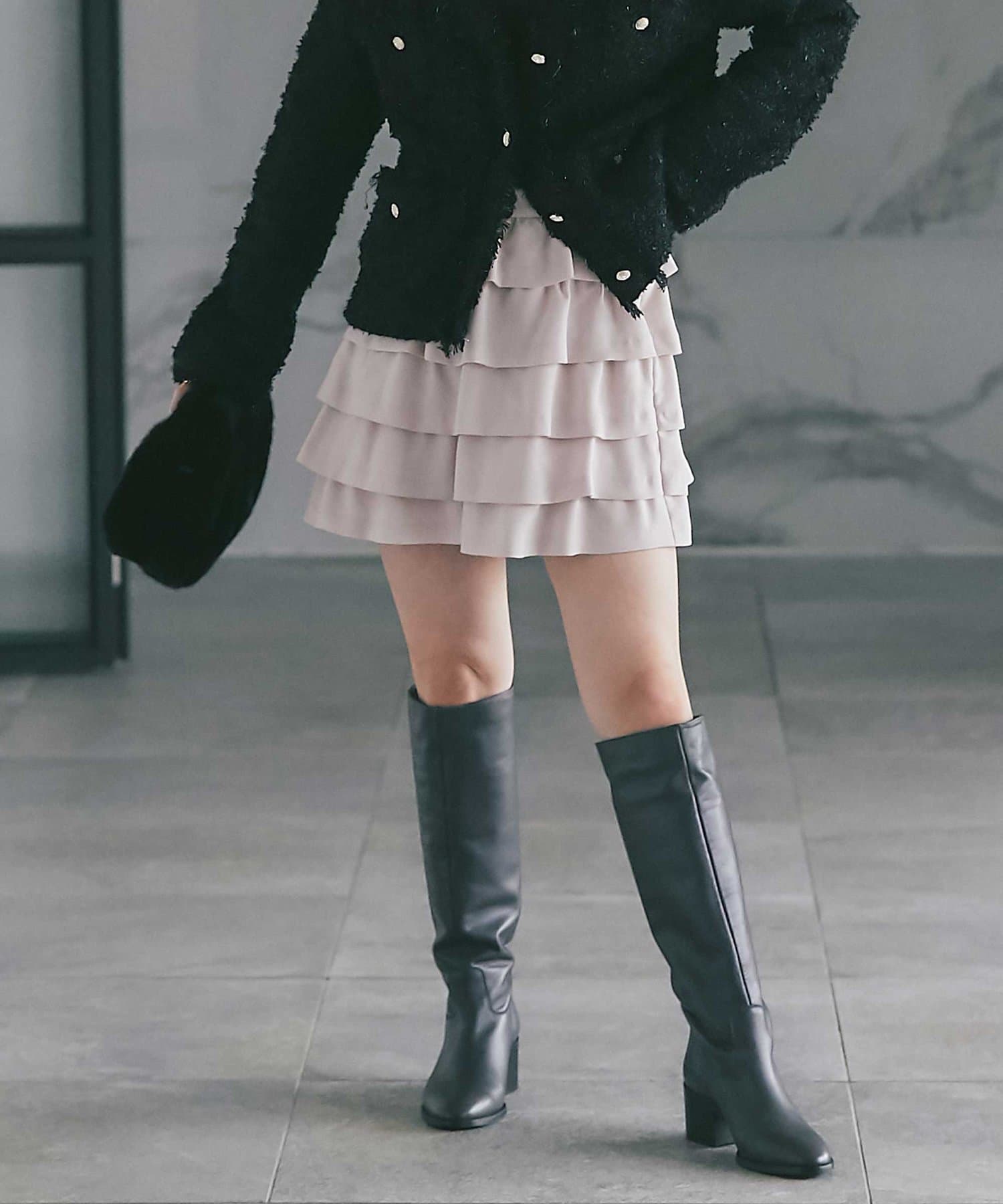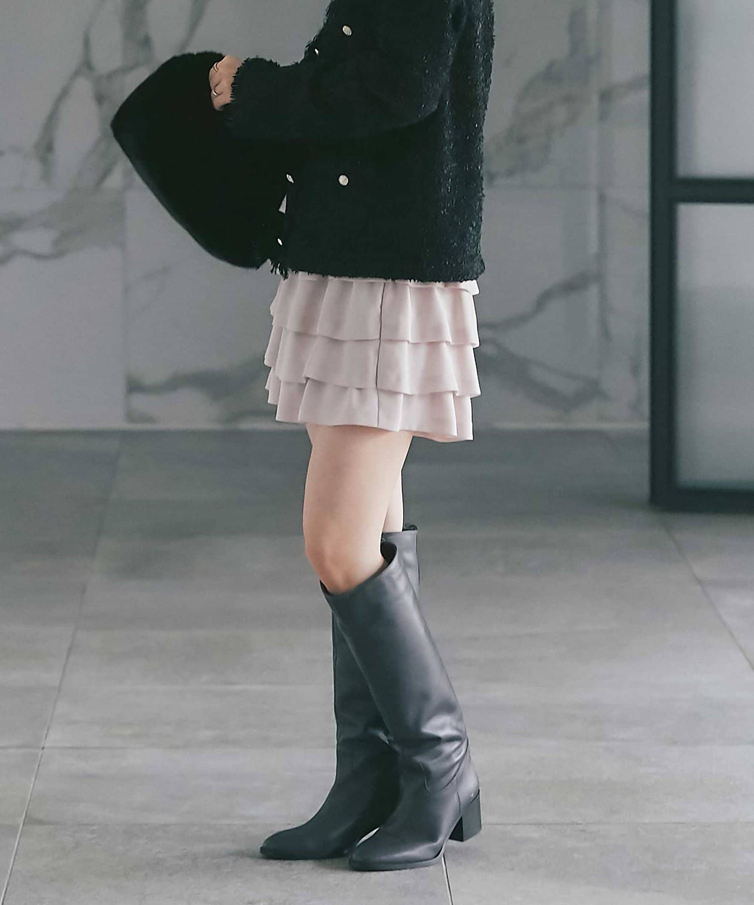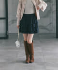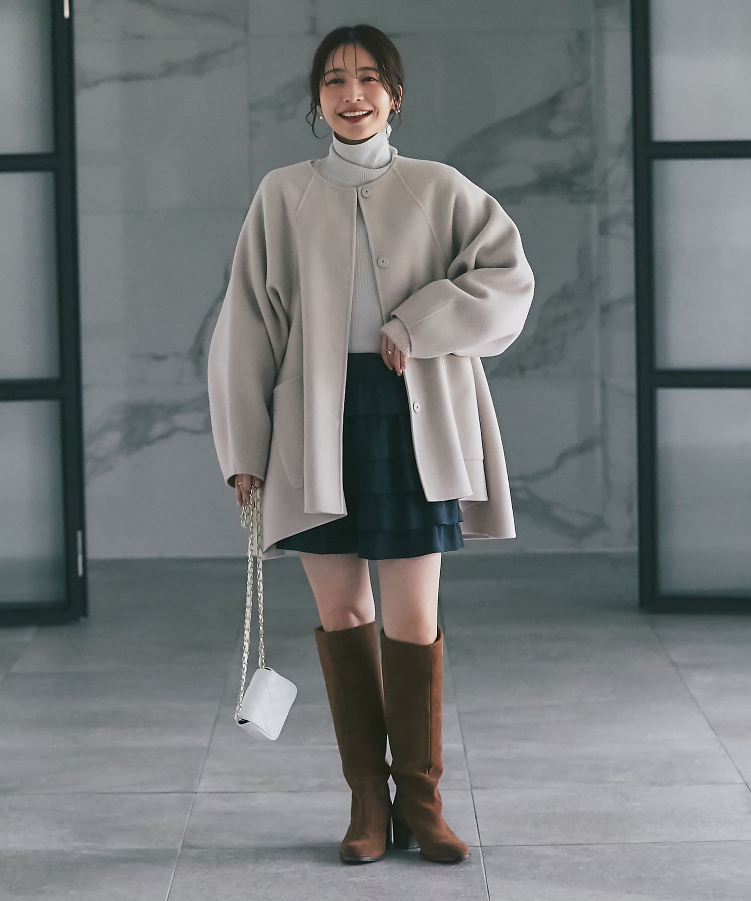 足元はロングブーツに合わせるとトレンド感が増したスタイリングが楽しめます。
