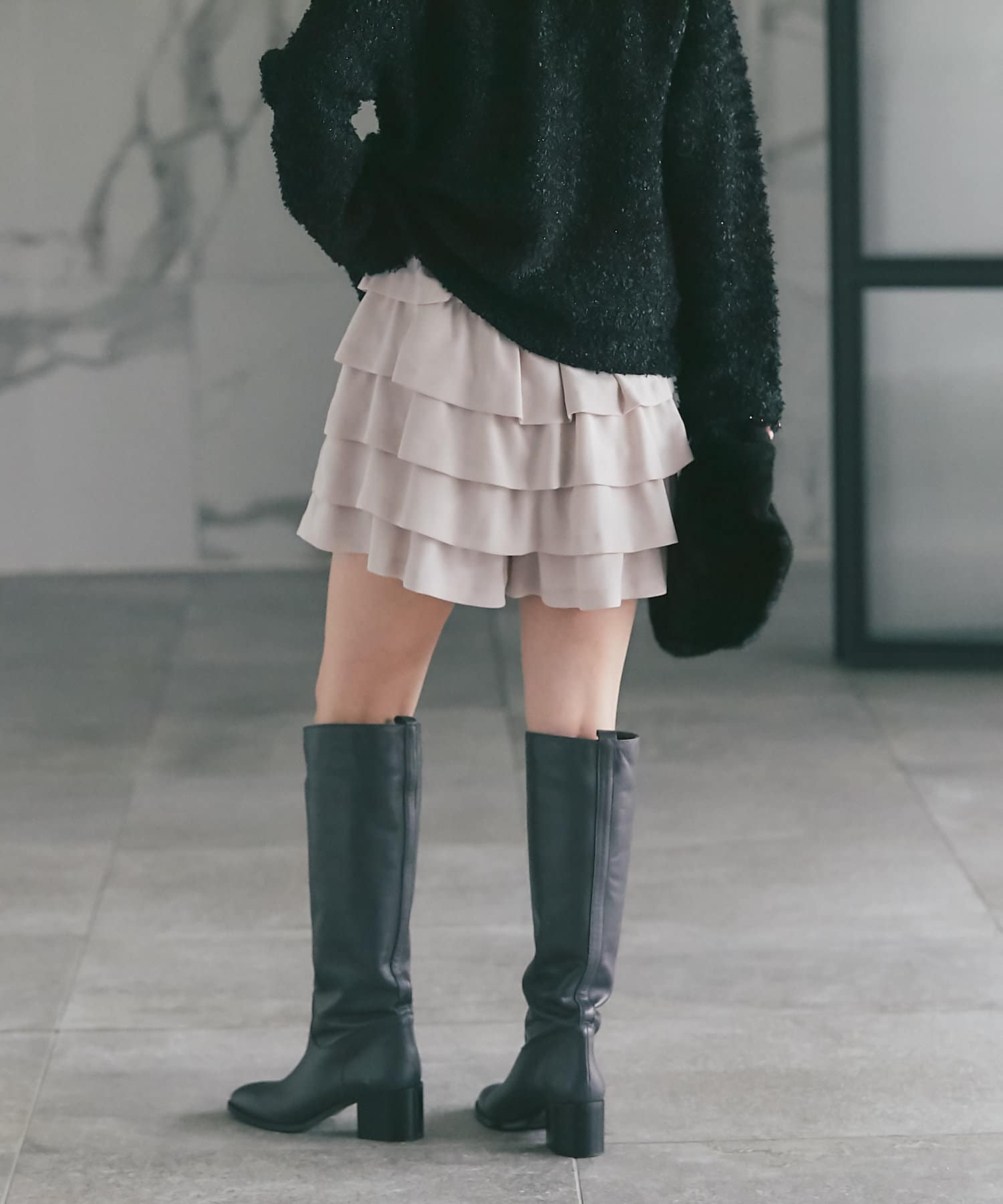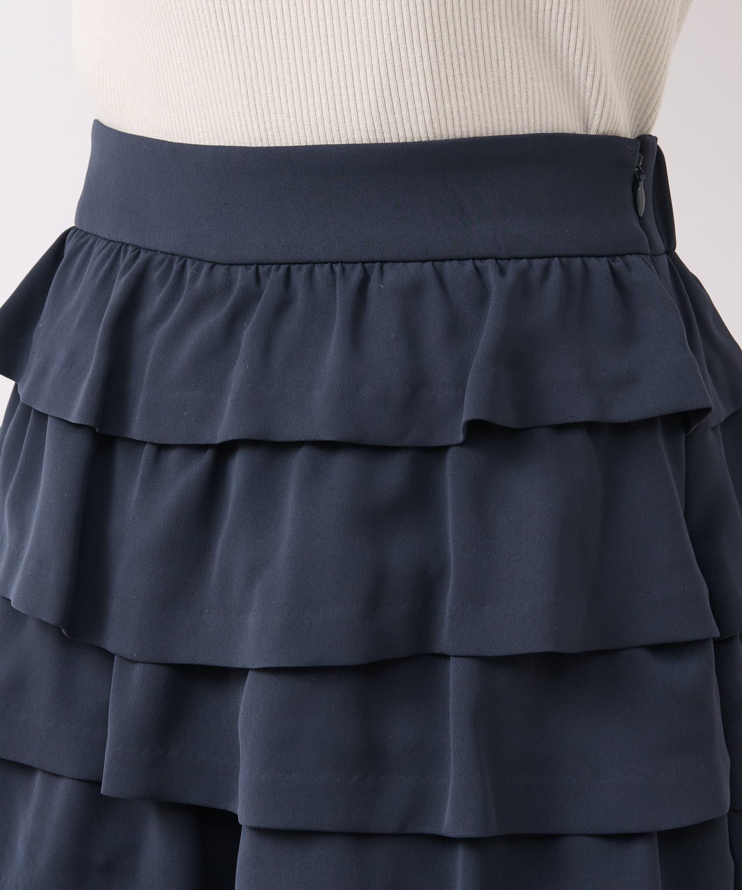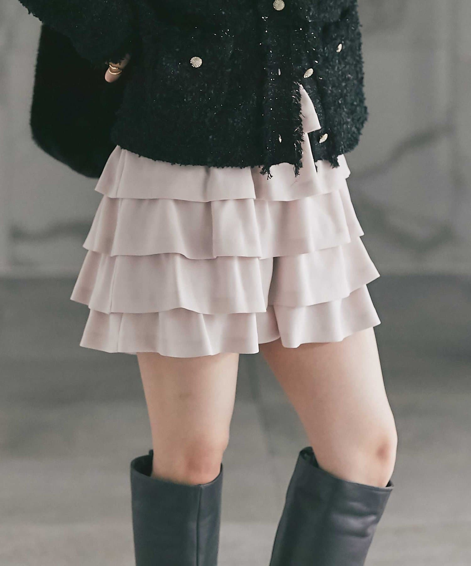 トレンド感のあるミニスカート見えティアードショートパンツ