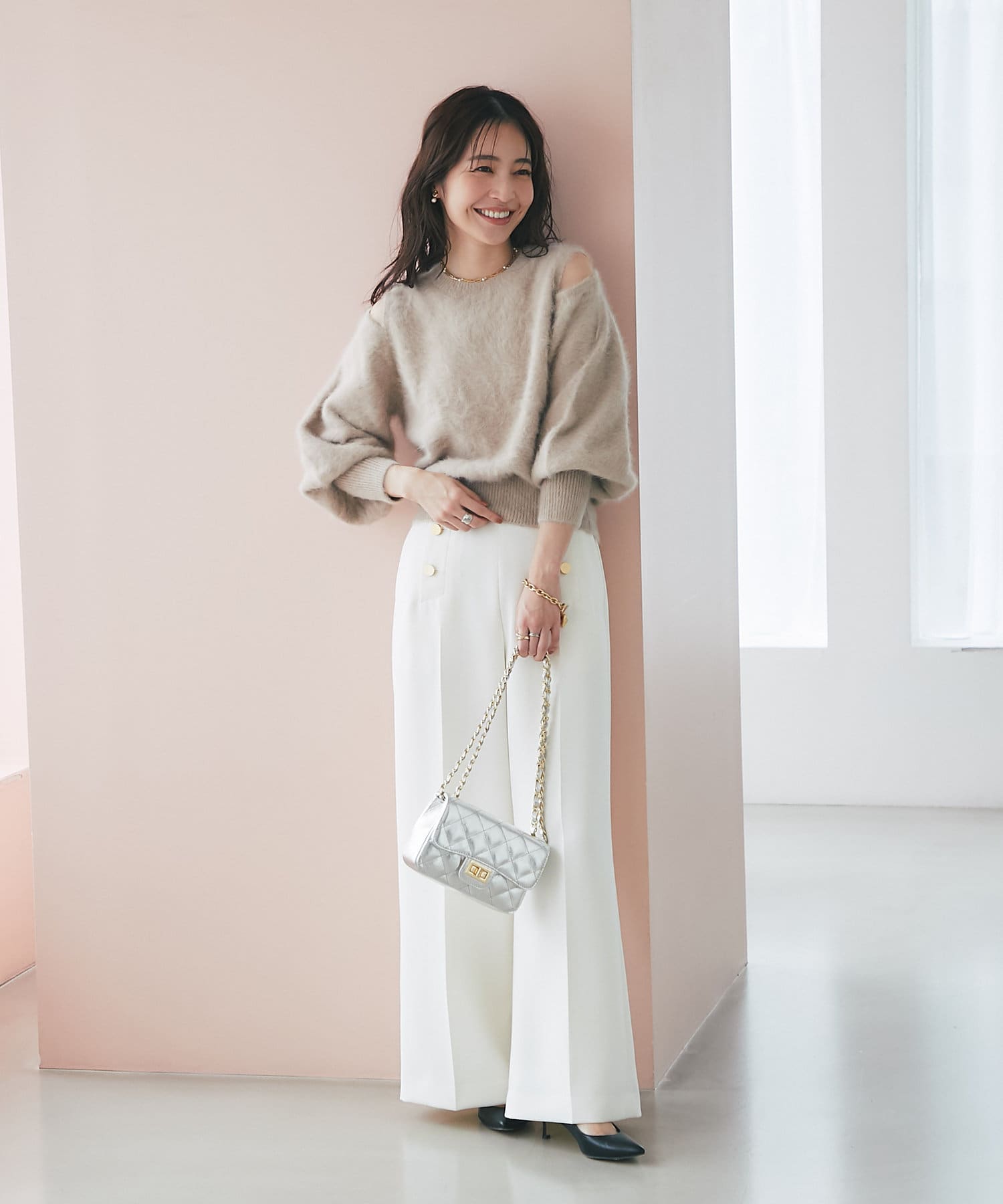 ゆるっとシルエットのニットで抜け感のあるスタイリングもおすすめ。