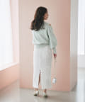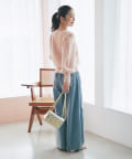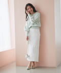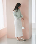 光沢のあるスカートなど、素材に特徴があるボトムス合わせは