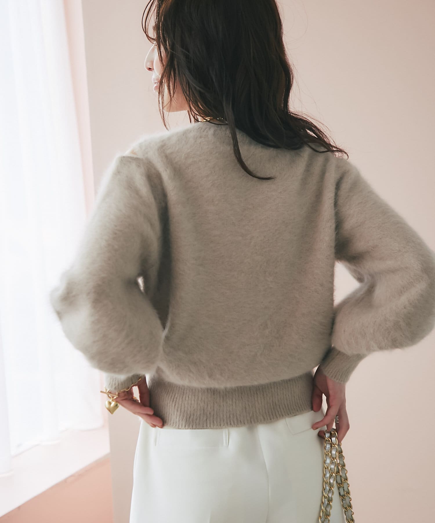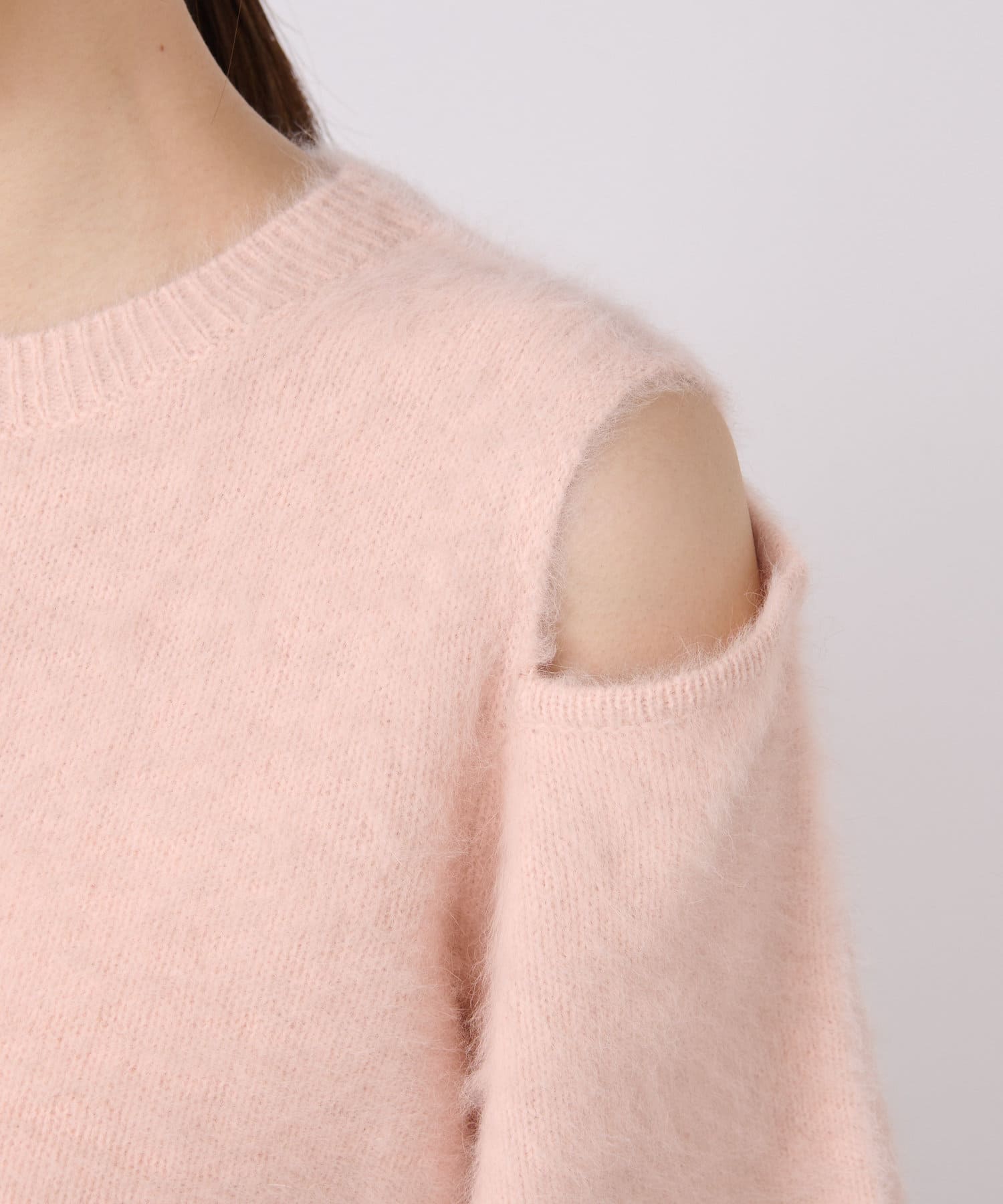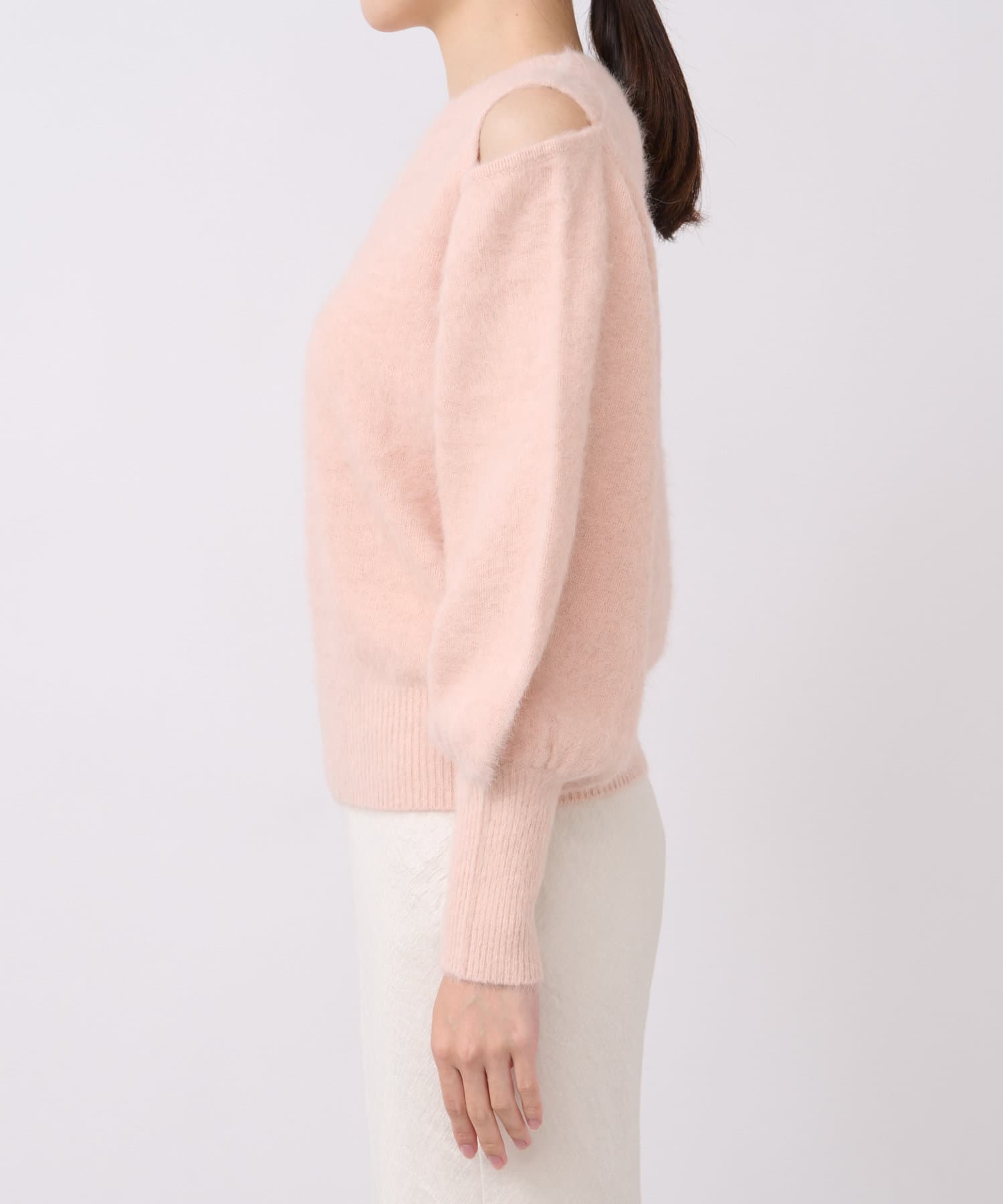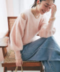 へアリーなフォックス混の女性らしさが詰まったちらり肌見せニット。