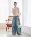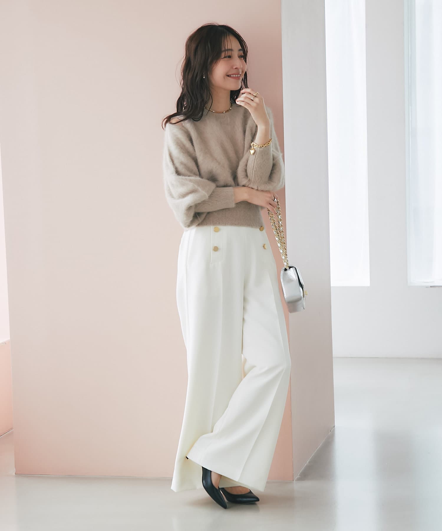 ボリュームスリーブで女性らしいシルエットです。
