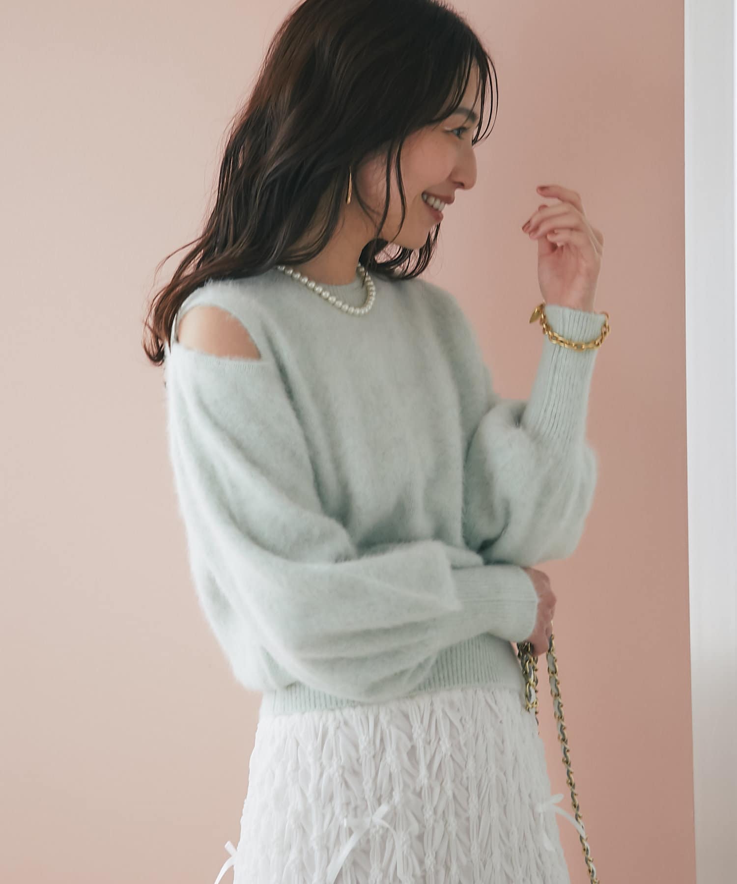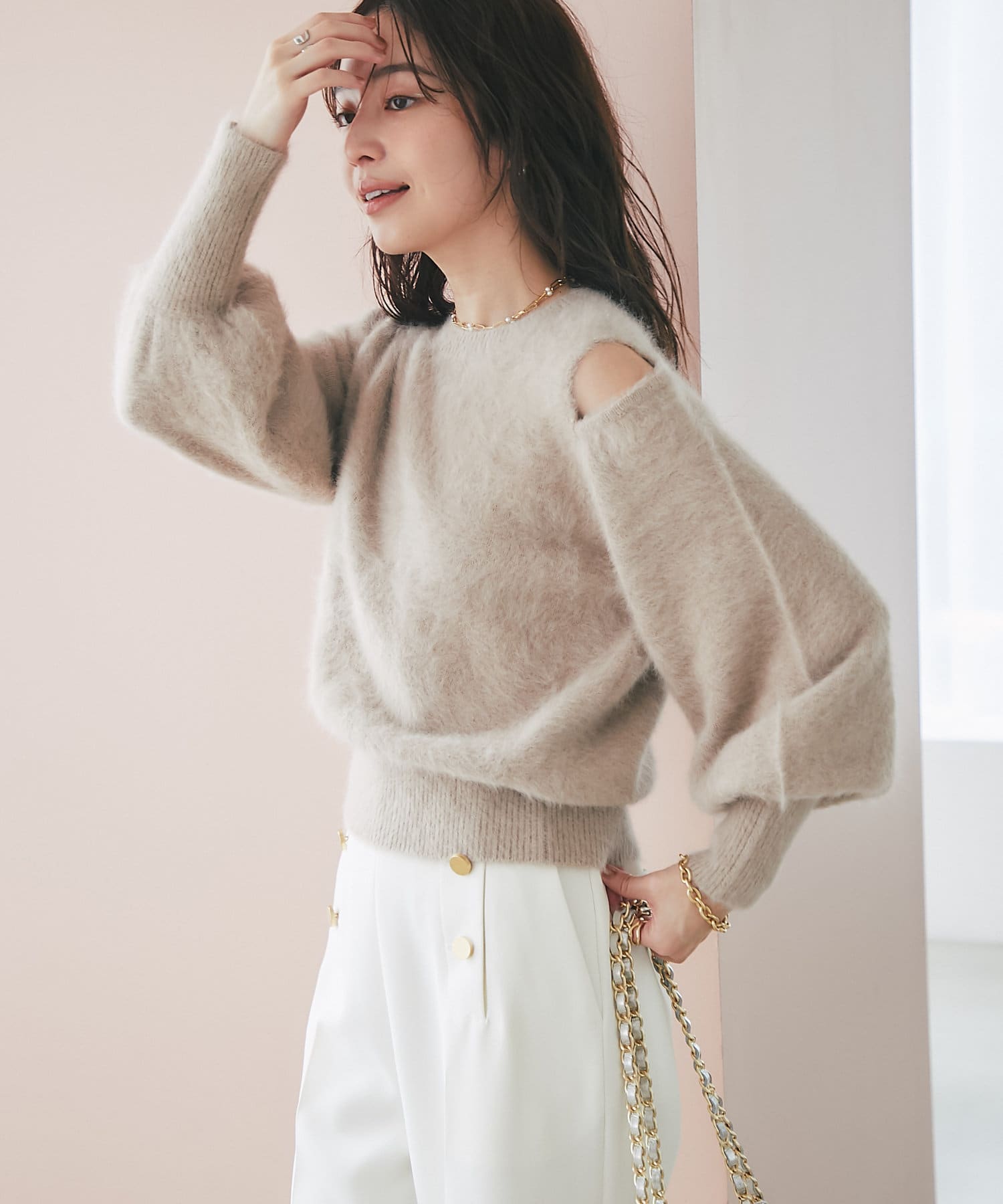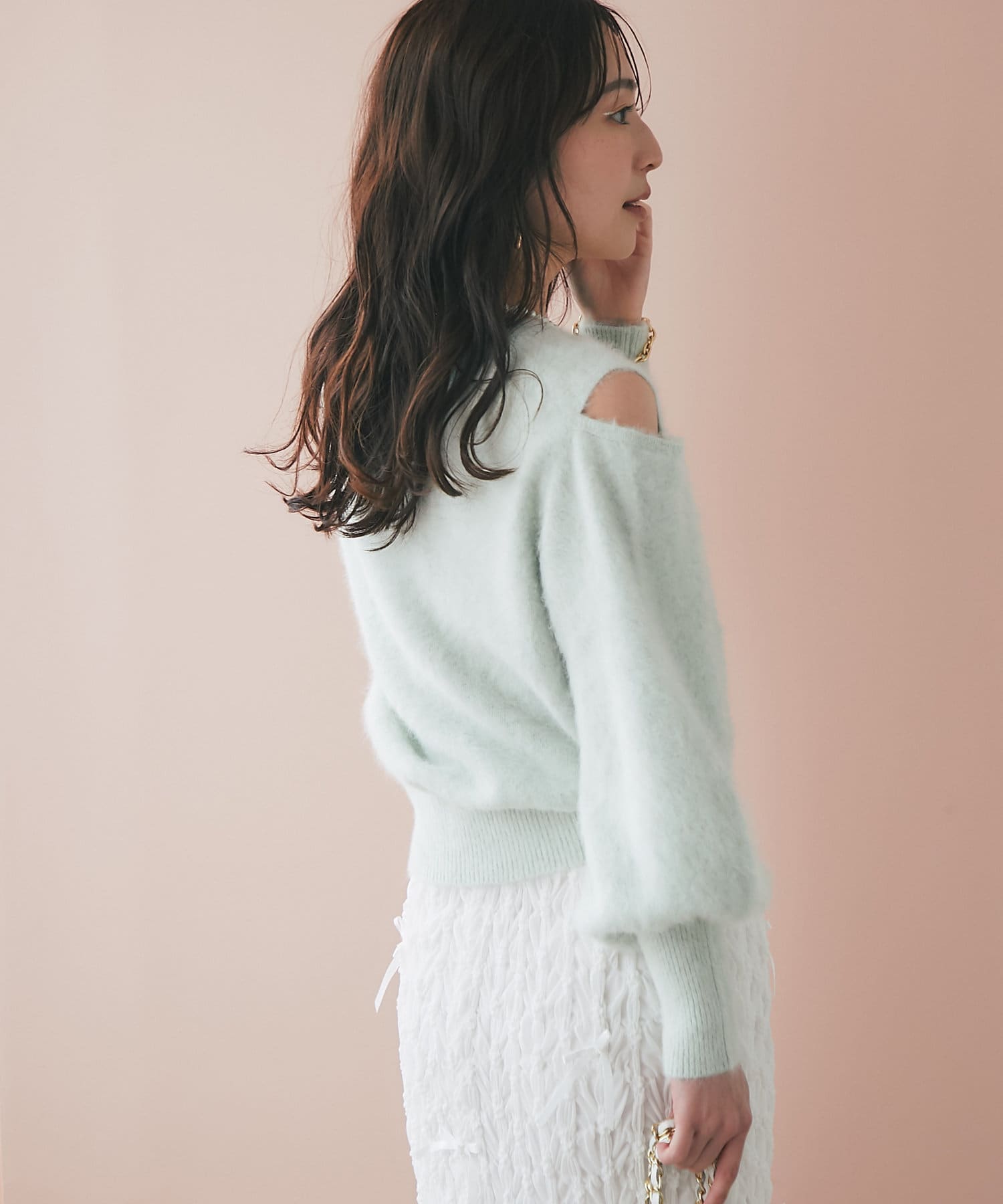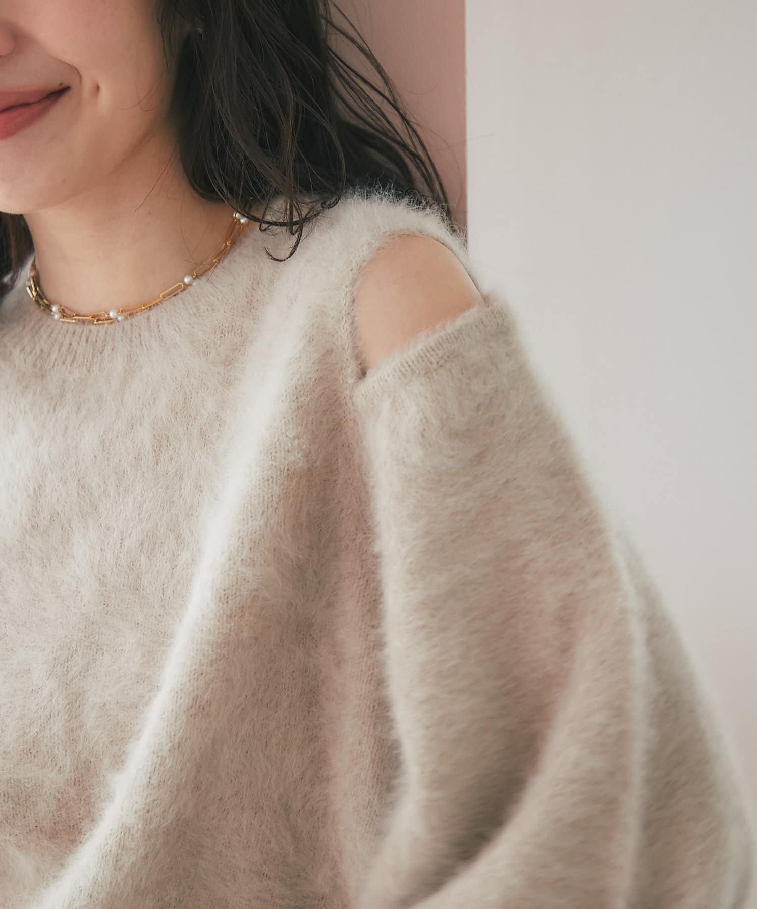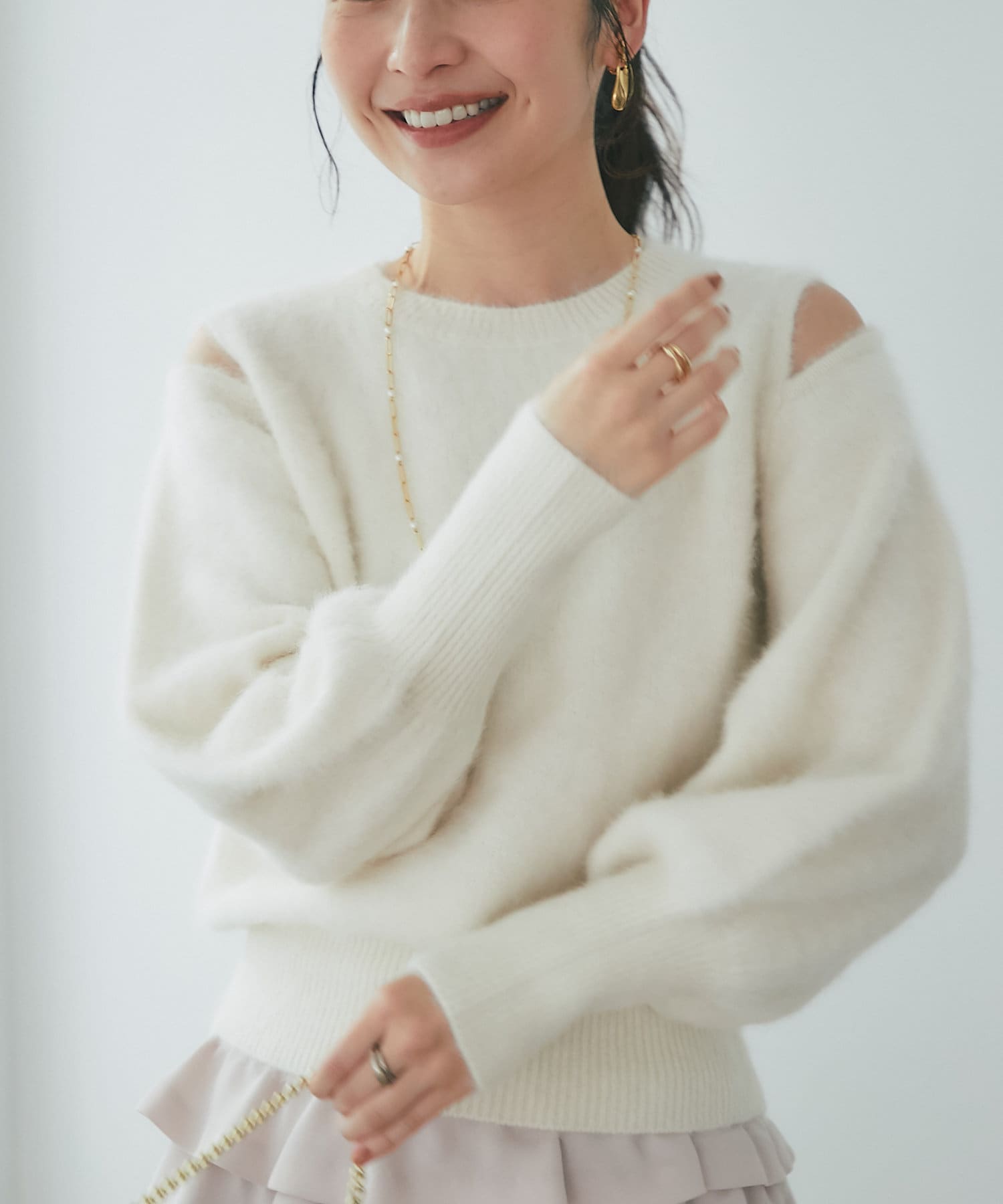 上品な肌見せができるふわふわニット