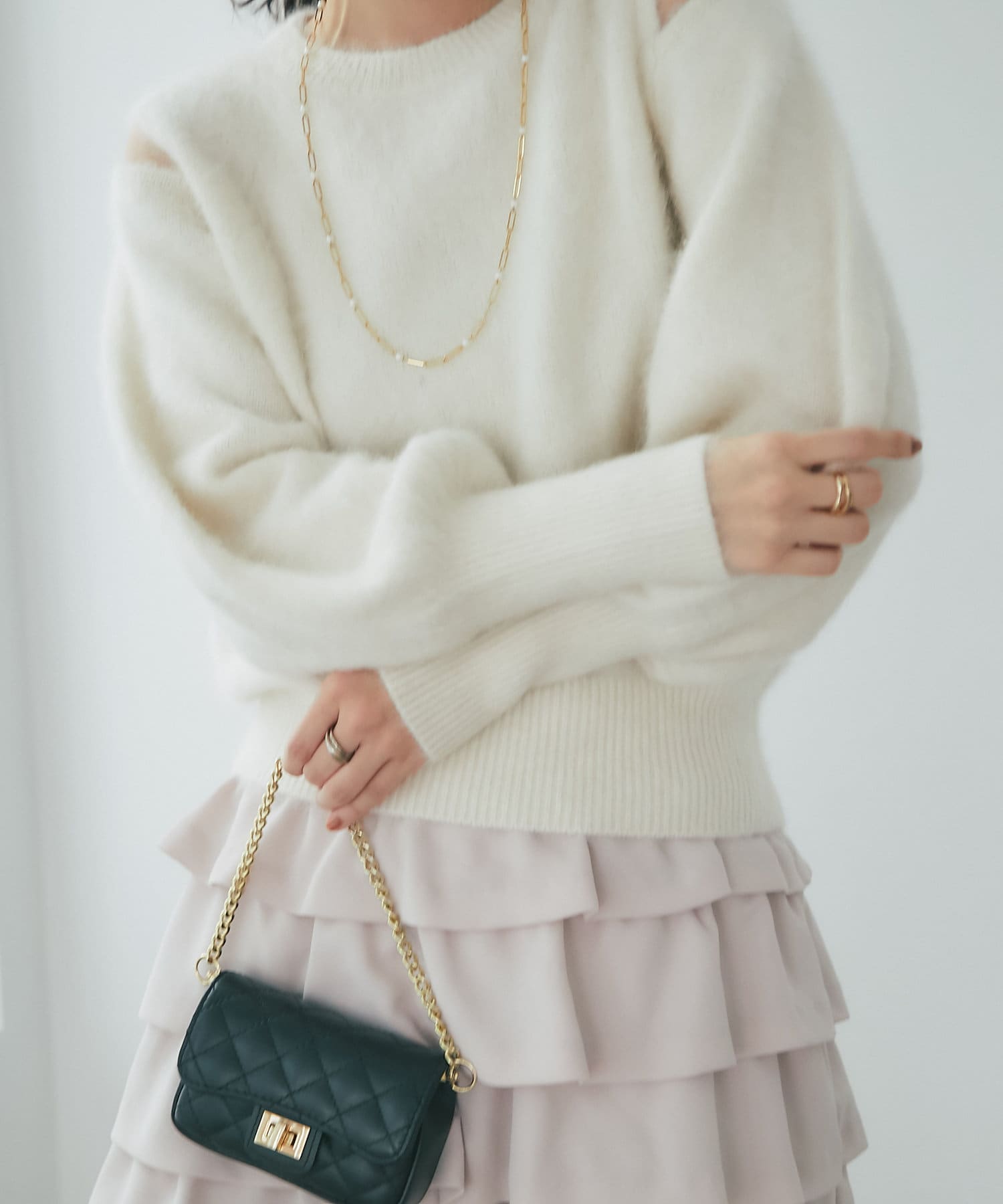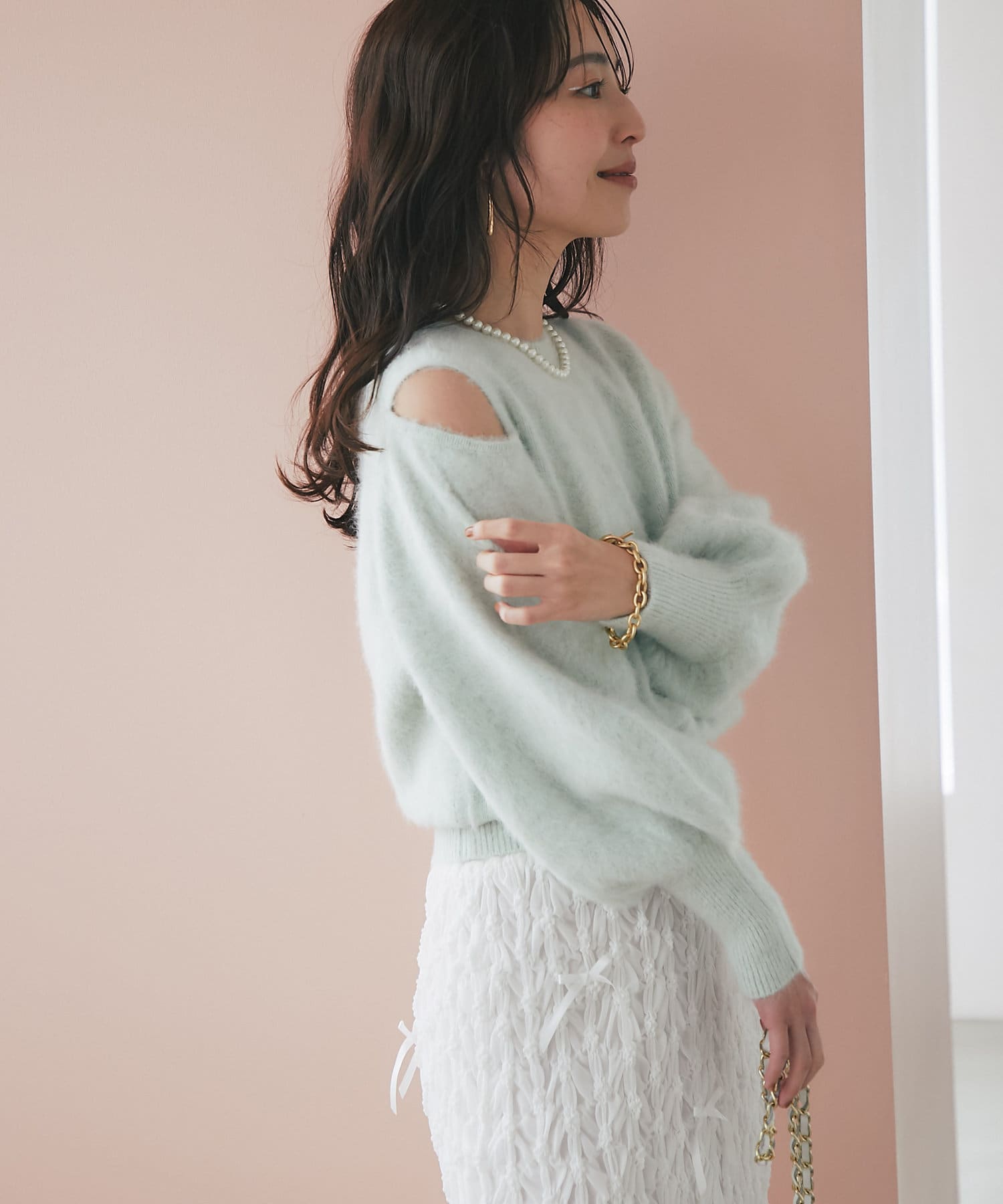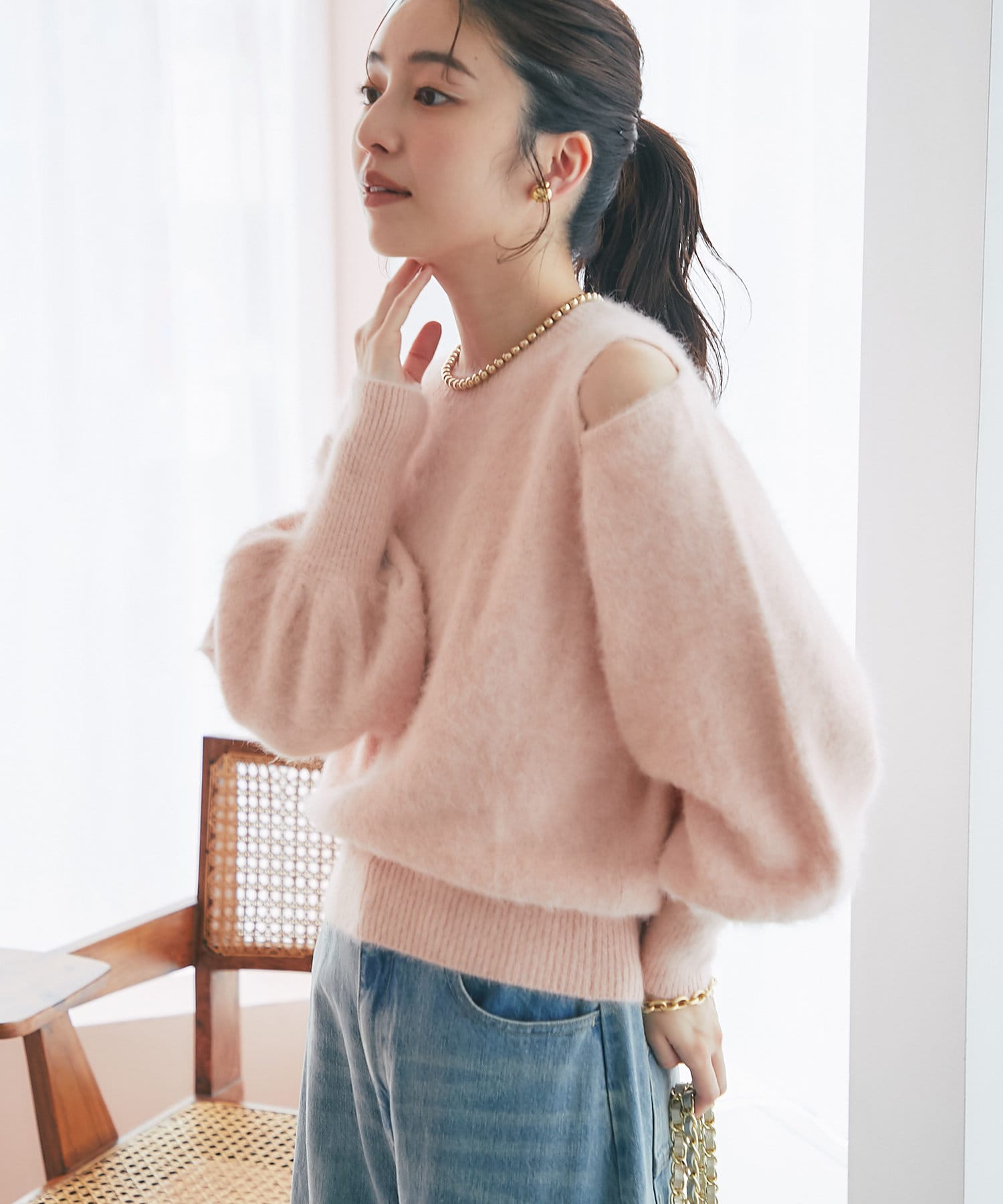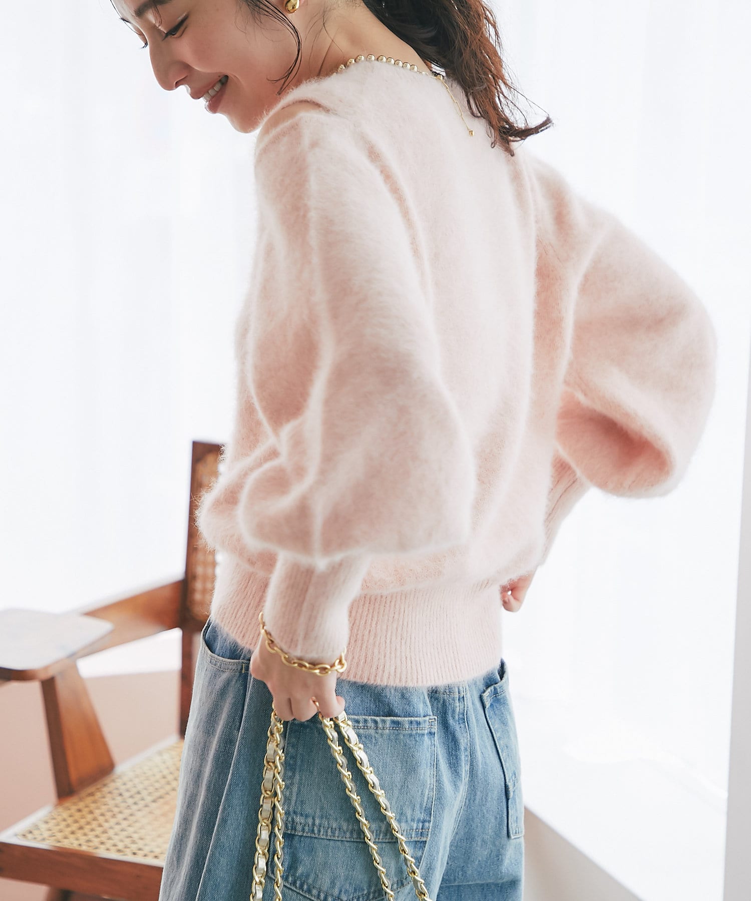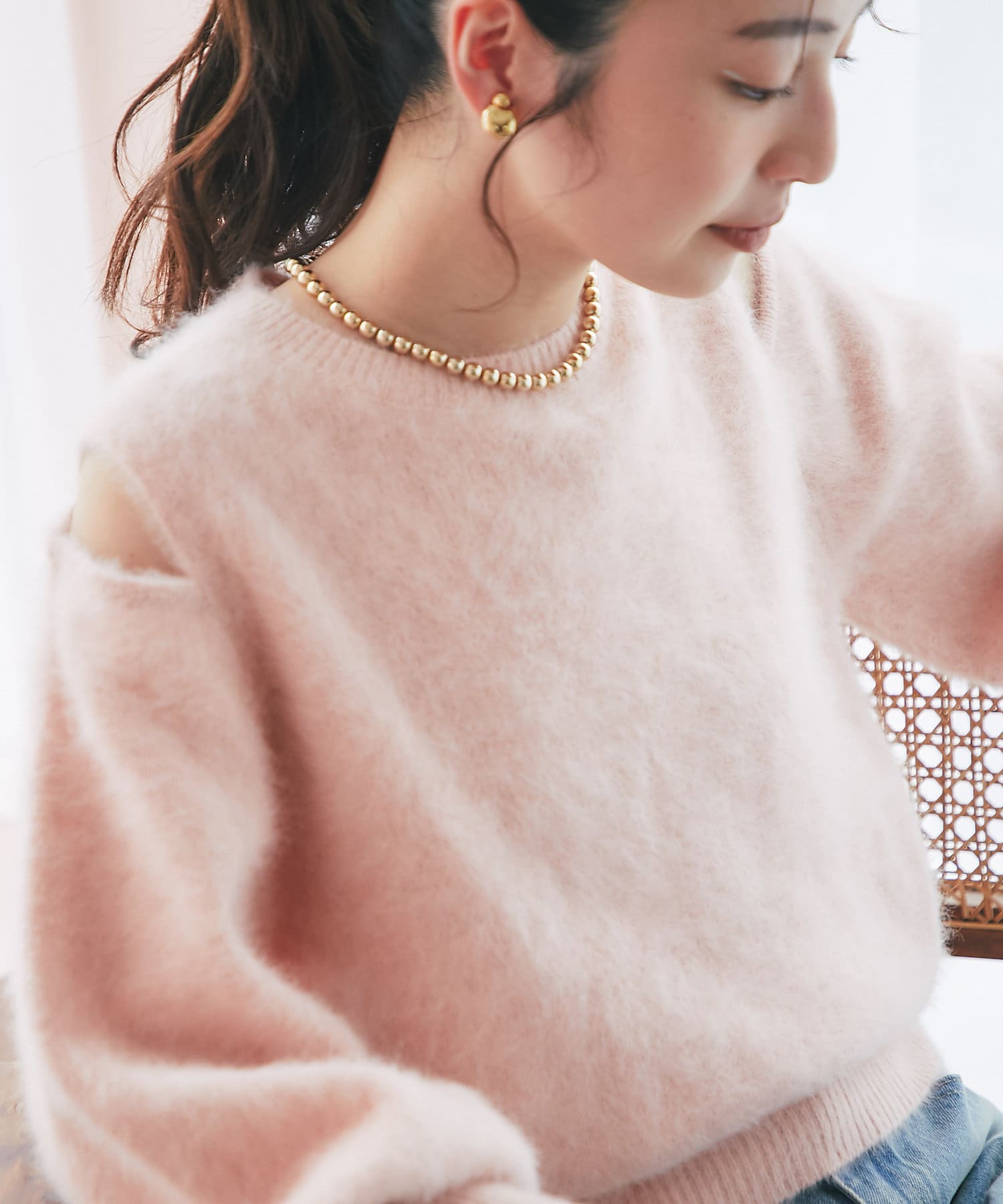 上品な肌見せができるふわふわニット