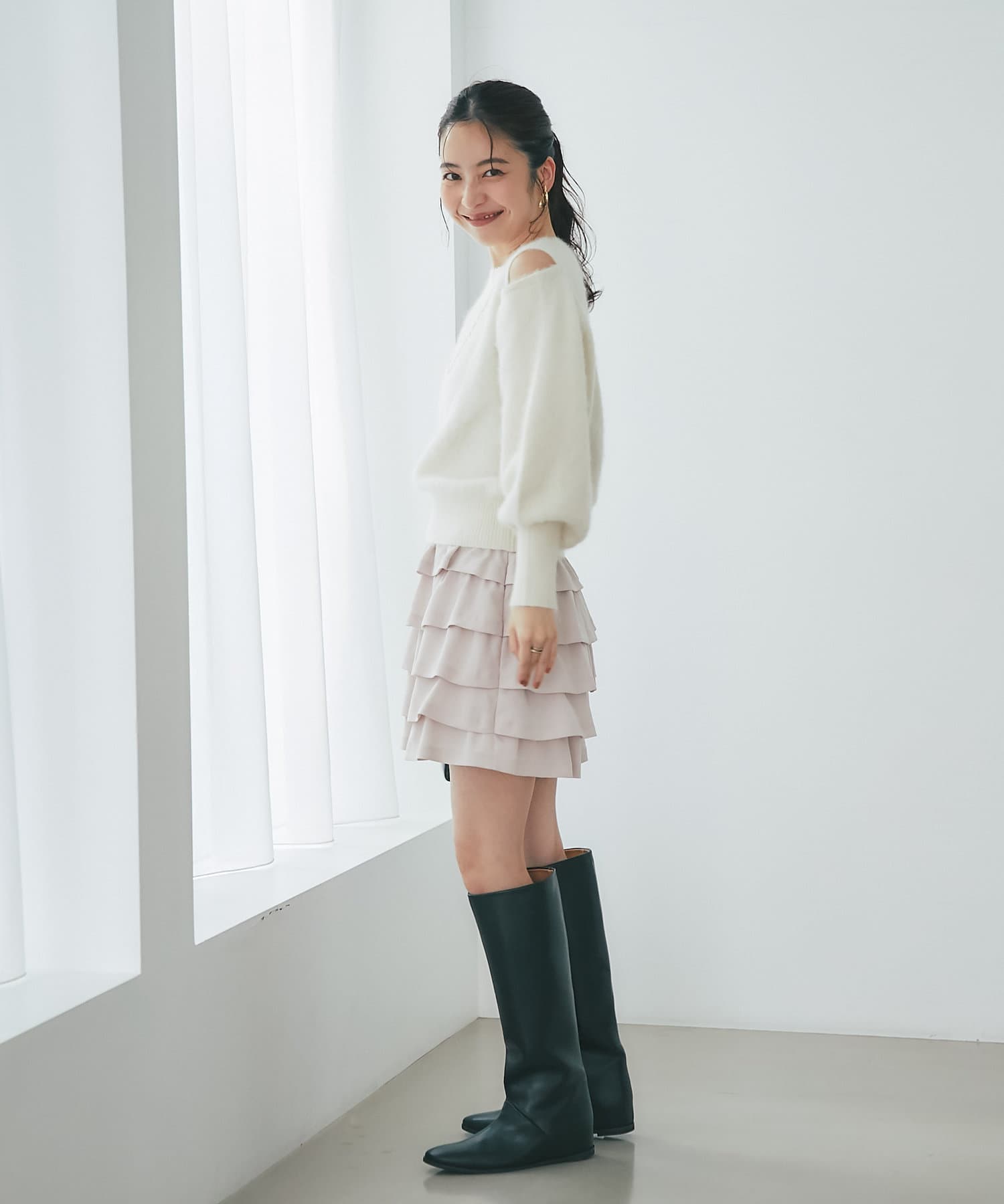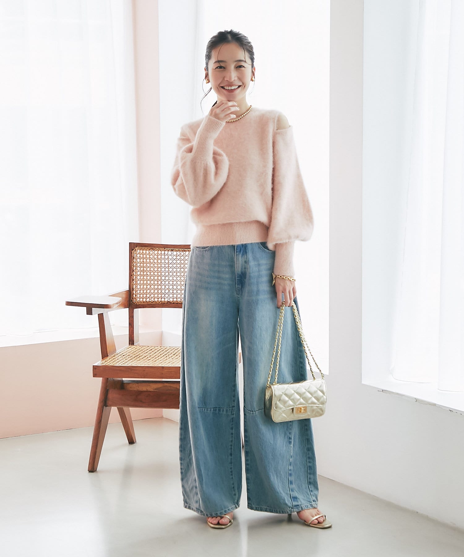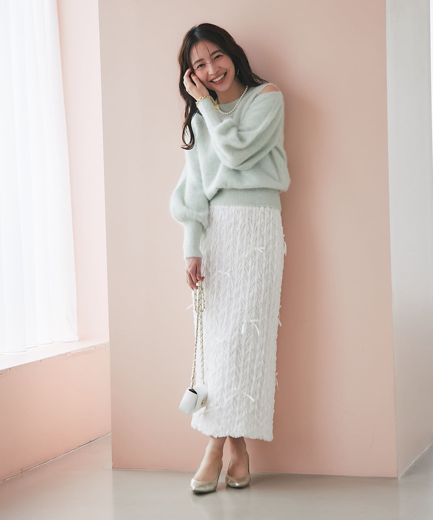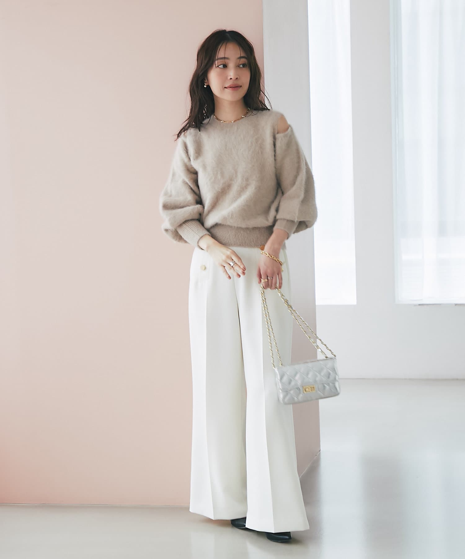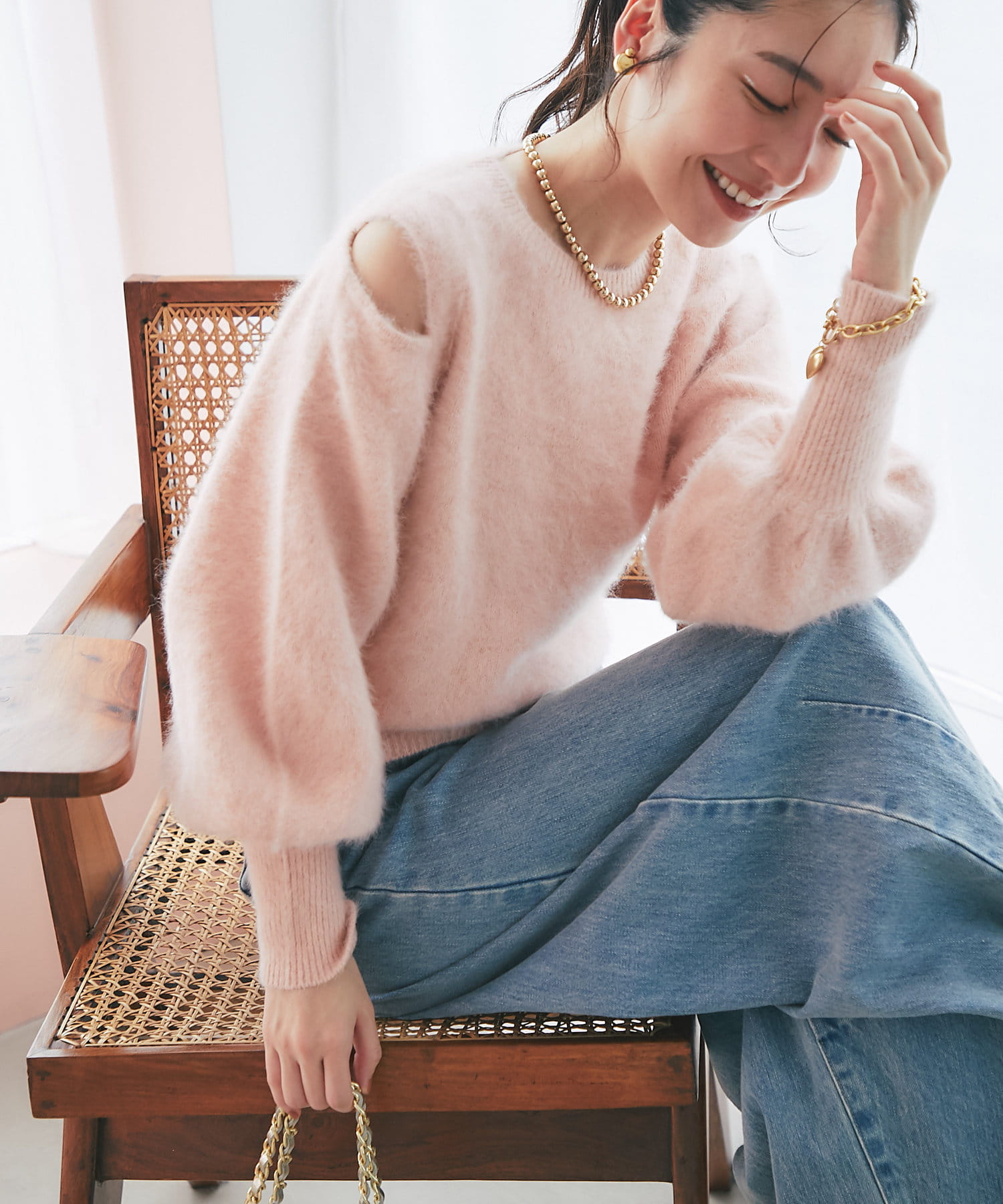 上品な肌見せができるふわふわニット