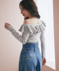 • La boutique BonBon(ラブティックボンボン) 【最強美人見え】オフショルラッフルニット