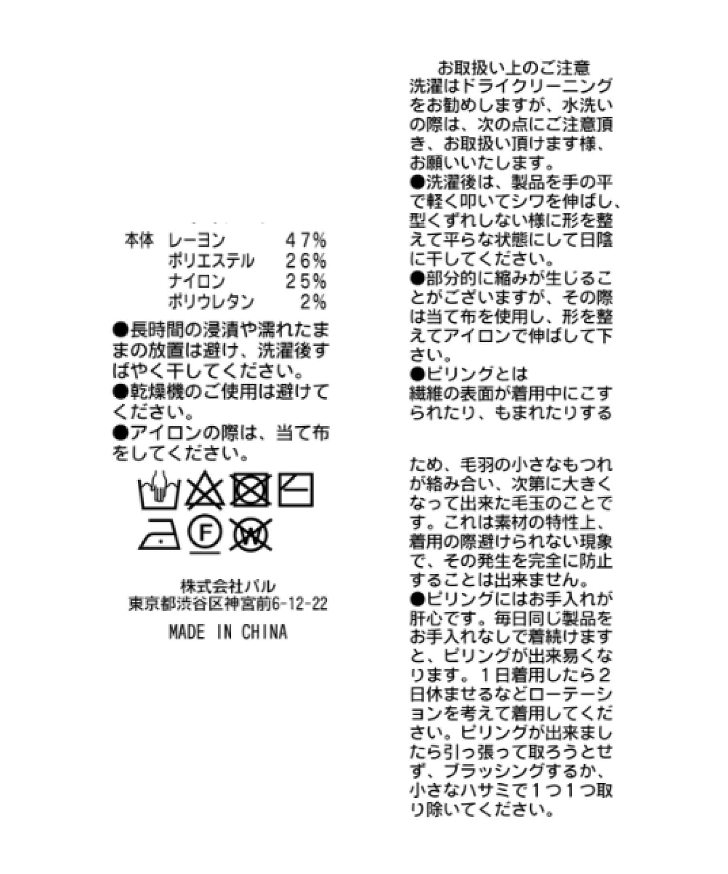 素材 本体:レーヨン47% ポリエステル26% ナイロン25% ポリウレタン2%