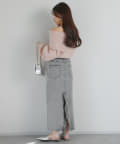 光沢のあるスカートなど、素材に特徴があるボトムス合わせは