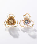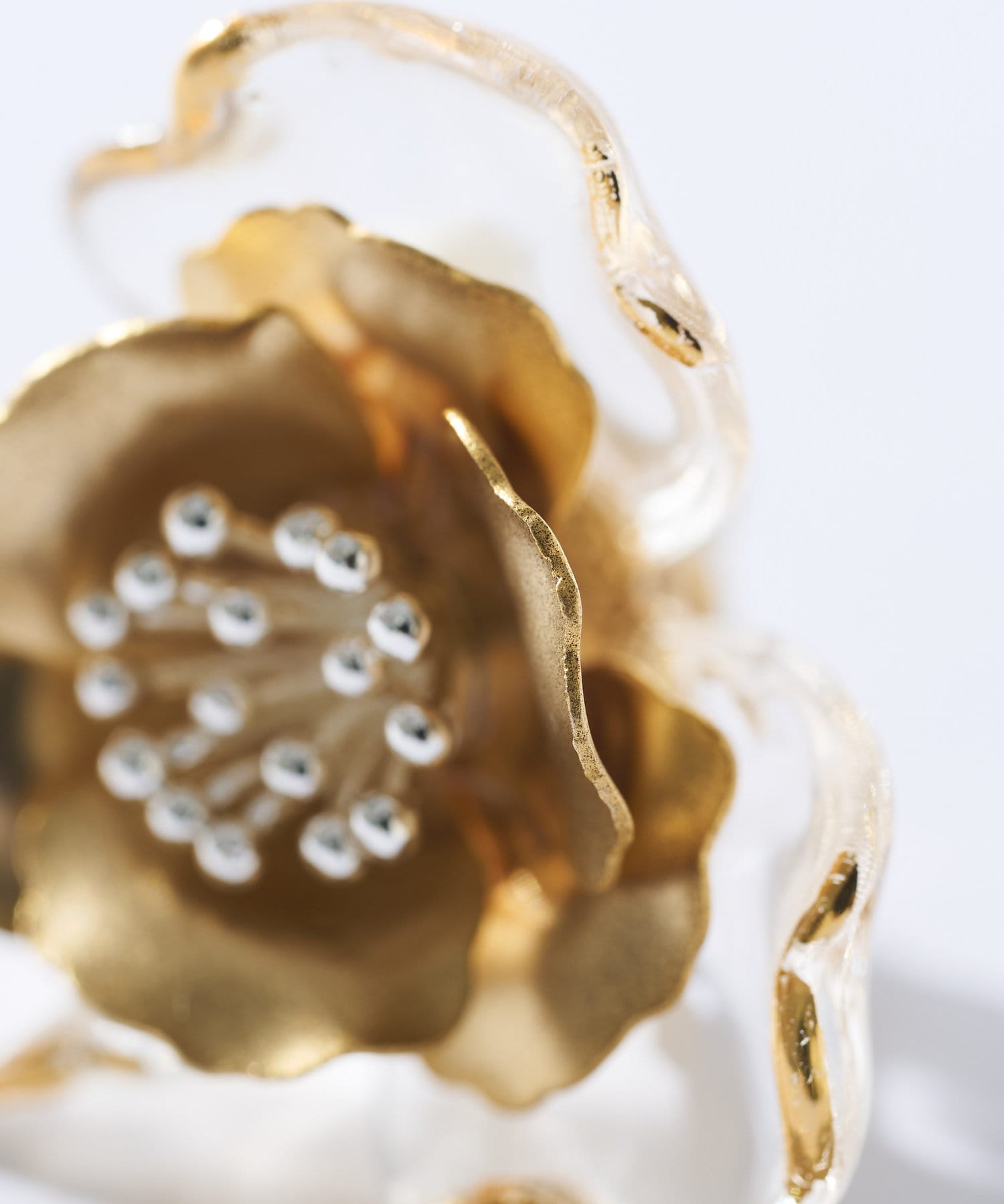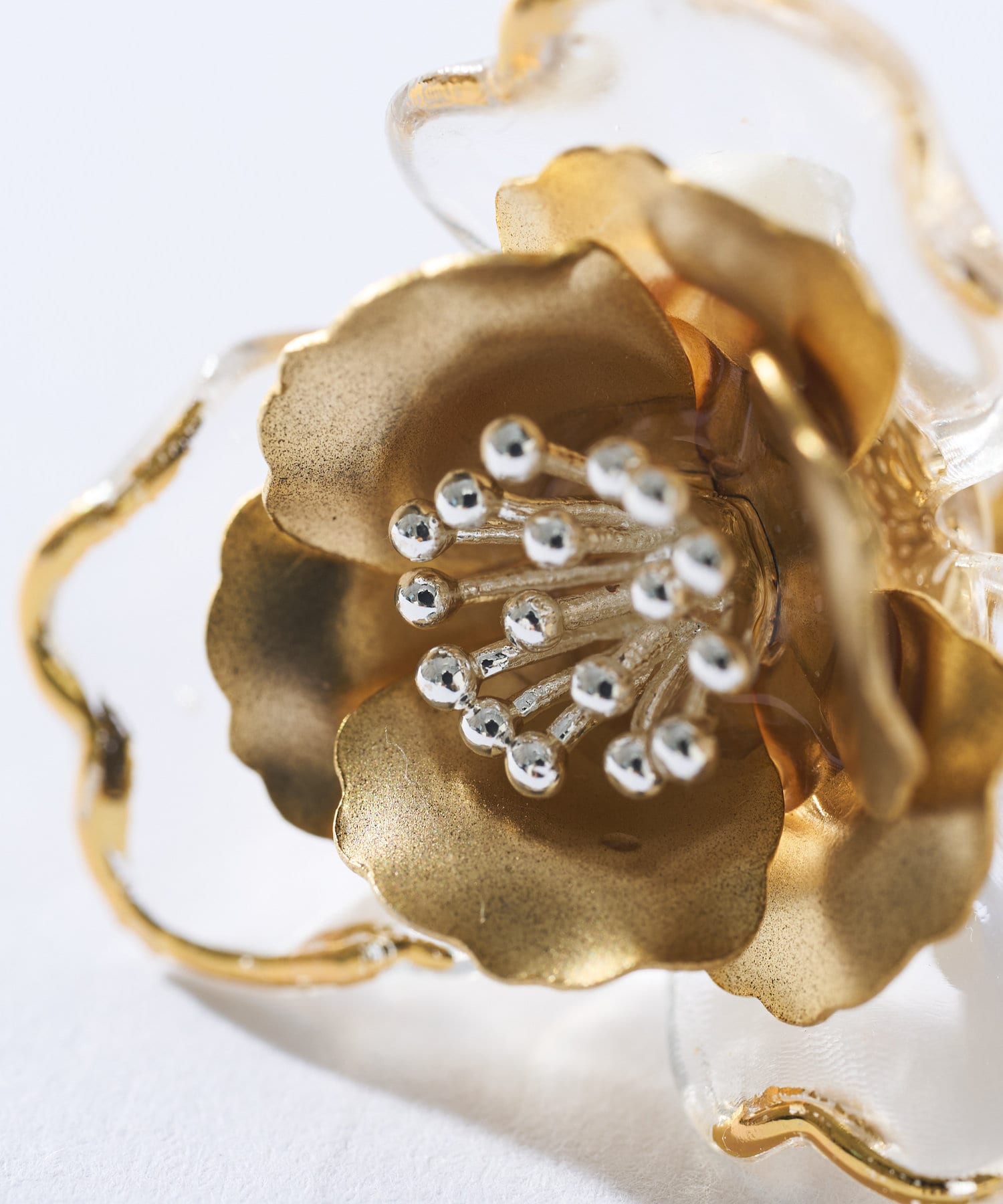 クリアなお花はピュアな印象、ゴールドのお花はゴージャス、左右で違う印象を与えてくれて2倍楽しめます。