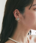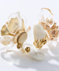 HUIのアイコンとも言えるアクリル樹脂で作ったフラワーデザインのイヤリングは、左右アシンメトリーデザインがポイント。