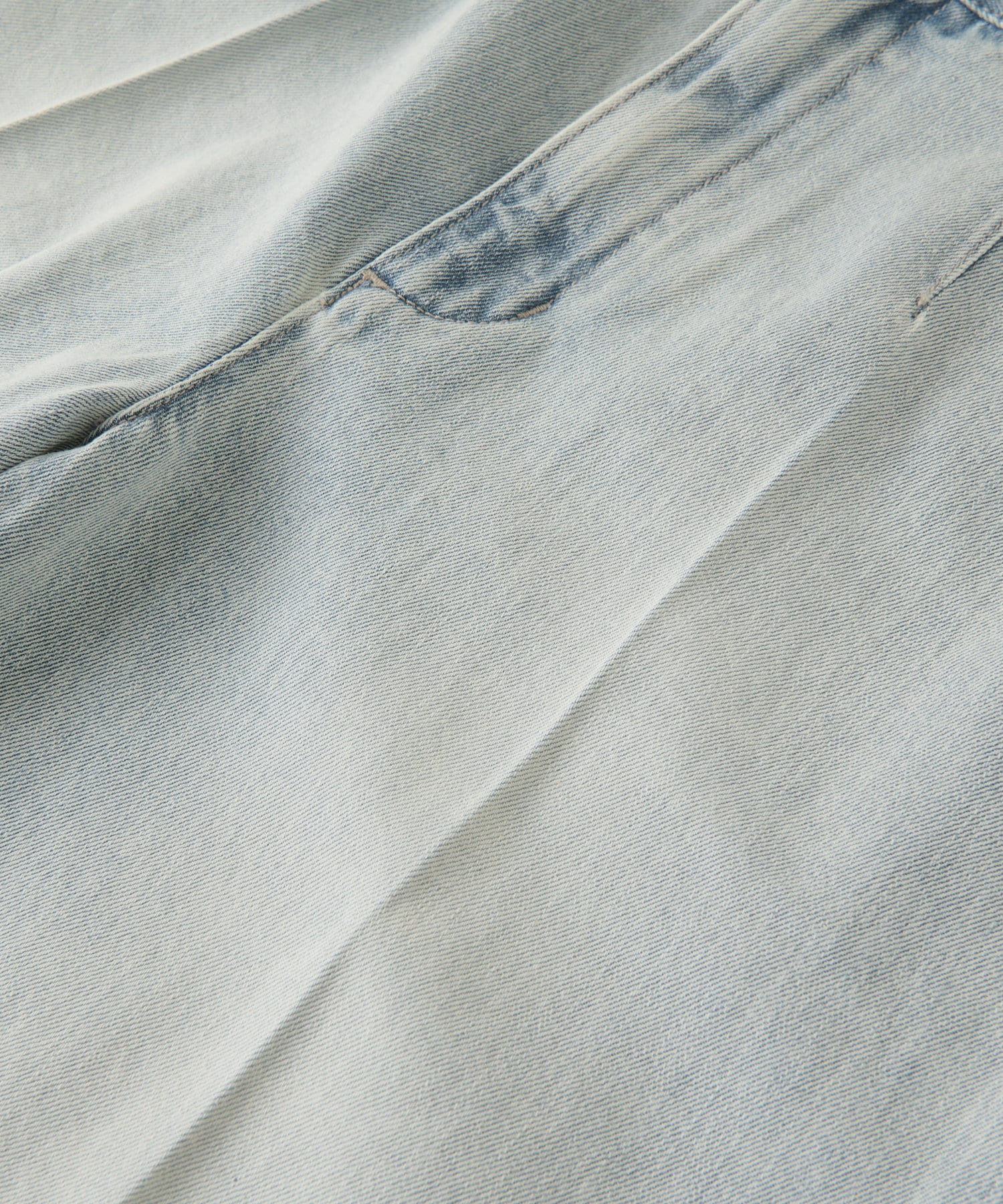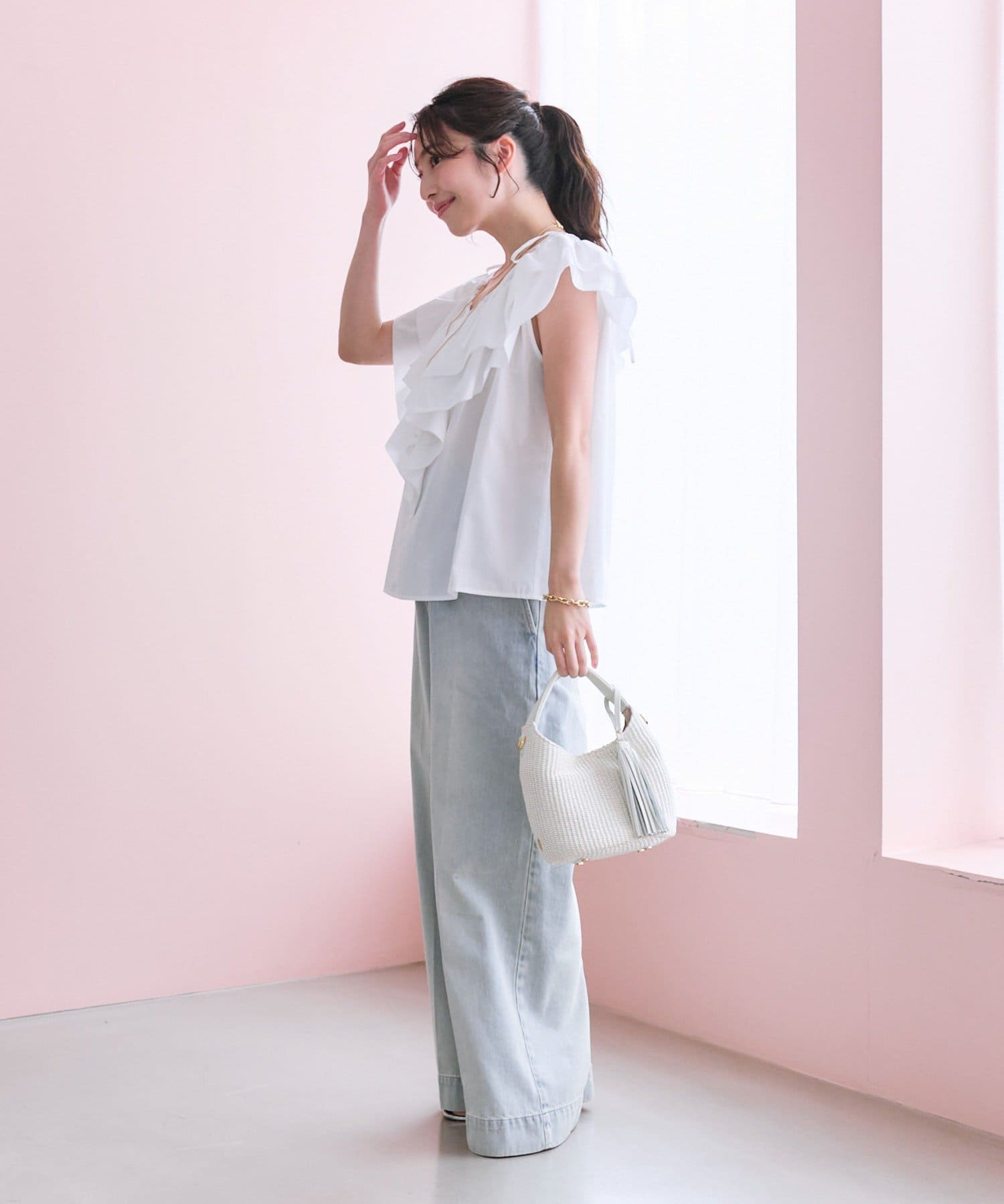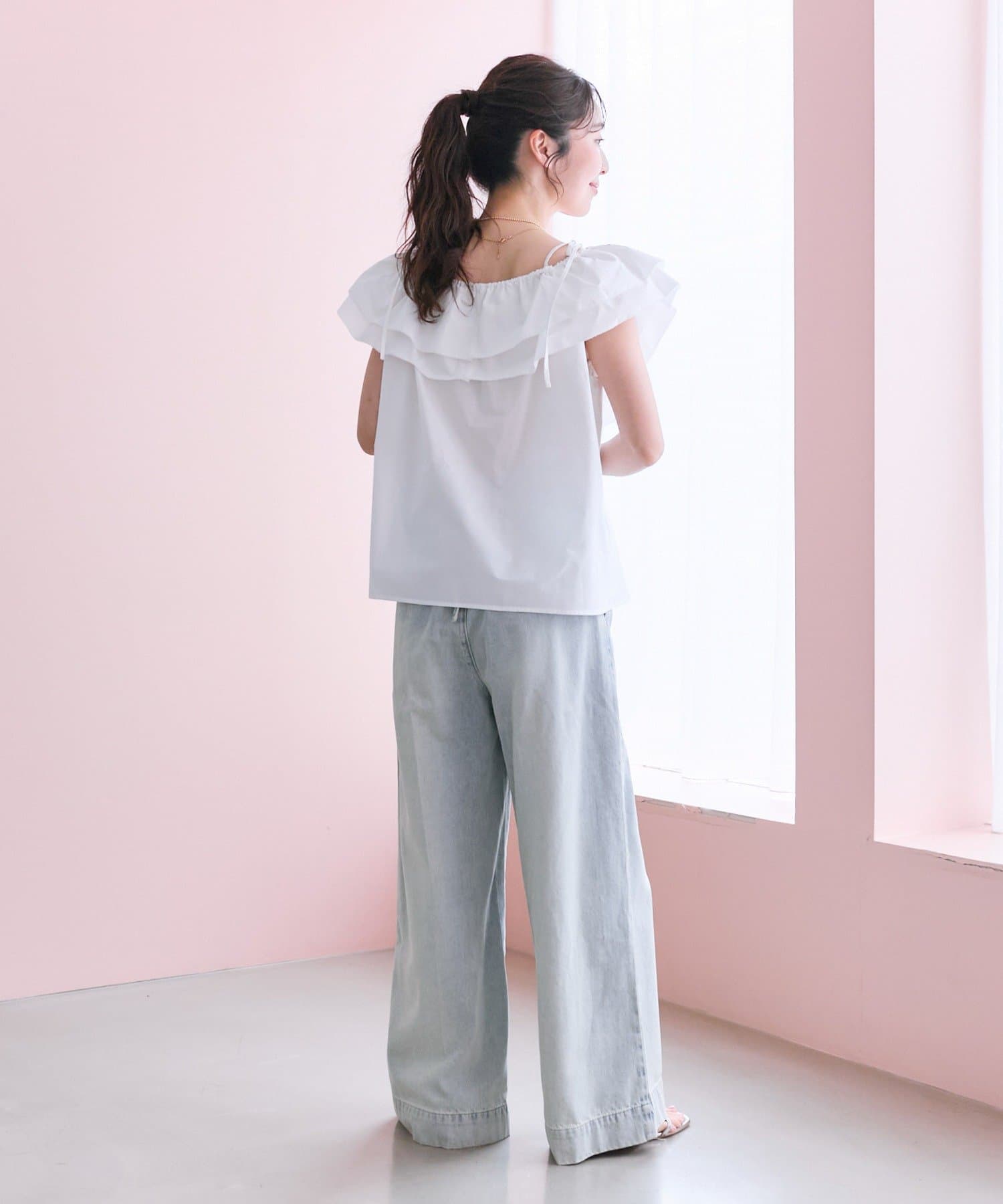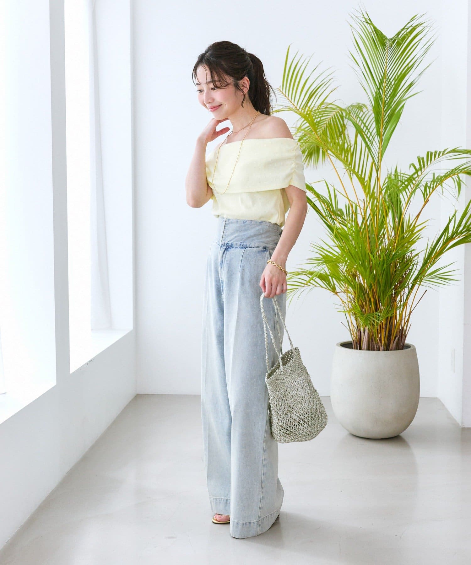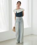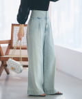 バックレースが目を引く、大人かわいいデニムワイドパンツ。