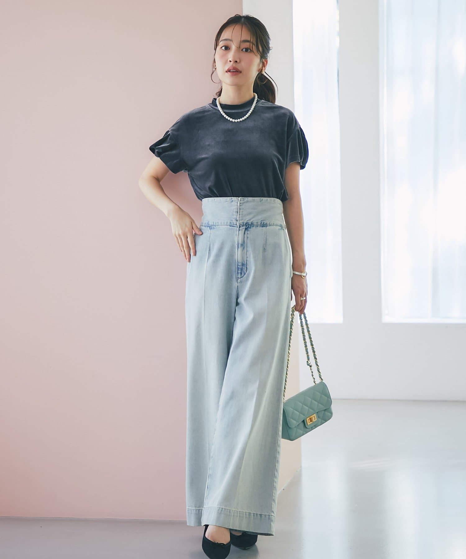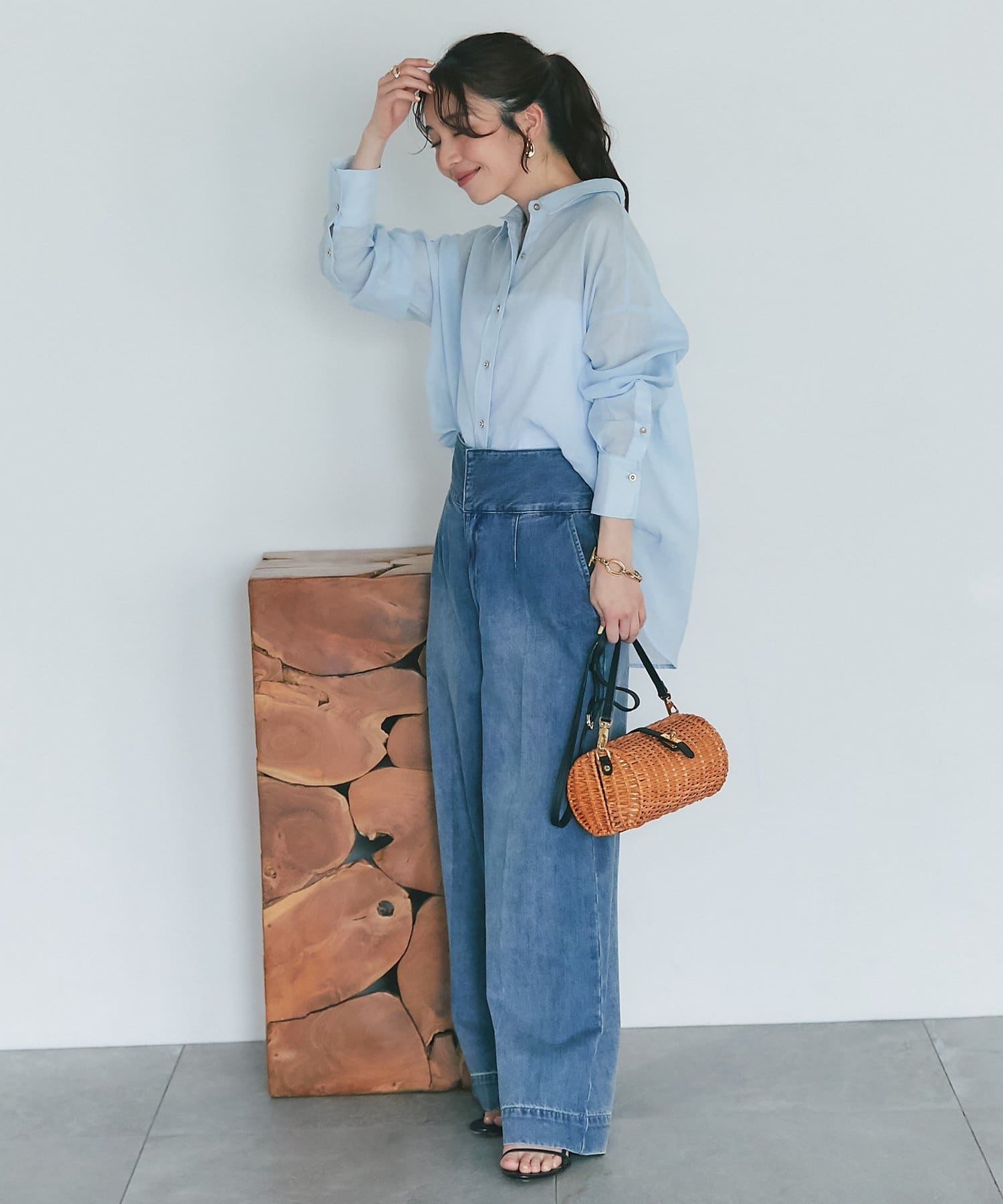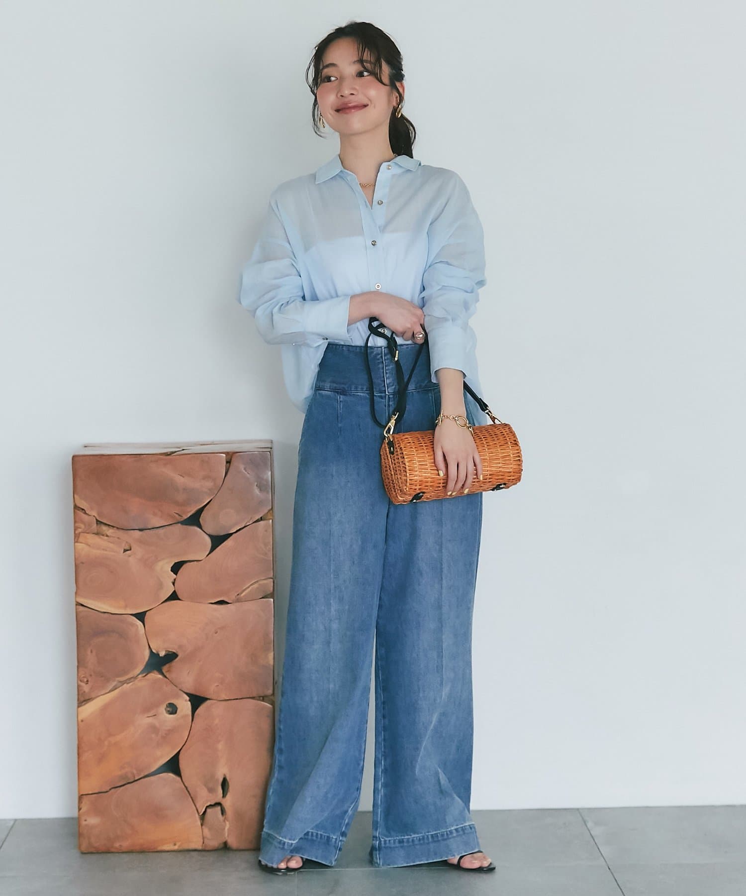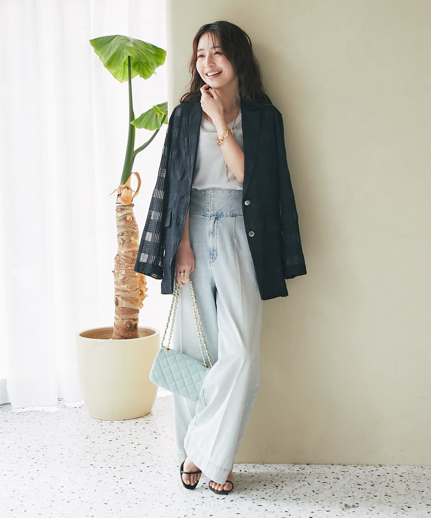 デニムながらもカジュアルすぎず、上品な着こなしが楽しめます。