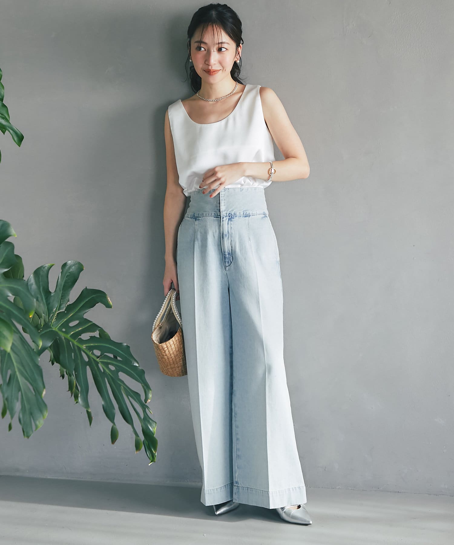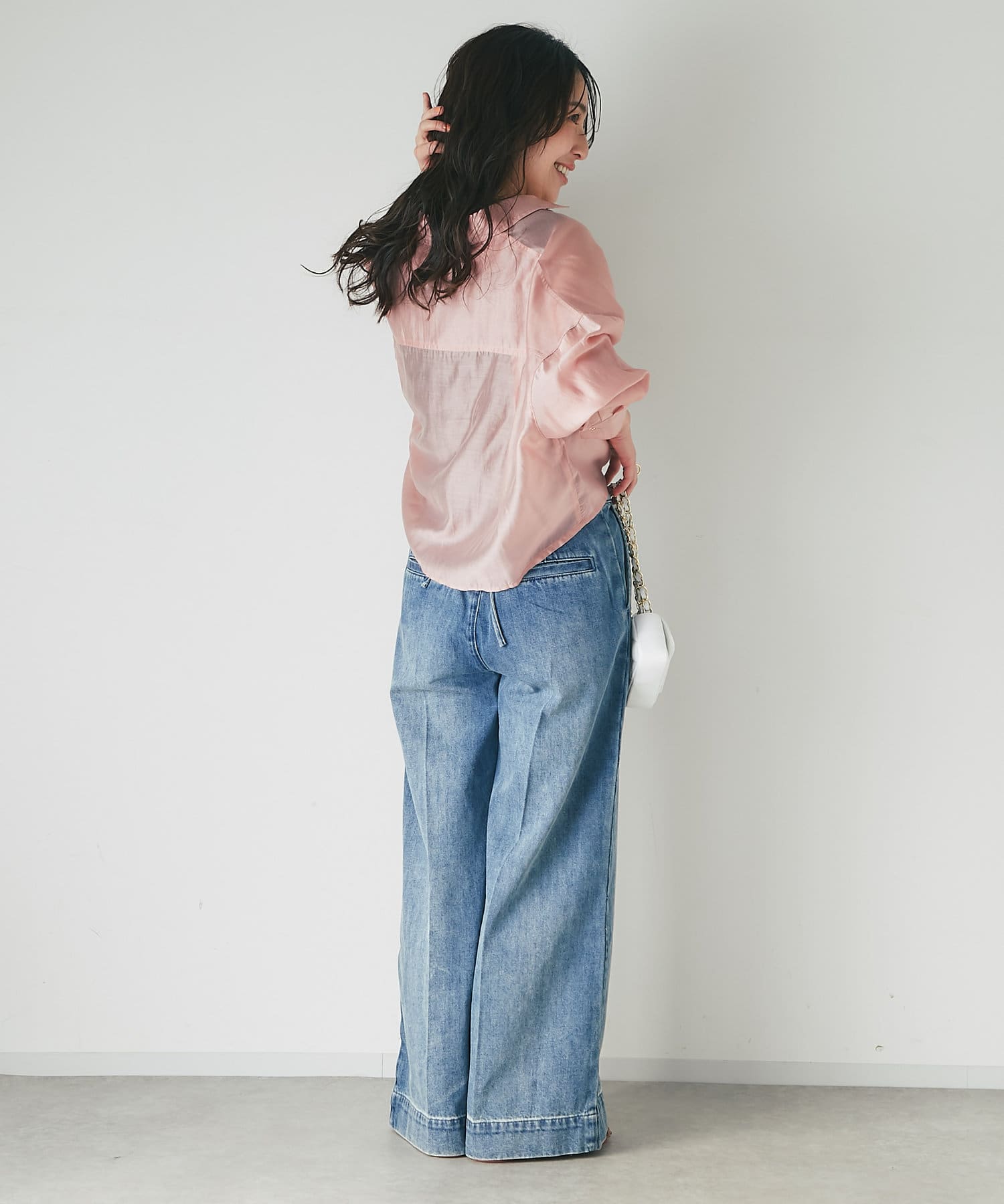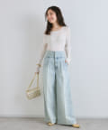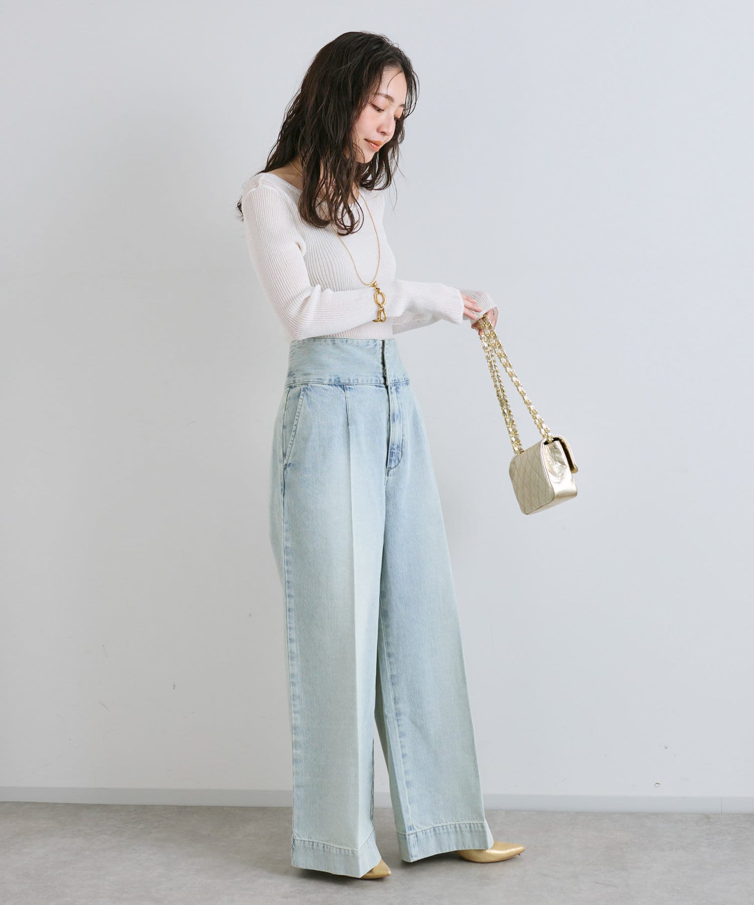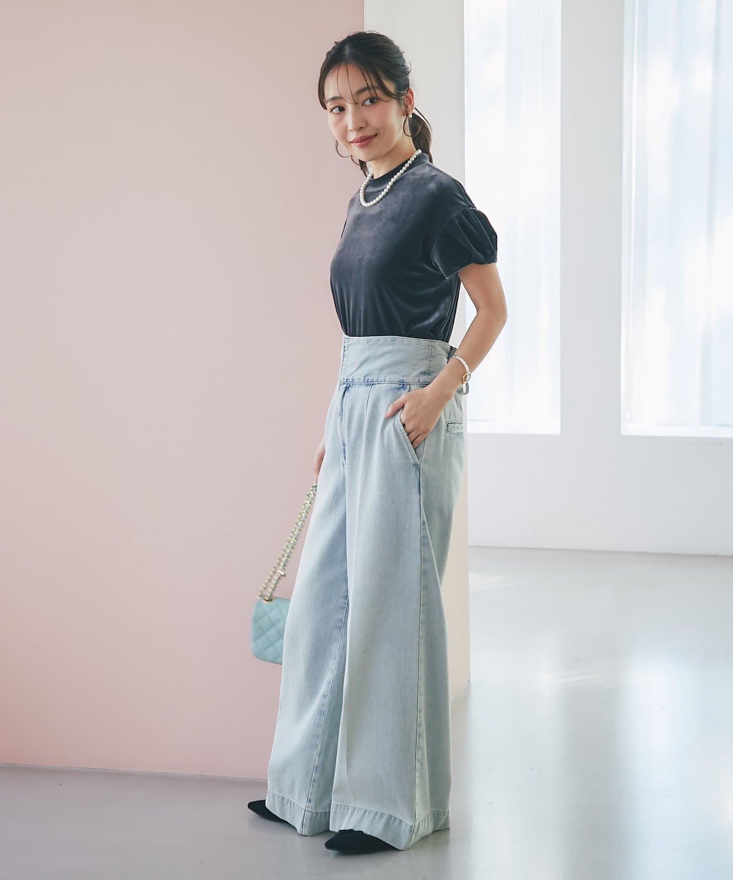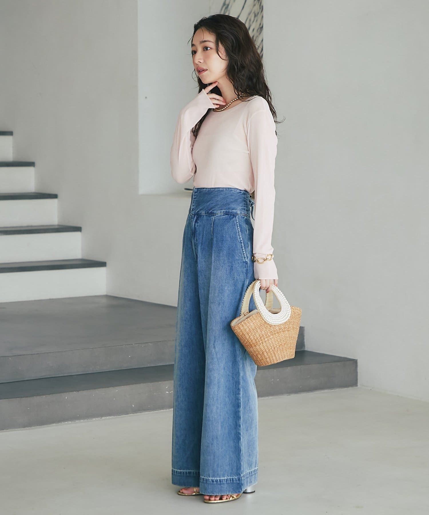 デニムながらもカジュアルすぎず、上品な着こなしが楽しめます。