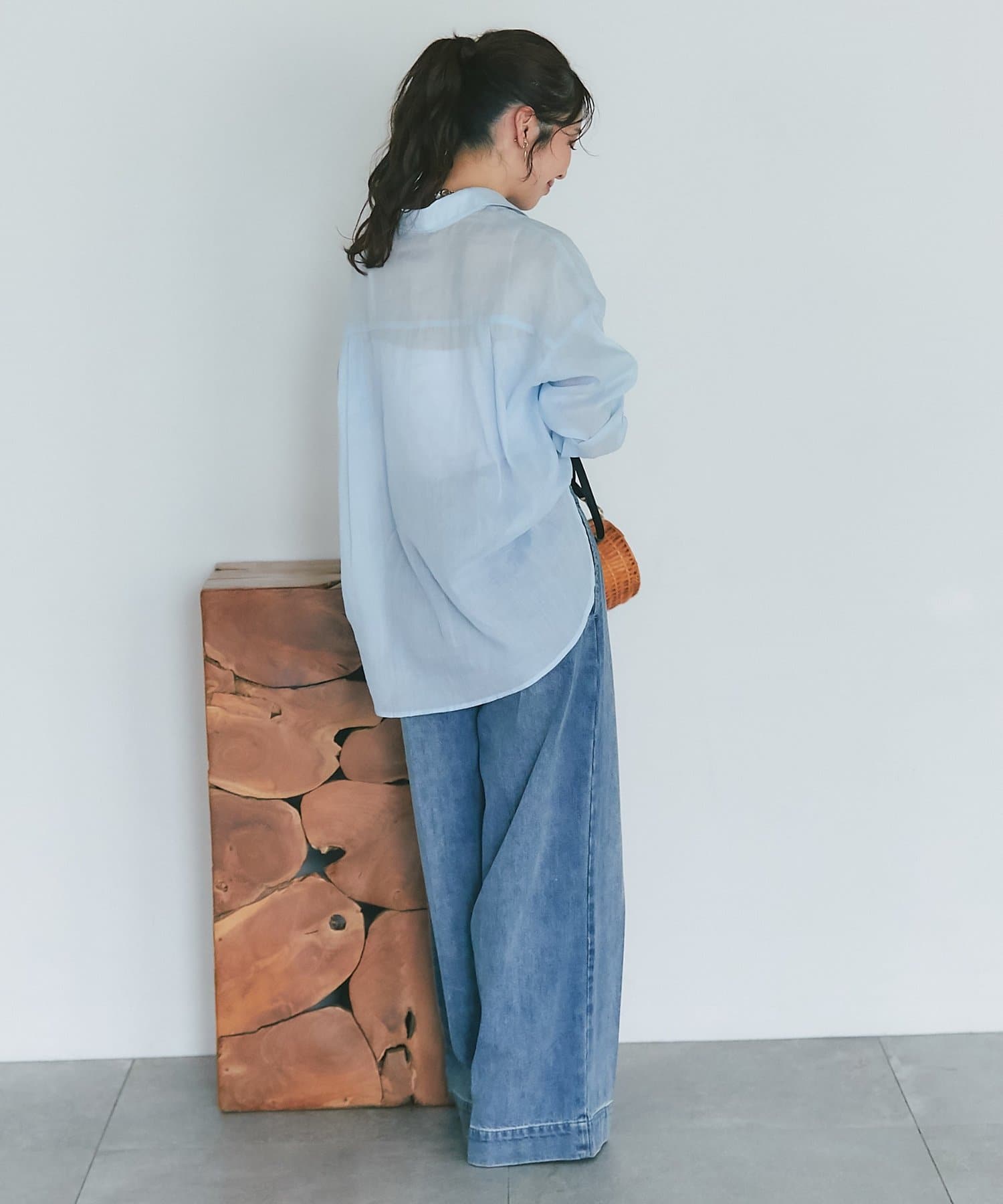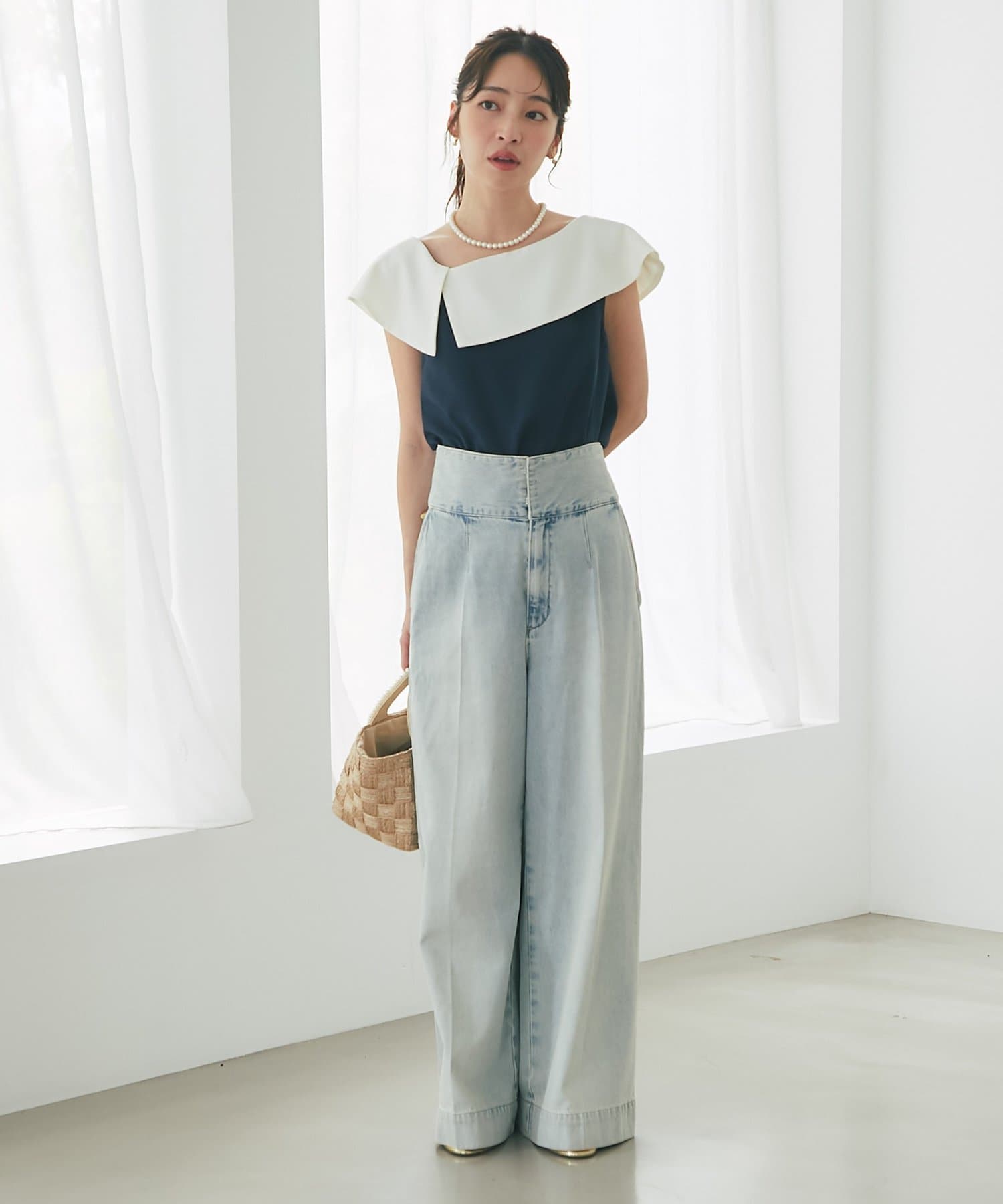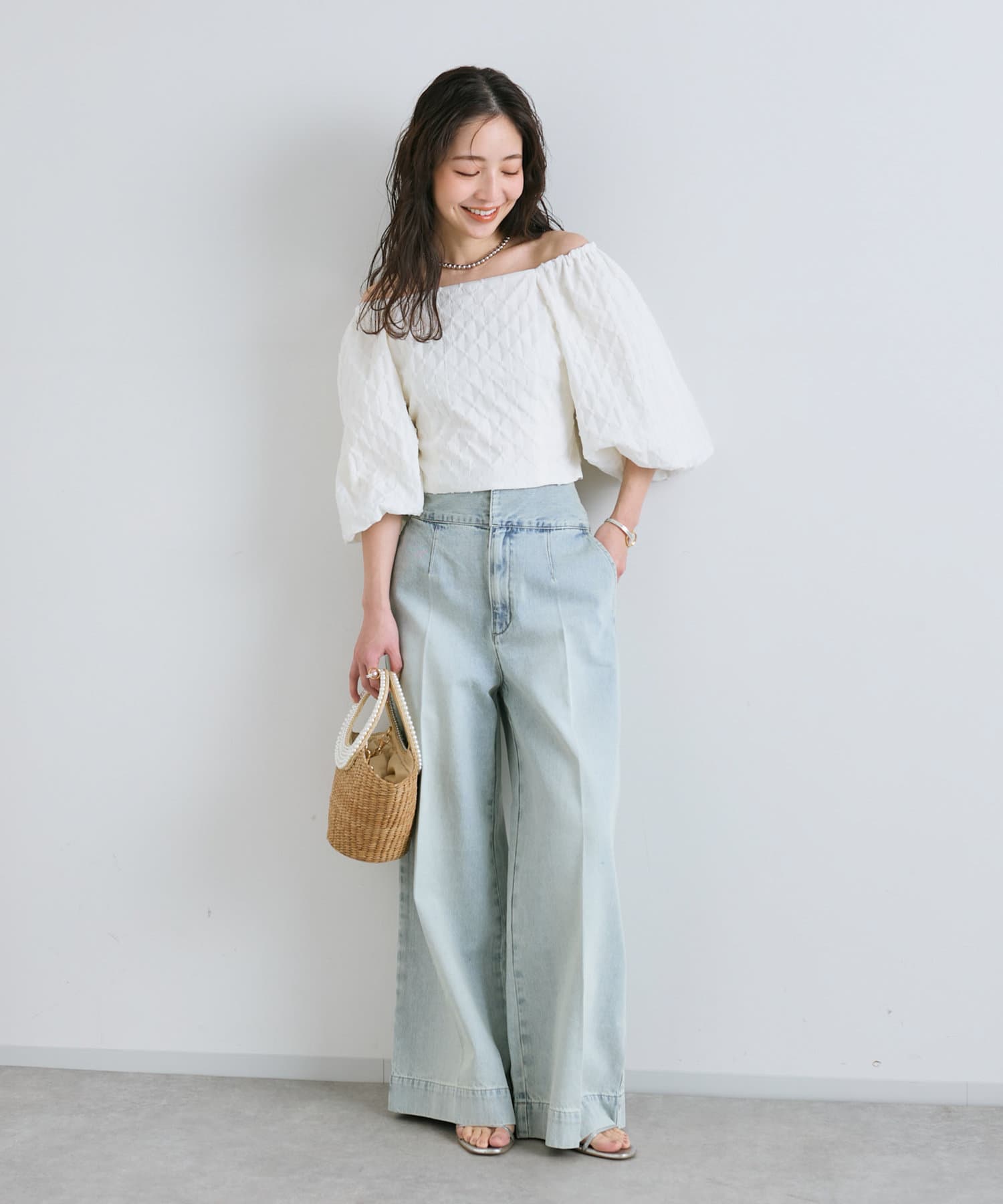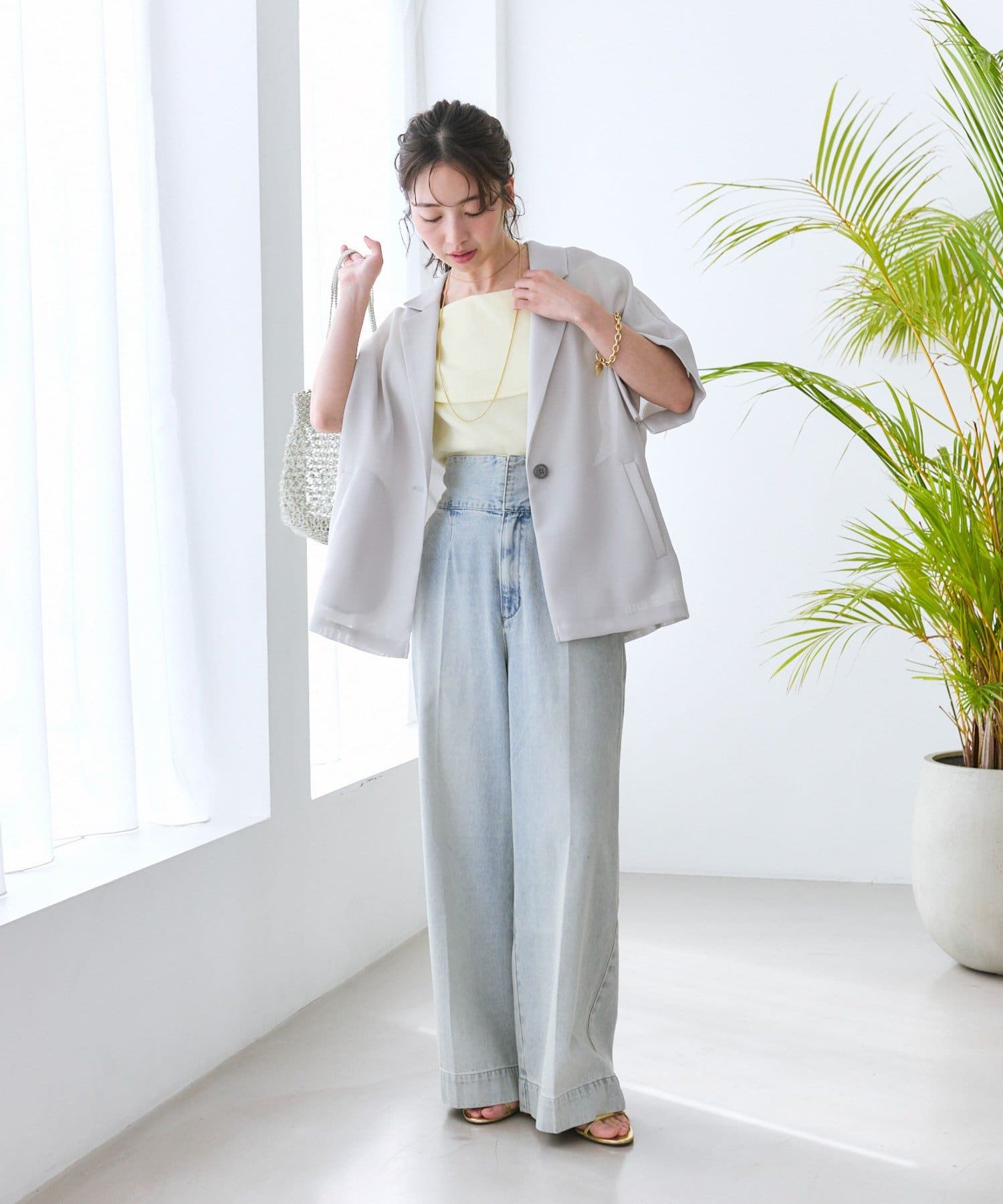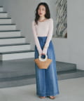 デニムながらもカジュアルすぎず、上品な着こなしが楽しめます。