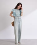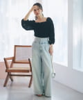ハイウエストと太めのベルトデザインが自然なスタイルアップ効果を演出。
