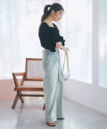甘めトップス合わせはもちろん、Tシャツと合わせてカジュアルにも楽しめます。