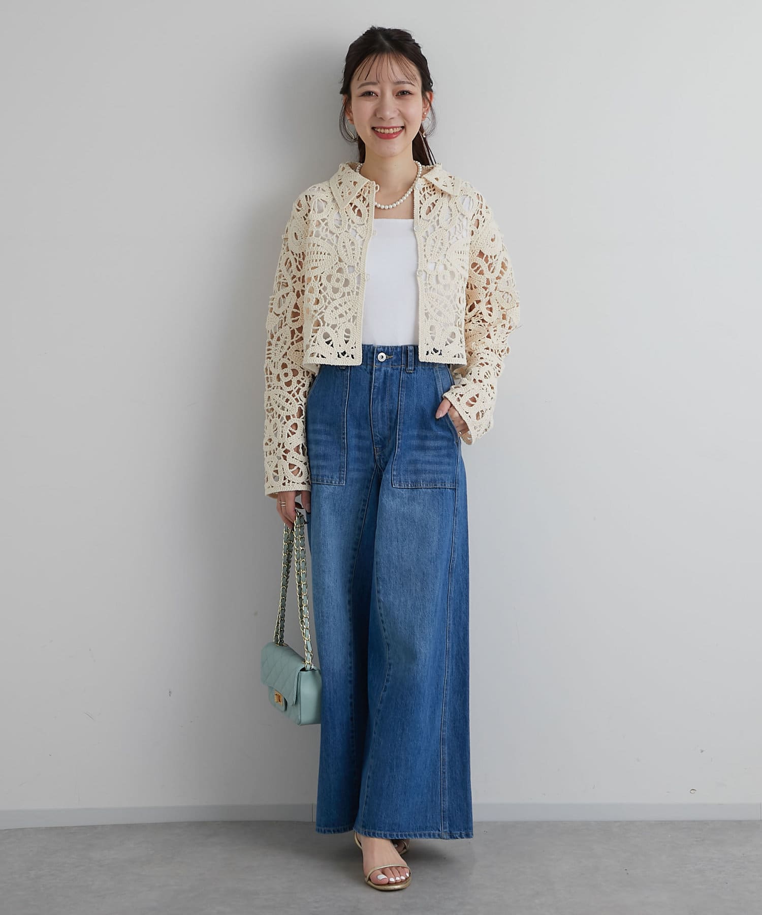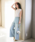 トレンド感のあるクロップド丈のトップスを合わせると旬なスタイリングになります。