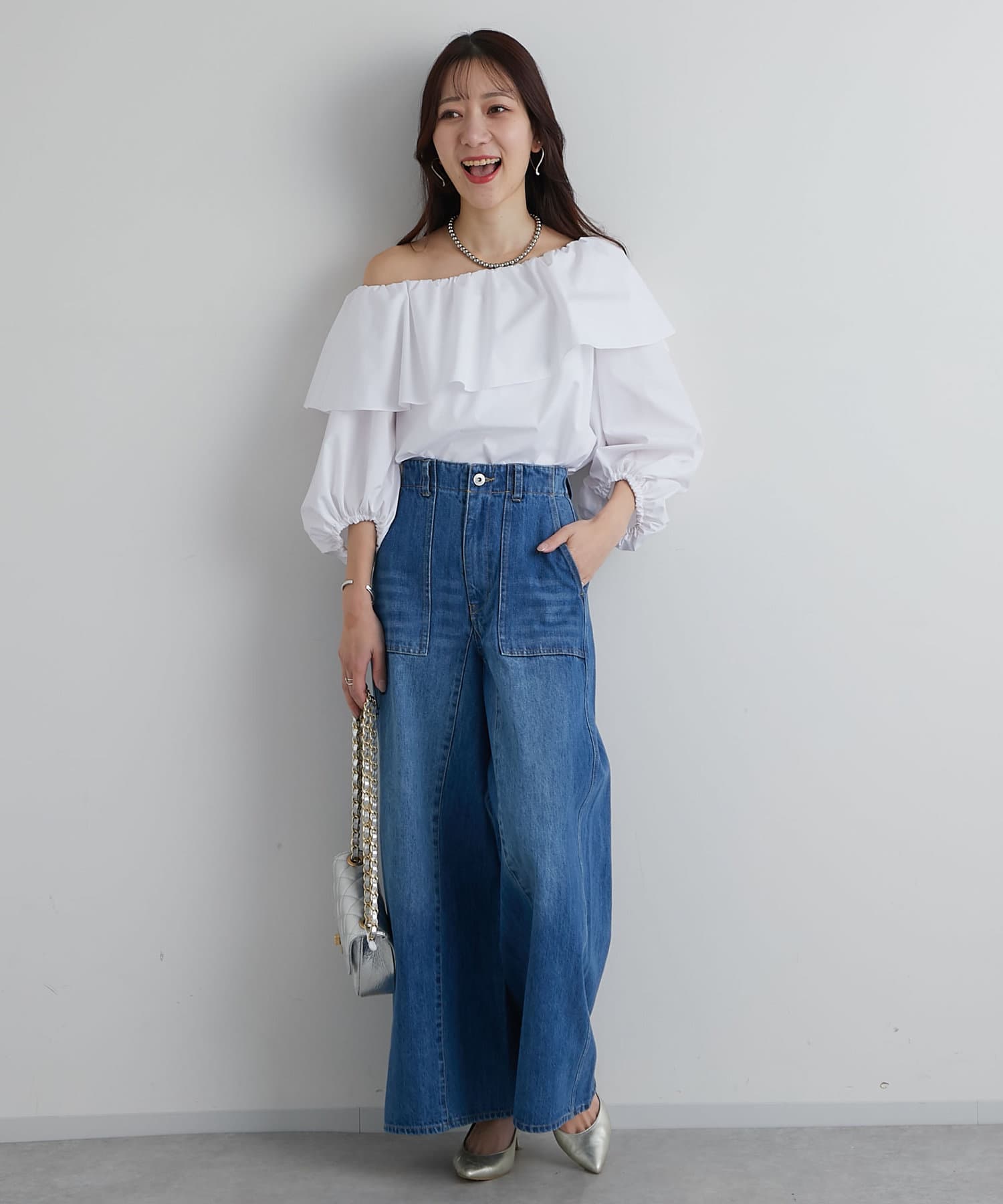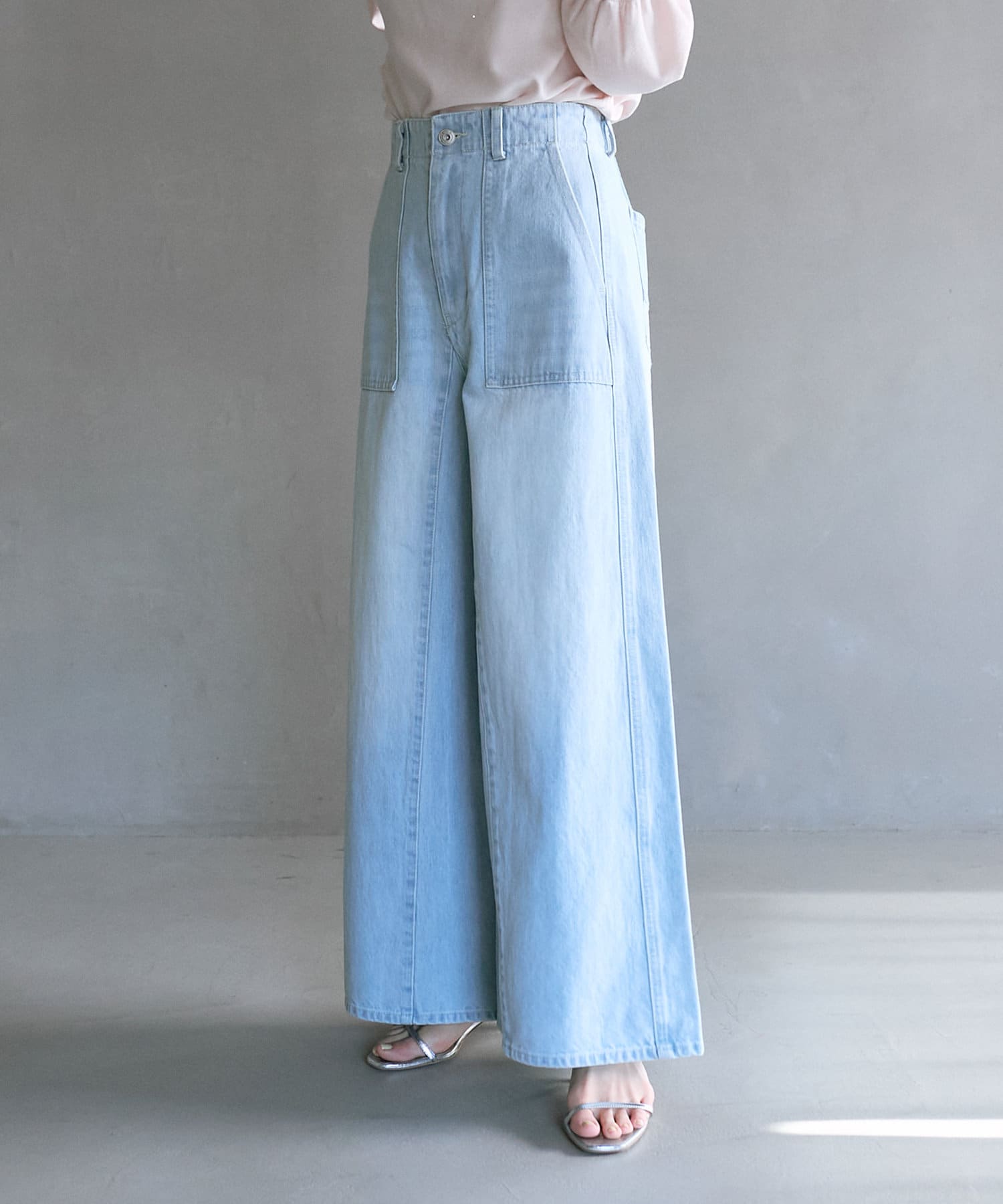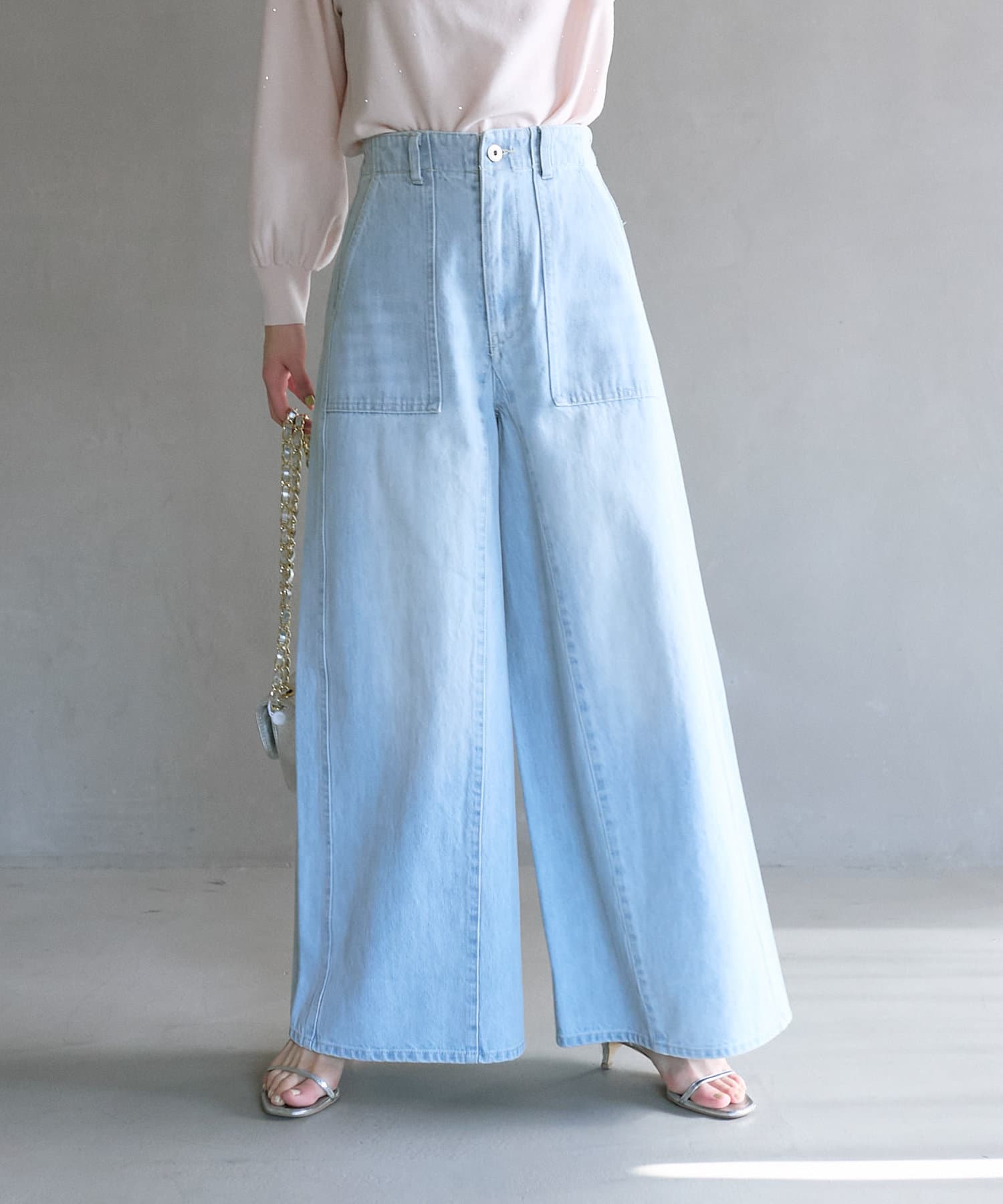裾に向かってワイドに広がるラインが印象的なバギーデニム