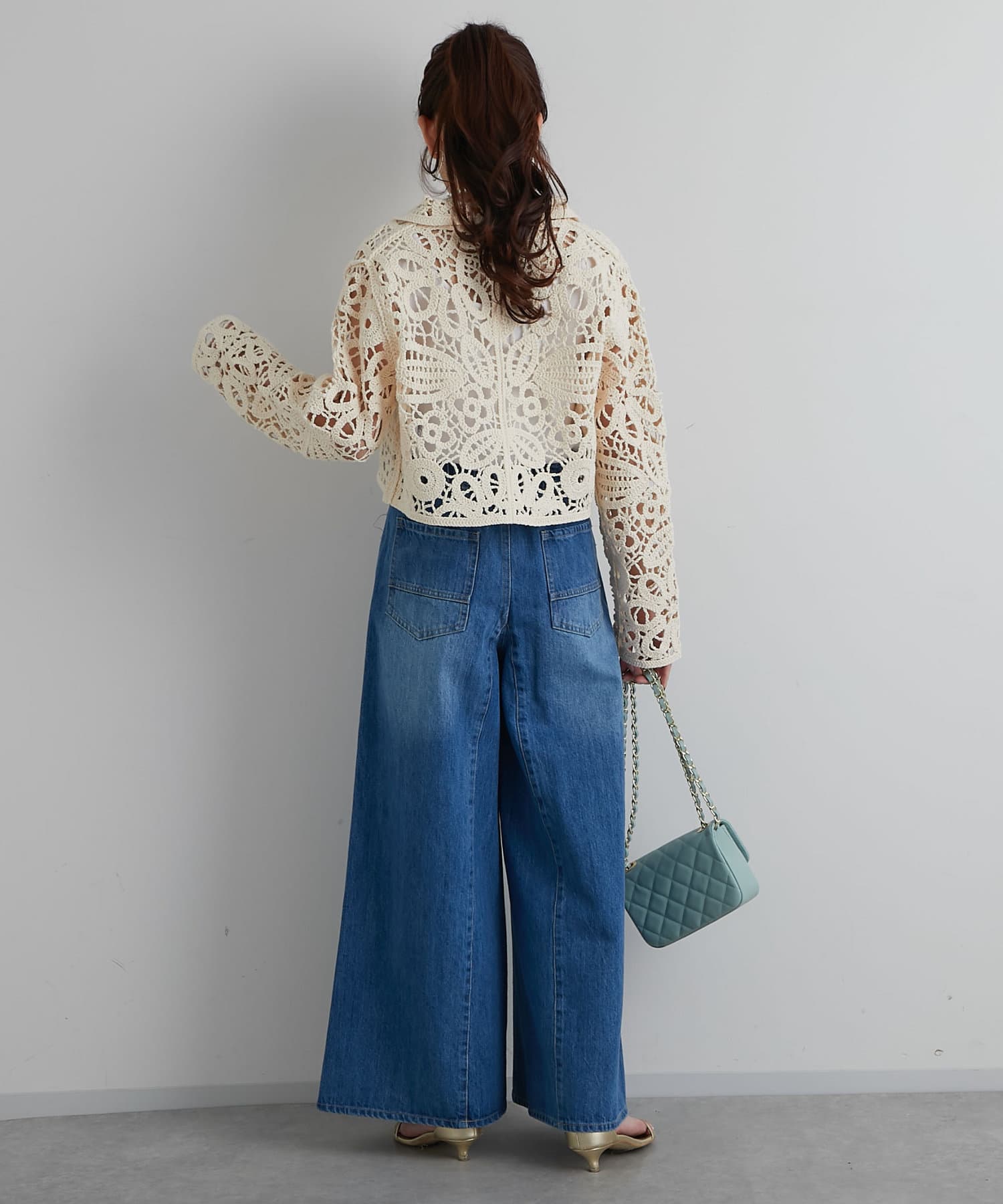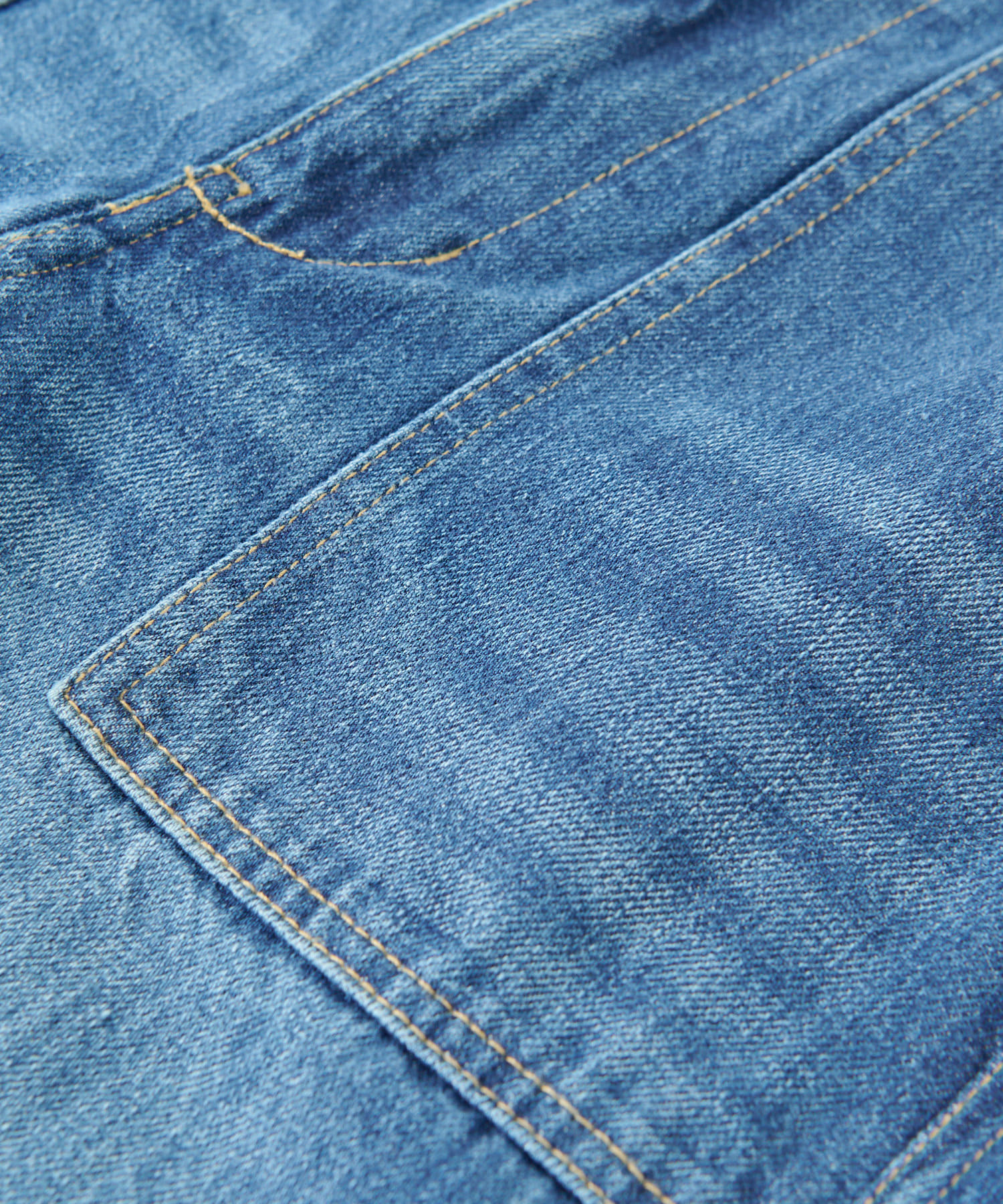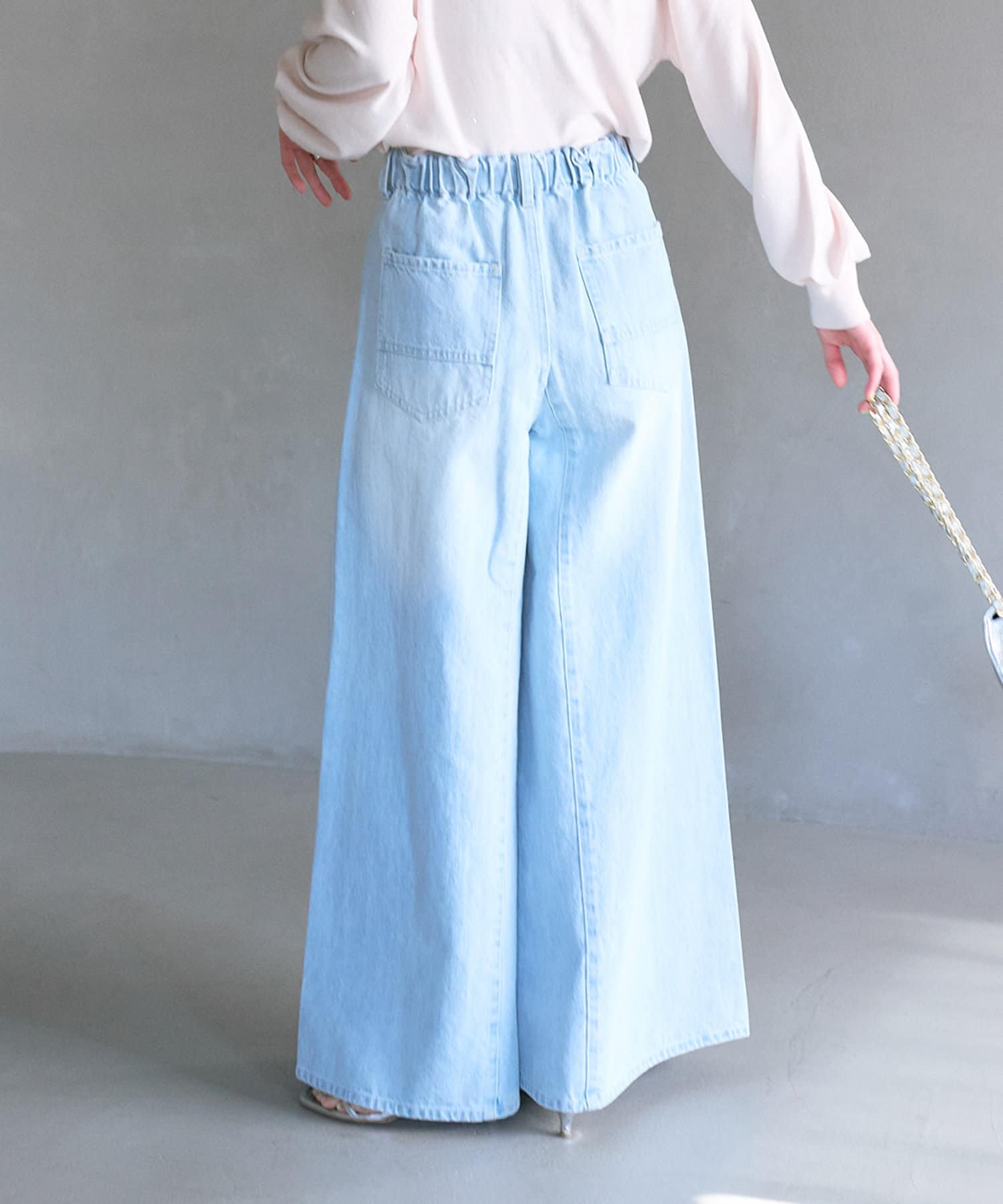 裾に向かってワイドに広がるラインが印象的なバギーデニム