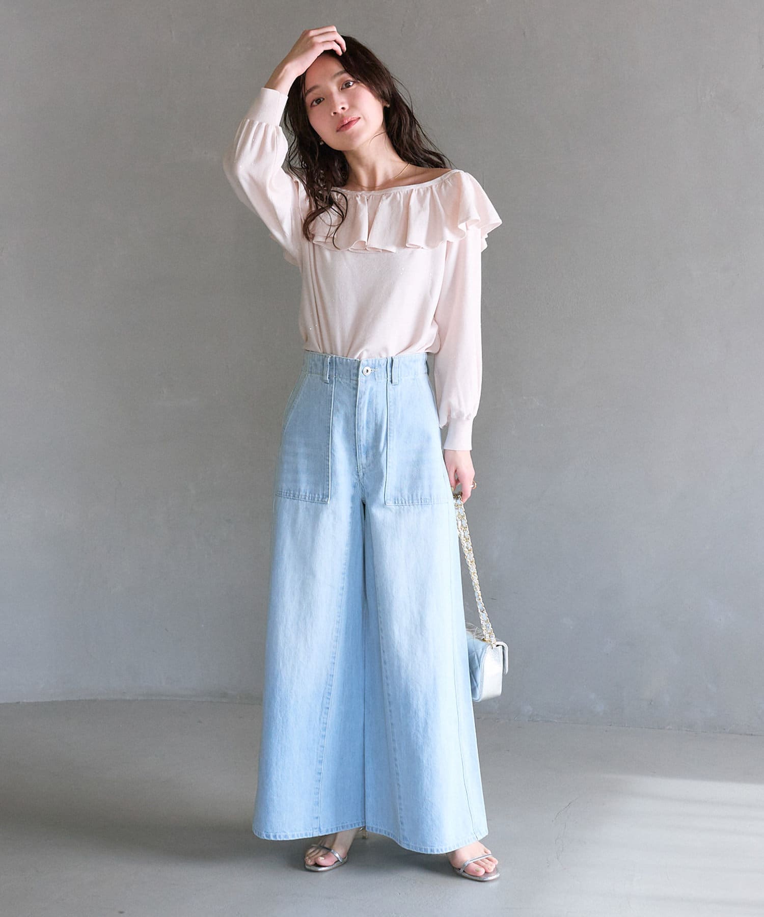 甘めトップス合わせはもちろん、Tシャツと合わせてカジュアルにも楽しめます。