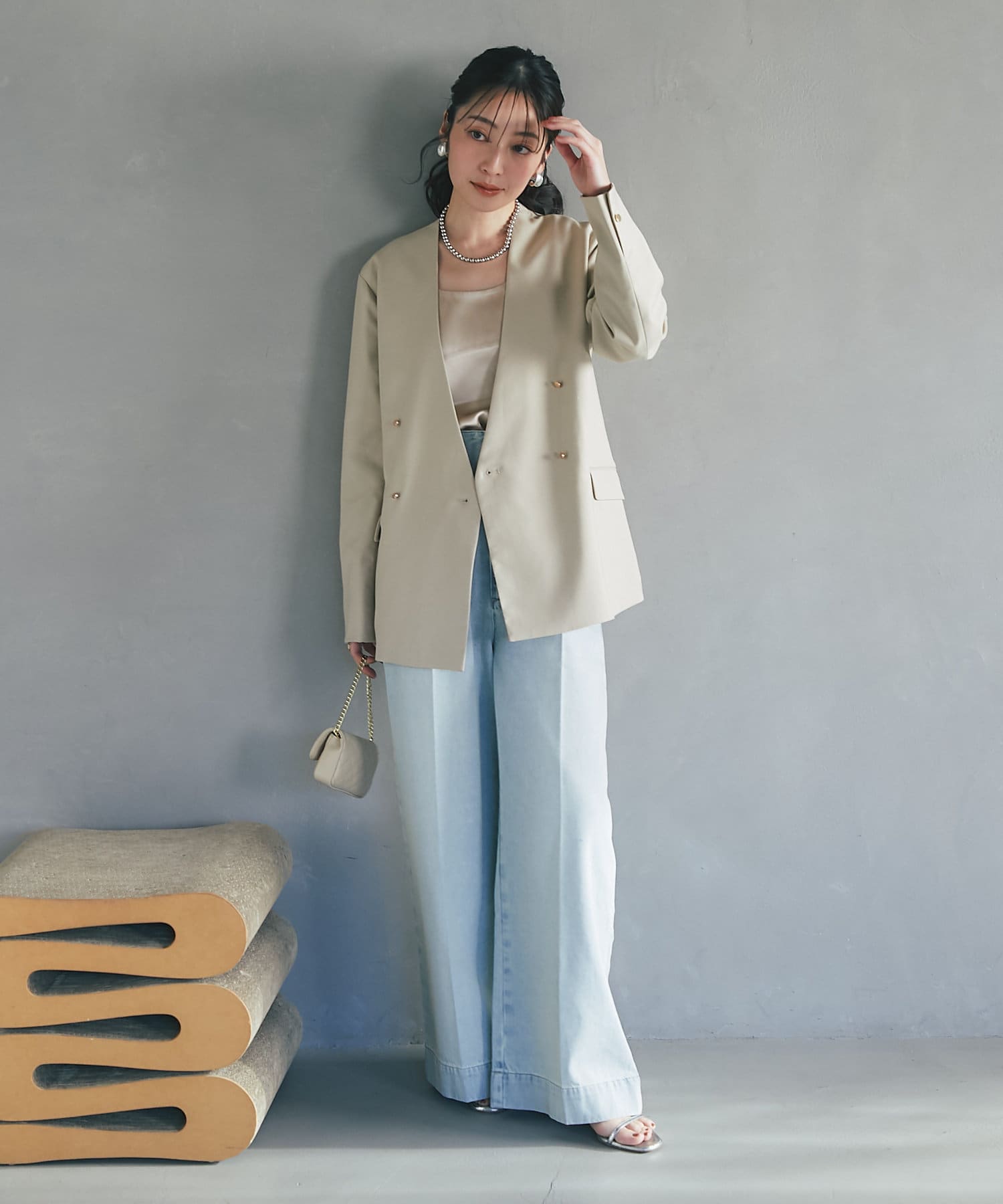 ・上品な光沢感がスタイリングを女性らしく仕上げてくれる