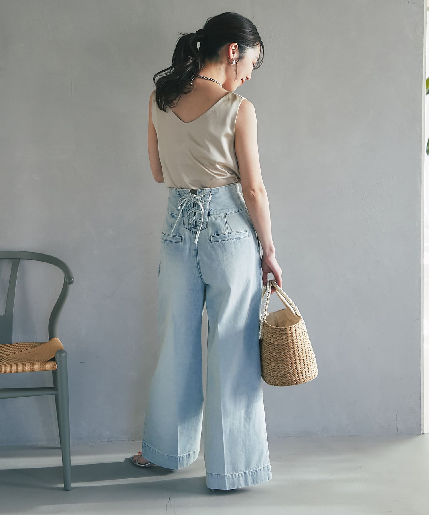 人気スタッフmiki監修のサテンタンクトップ。