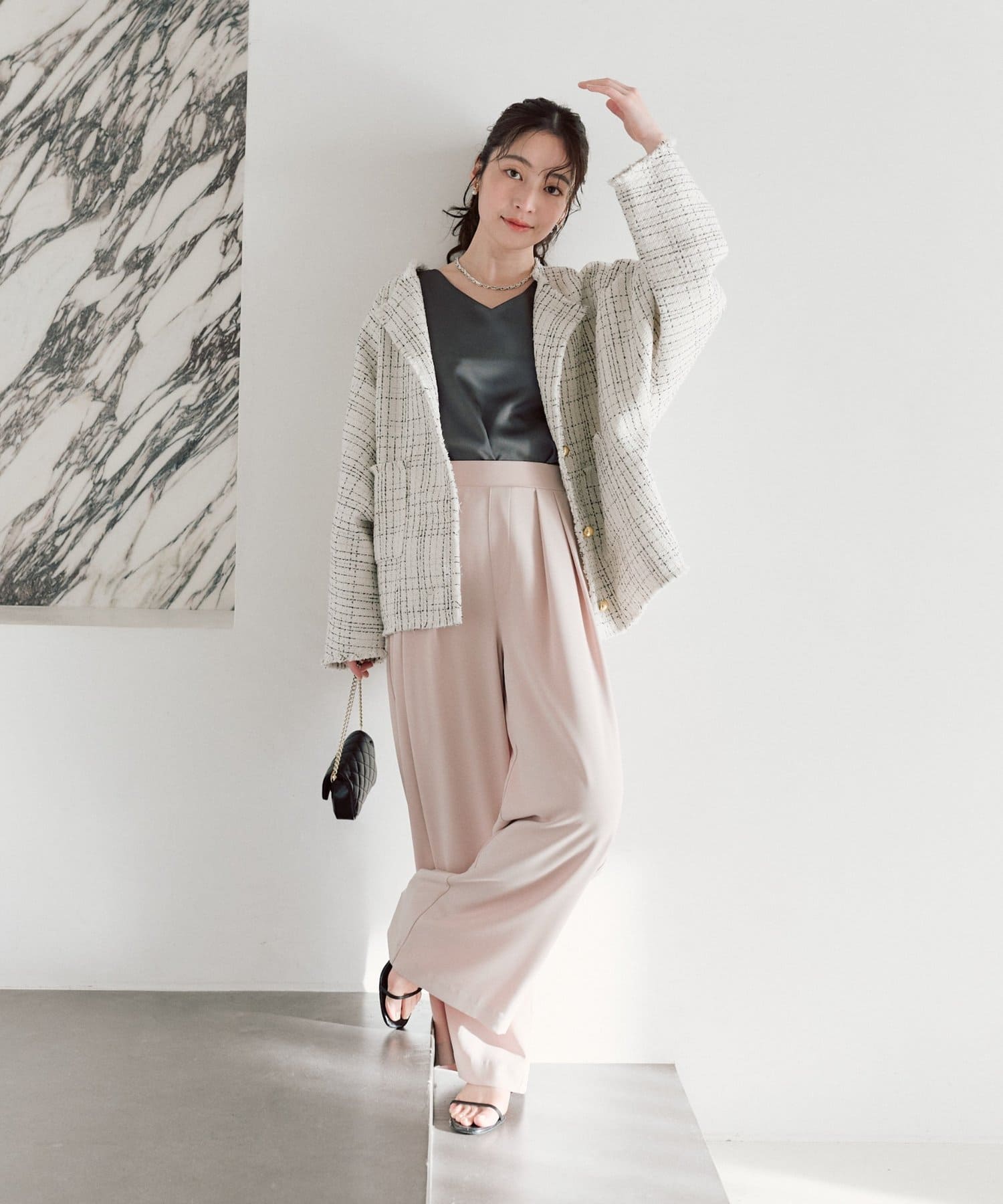 ・上品な光沢感がスタイリングを女性らしく仕上げてくれる